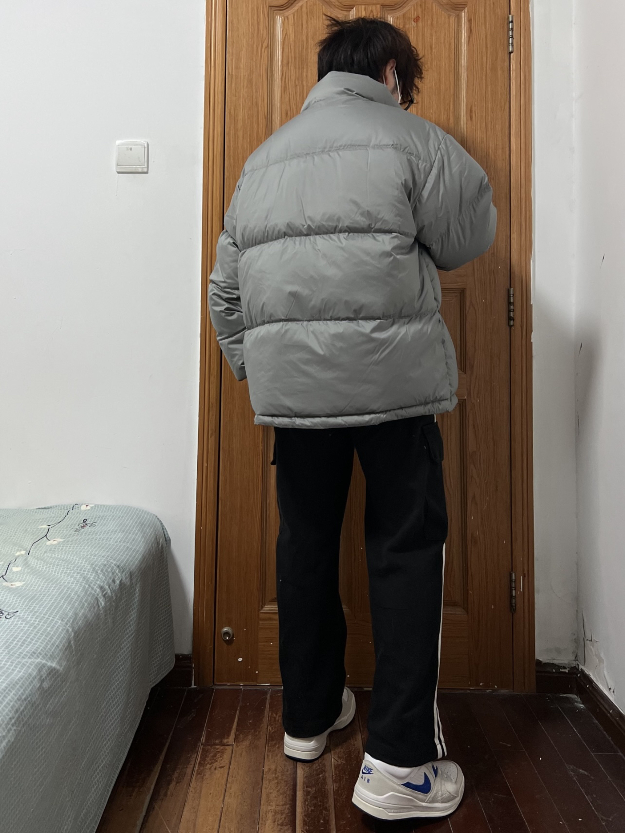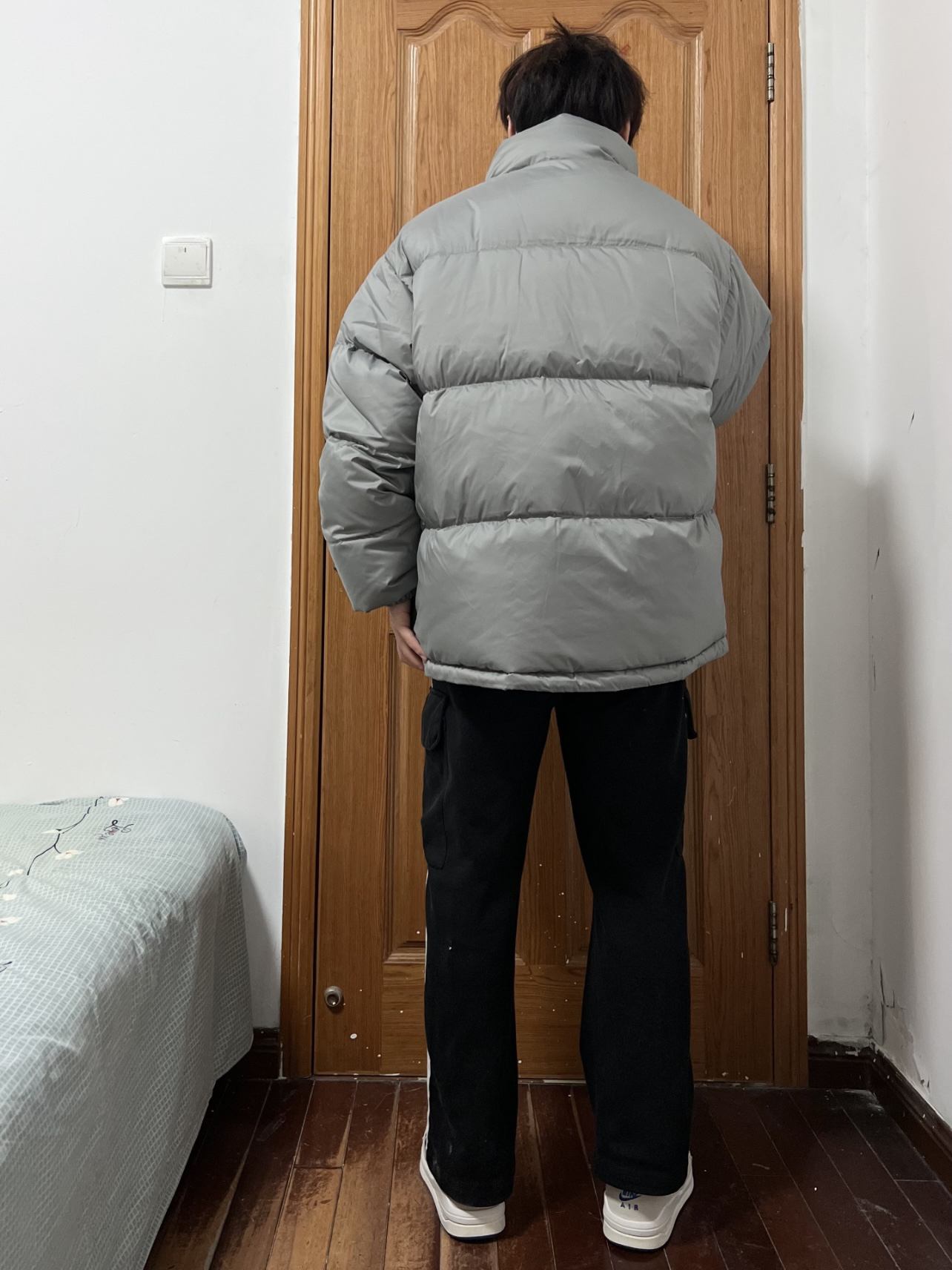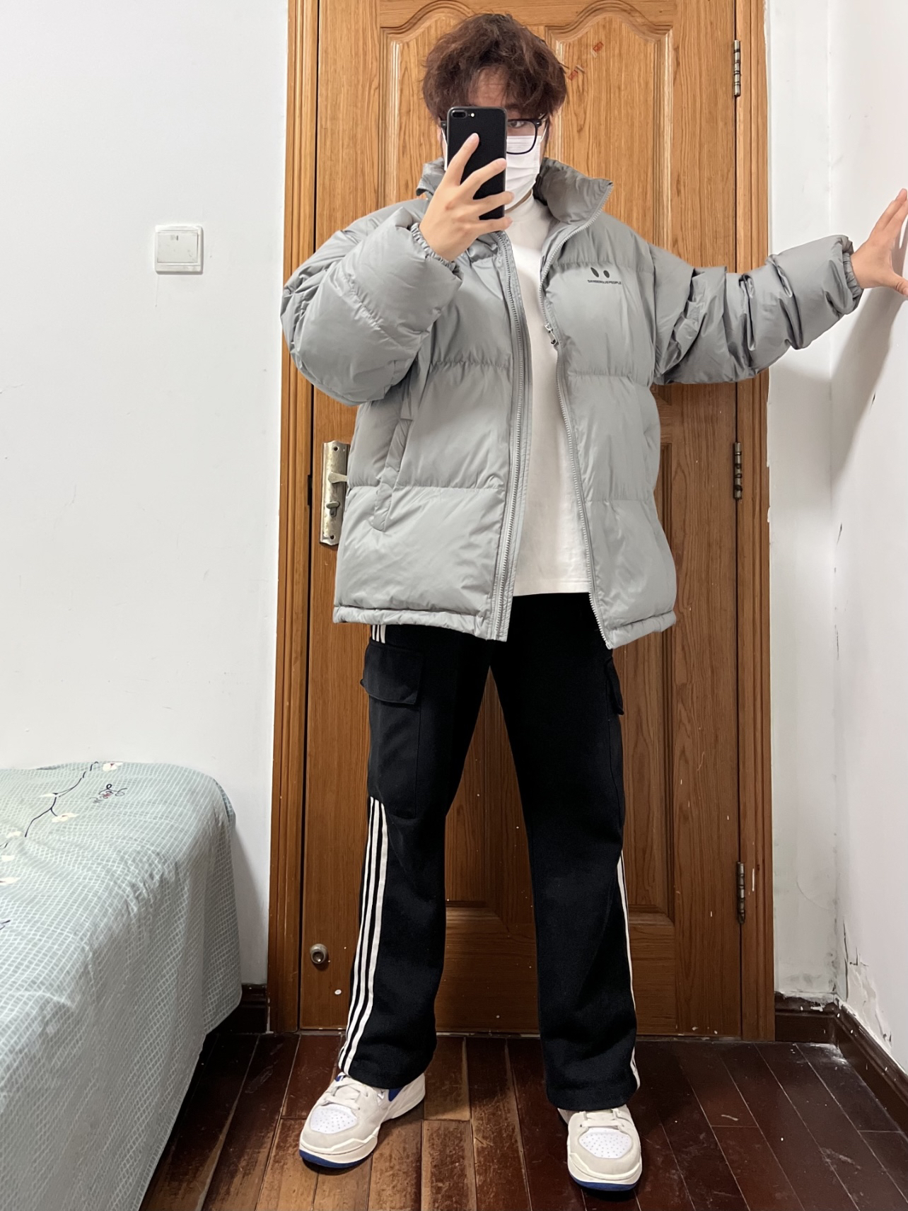今日份穿搭分享🎉 DANGEROUSPEOPLE立体胶印小眼睛羽绒服 灰色本身就自带高级感💯 超级适合男大穿着啦!少年感穿搭手到擒来 胸口小眼睛👀加logo印花画龙点睛❗️ 面包服的版型蓬松度保暖性都在线 以L码为例充绒205g 内搭我选择白色长袖T简单清爽✌️ 裤子就是黑色长裤搭配小白鞋 👔 DANGEROUSPEOPLE 👖 黑色长裤 👟 Nike 🙋♂️ 170/120斤 L 持...