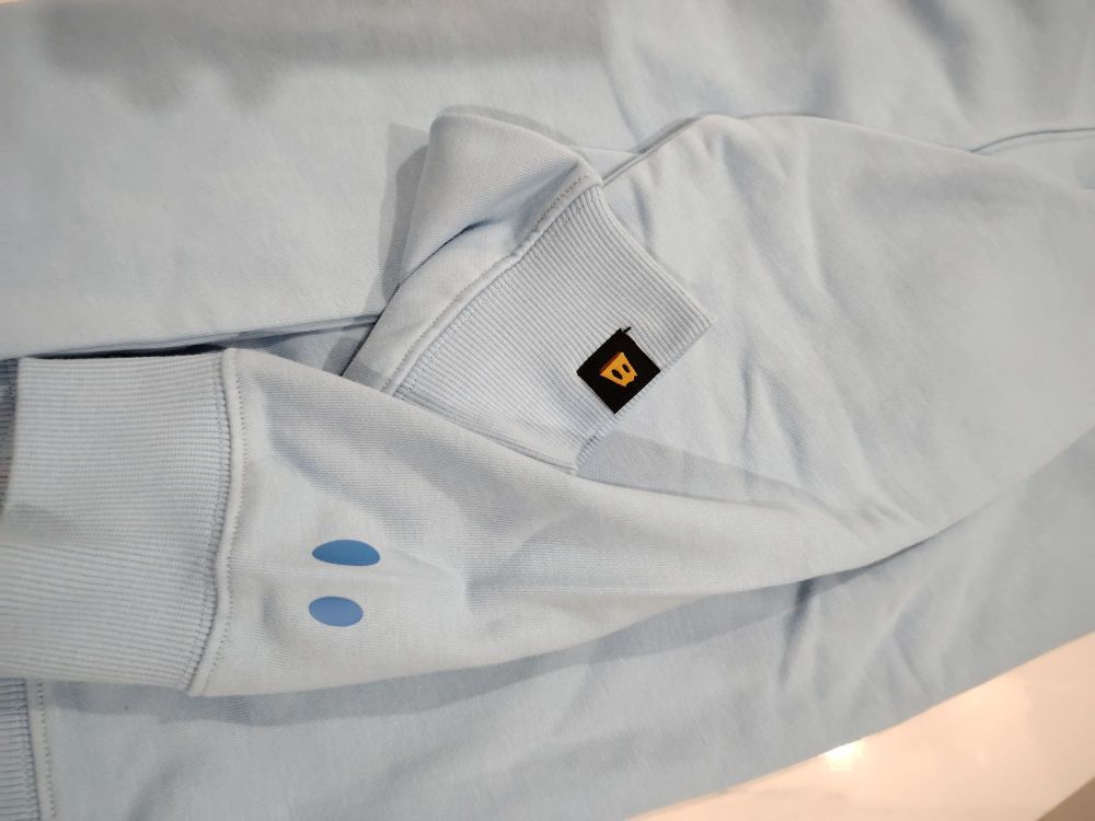 蓝色真的是个治愈的颜色,可爱的小d,袖口上设计了小d的眼睛点缀,还有不变的袖口logo