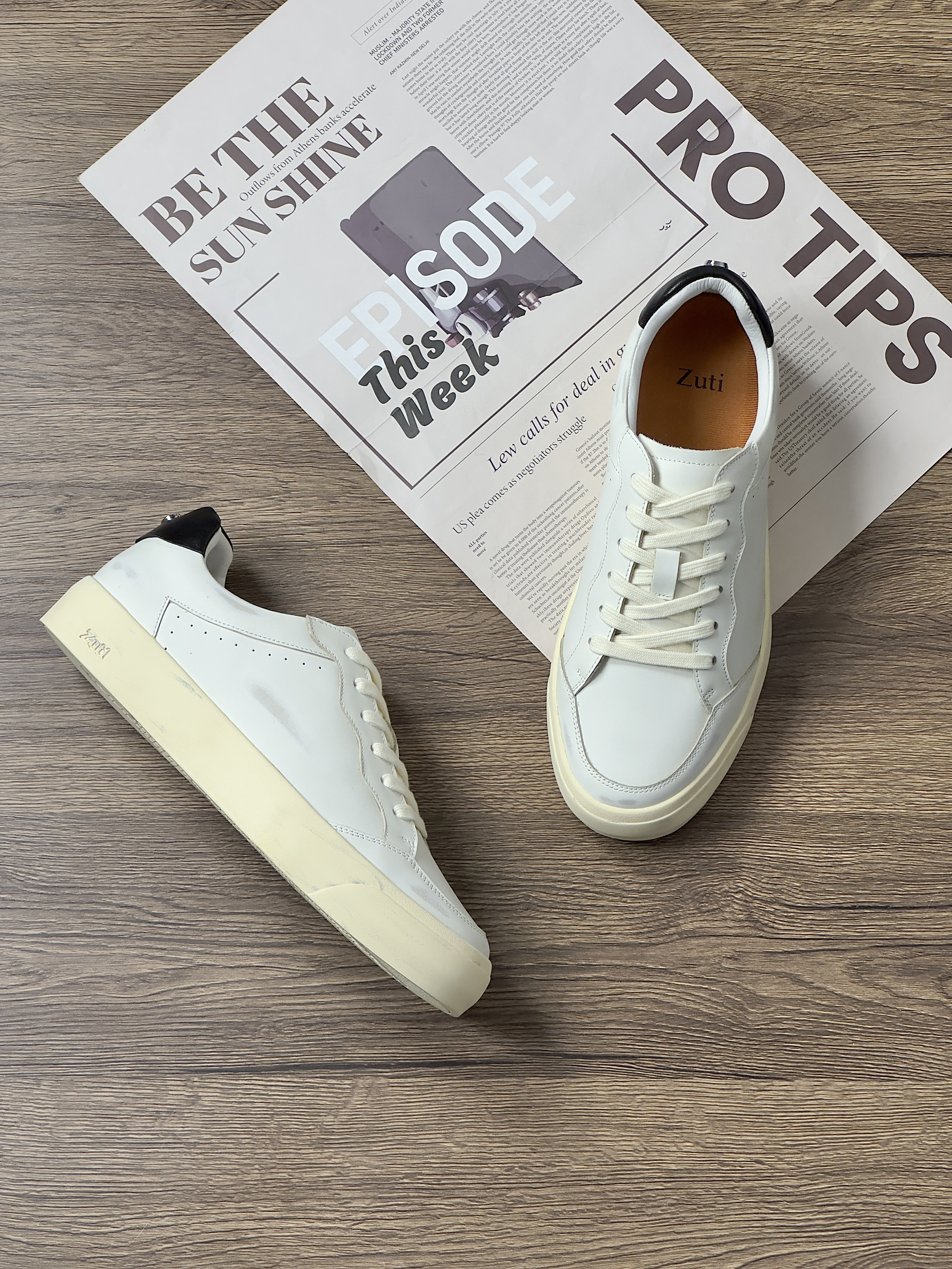 👟:zuti 潮流做旧脏脏小白鞋 经典黑尾休闲低帮板鞋 男款 米白色 hello,这里是陈白羊🐑!今天给大家分享一款zuti的休闲板鞋 TA的鞋面整体由头层牛皮材质打造,触感柔软细腻,并在鞋身多处辅以不规则的磨损做旧处理,可谓是极具特色✨。再搭配上自带氧化效果的做旧中底,以及黑尾和银制品牌徽标等细节,呈现出即复古又很轻奢的感觉。 其次,水染牛皮内里结合轻量化的橡胶发泡材质大底,上脚体验舒适度...