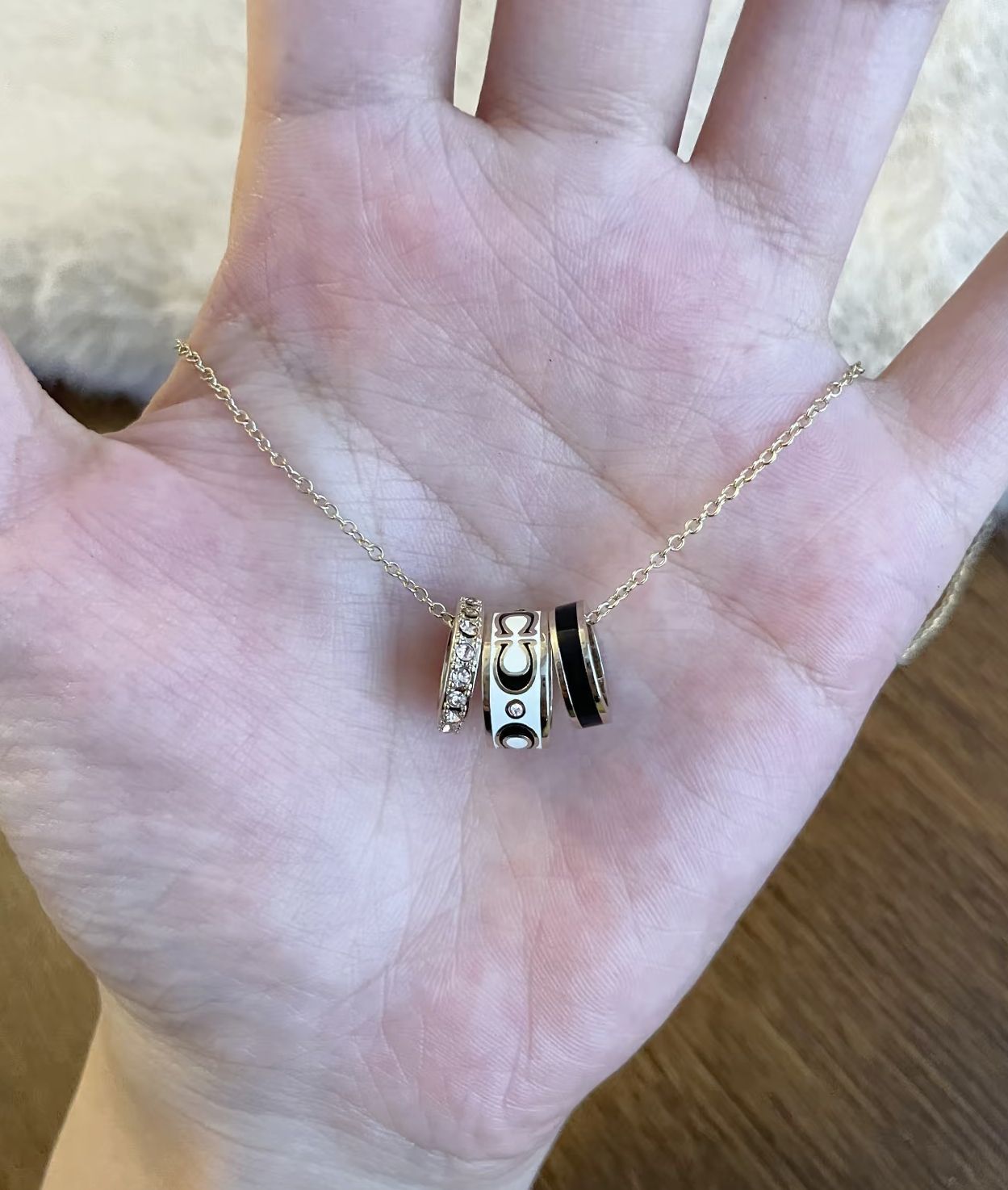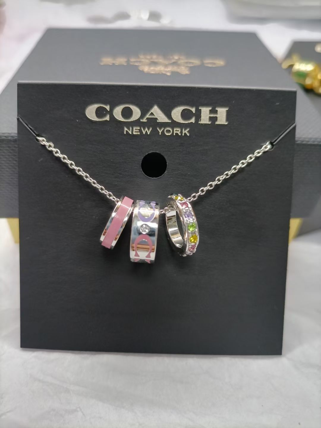 本篇笔记关联了COACH蔻驰 原创设计极简风气质三环镶嵌标志字母图案仿水晶珐琅黄铜项链 CI905 金色等商品,为用户提供真实的使用体验和购买参考。