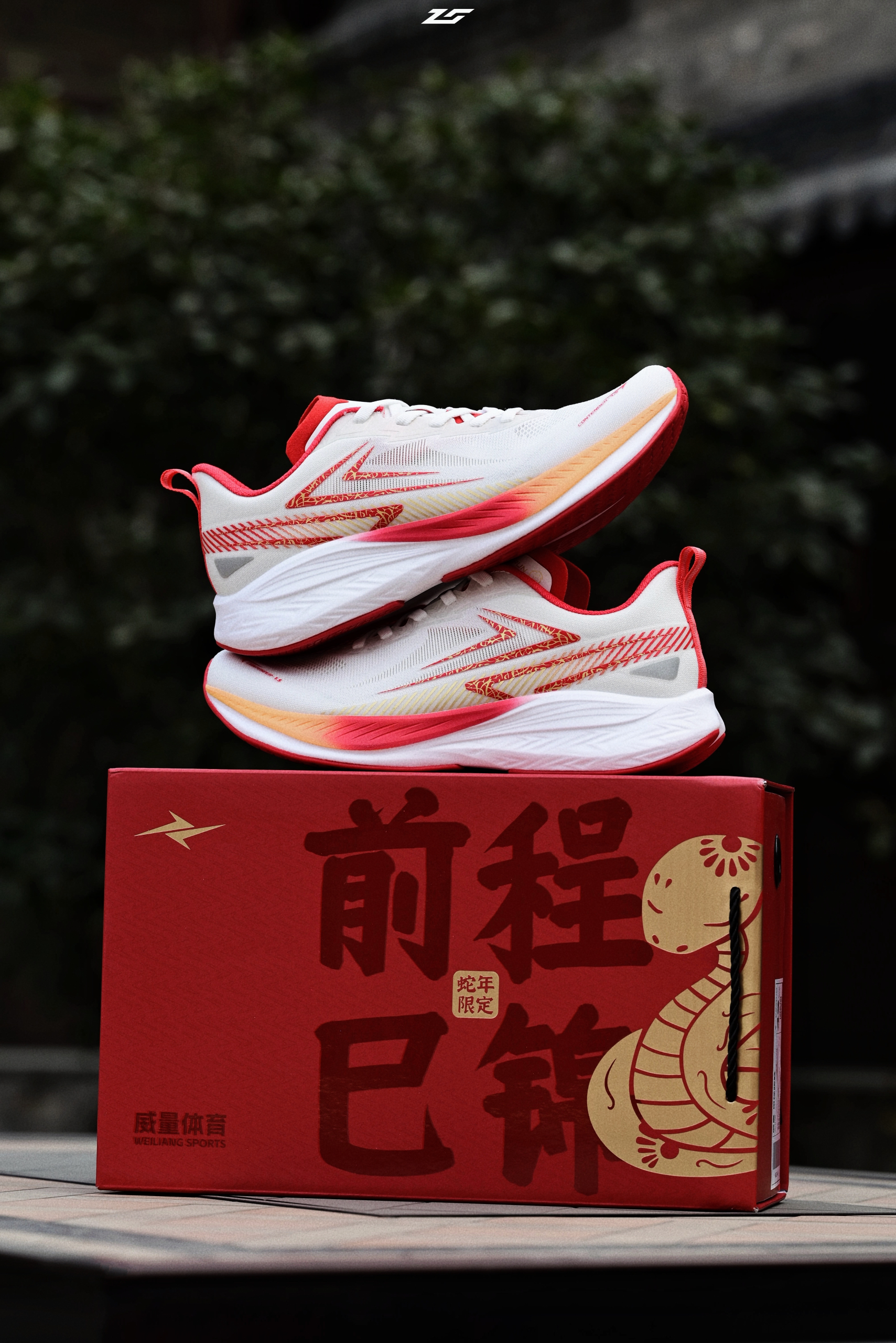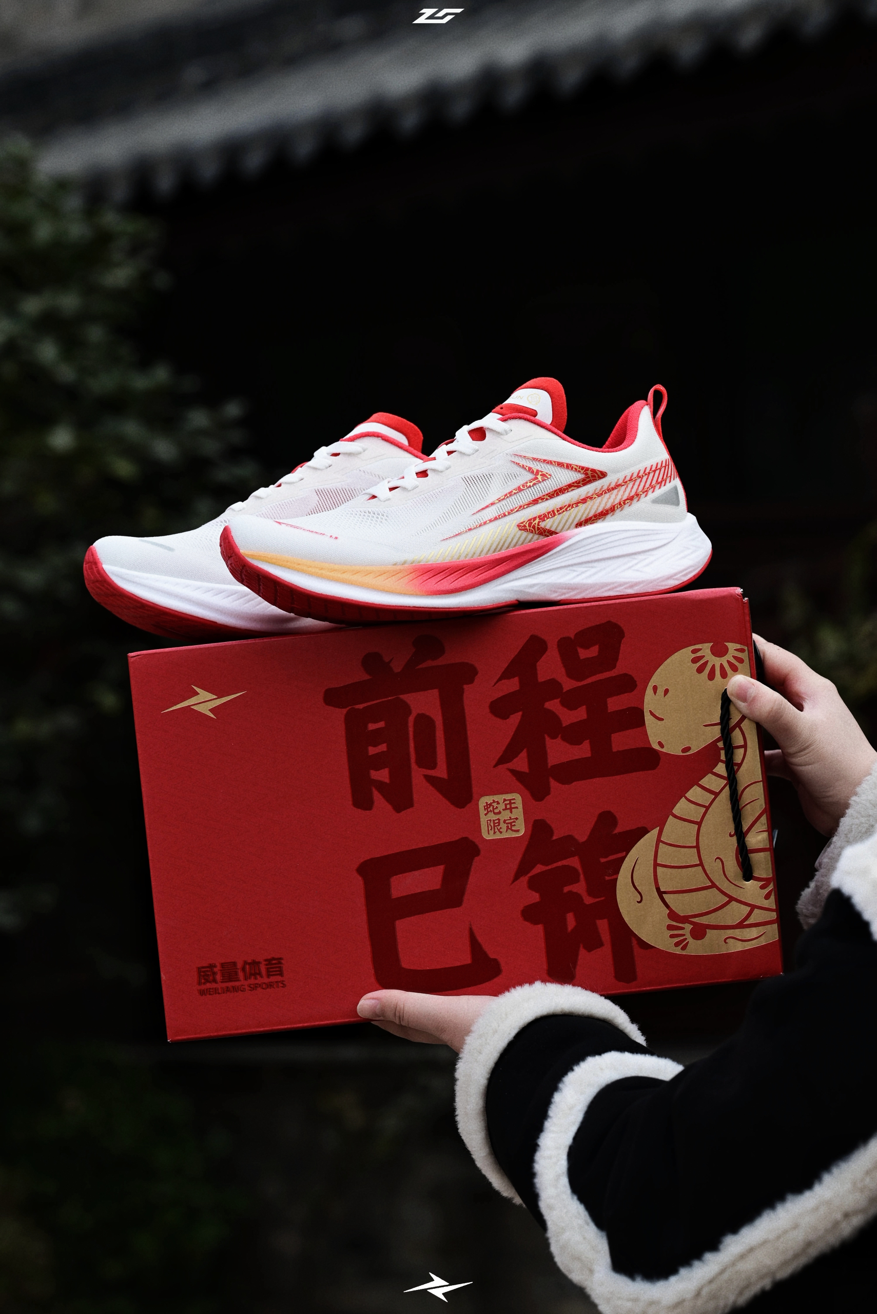 收到了一双很应景的训练鞋,来自威量蛇年限定的闪耀1.5。 特殊鞋盒好评,很有让人一起拍的欲望,鞋子本体也有蛇年细节的加持,鞋垫上特别设计的蛇身缠绕的威量LOGO,还有侧面的祥云暗纹,都非常贴切蛇年&新年的主题。 本身也是用的大红色,挺喜庆的,鞋身白色的面积挺多,显干净,平时穿也没什么违和感。 二开的价位给到的是超临界中底+eva鞋垫,以及一块pebax的混合推进板,算是足够足量,上脚舒适性不错,可...