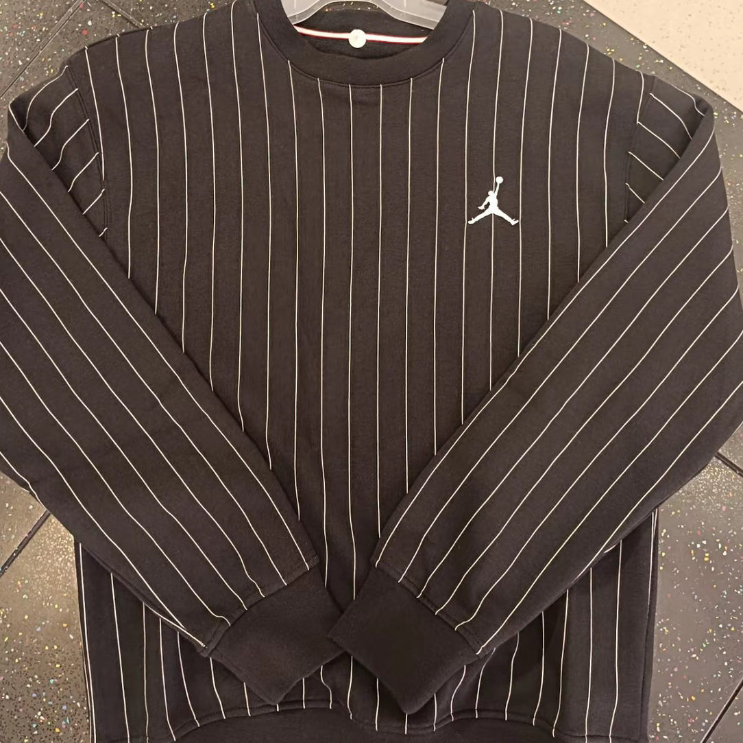 Jordan的男子圆领卫衣,面料厚实质感很好,内加薄绒保暖性不错,竖纹卫衣很好看,黑白配色简约百搭,版型很喜欢,上身有型的~175/65穿L码合身,男女均可驾驭,通勤百搭款式。 图片来源于@songyming