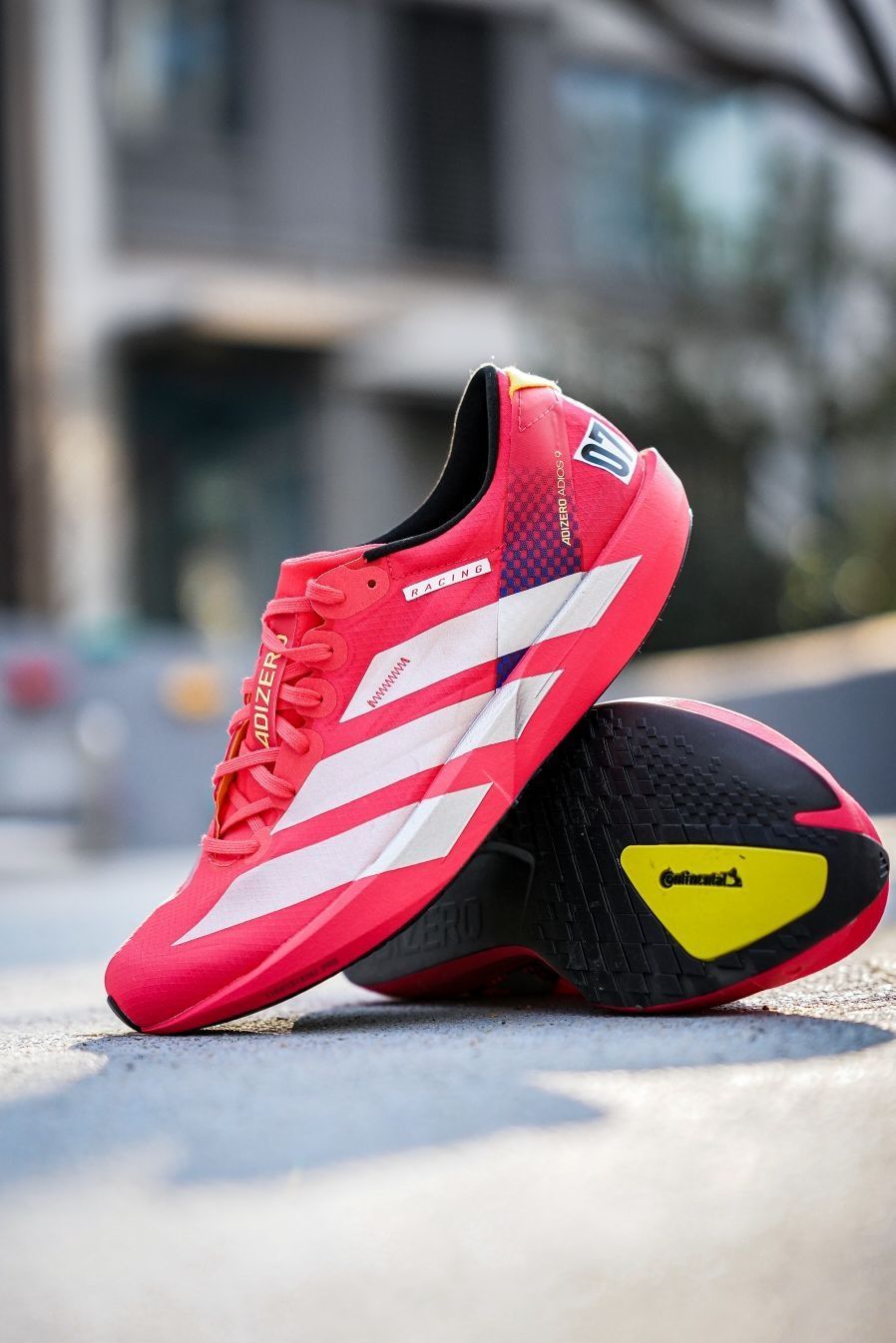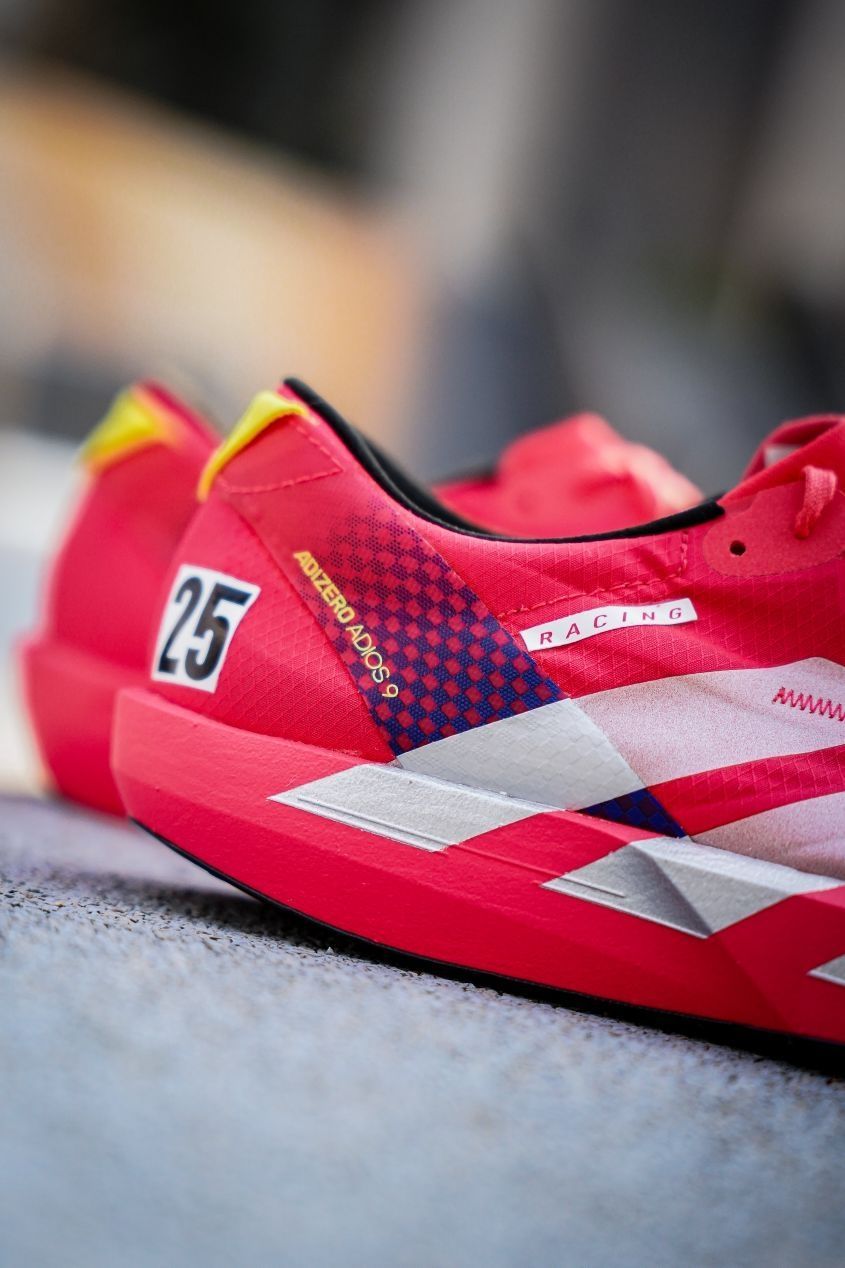 怎么阿迪开始重新玩回限量了吗 买完这双发现怎么又溢价了 东京马拉松限定的Adios9 颜值兄弟们觉得怎么样呢 整体大红色为主搭配银色三道杠 后跟的07代表第一届举办的时间 这代和8的区别很大 更加薄底更加软弹~