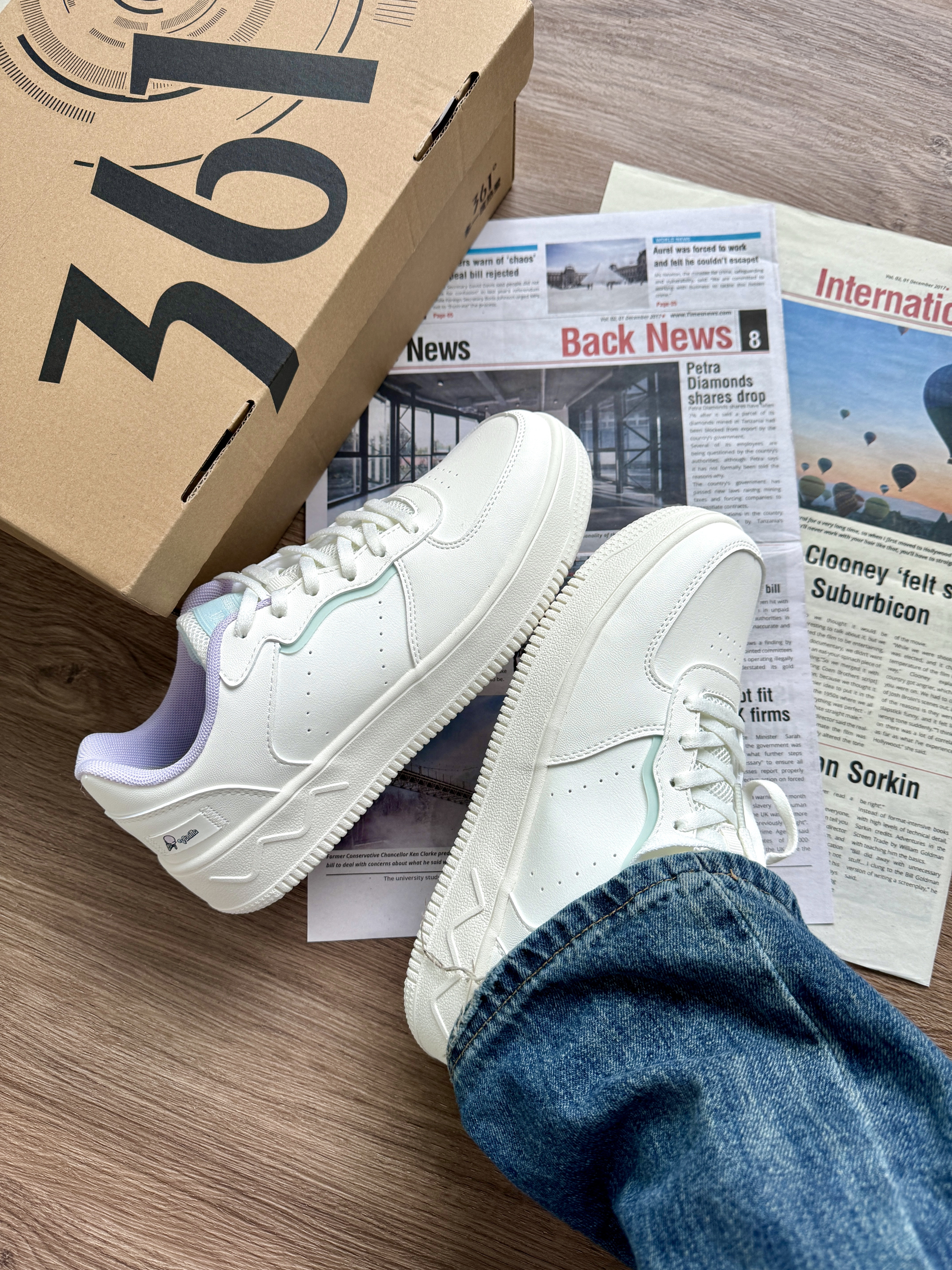 女款 低帮 休闲板鞋 介双国潮361板鞋设计空军厚底板鞋泰可爱了 可甜可酷 厚底款式上脚好显腿长哦~踩起来软软的 鞋鞋是圆头的设计 不会显脚大哦 鞋面采用织物 鞋子软软的轻轻的 日常搭配牛仔裤或者小裙子搭配这种小板鞋空军都不会错哦~