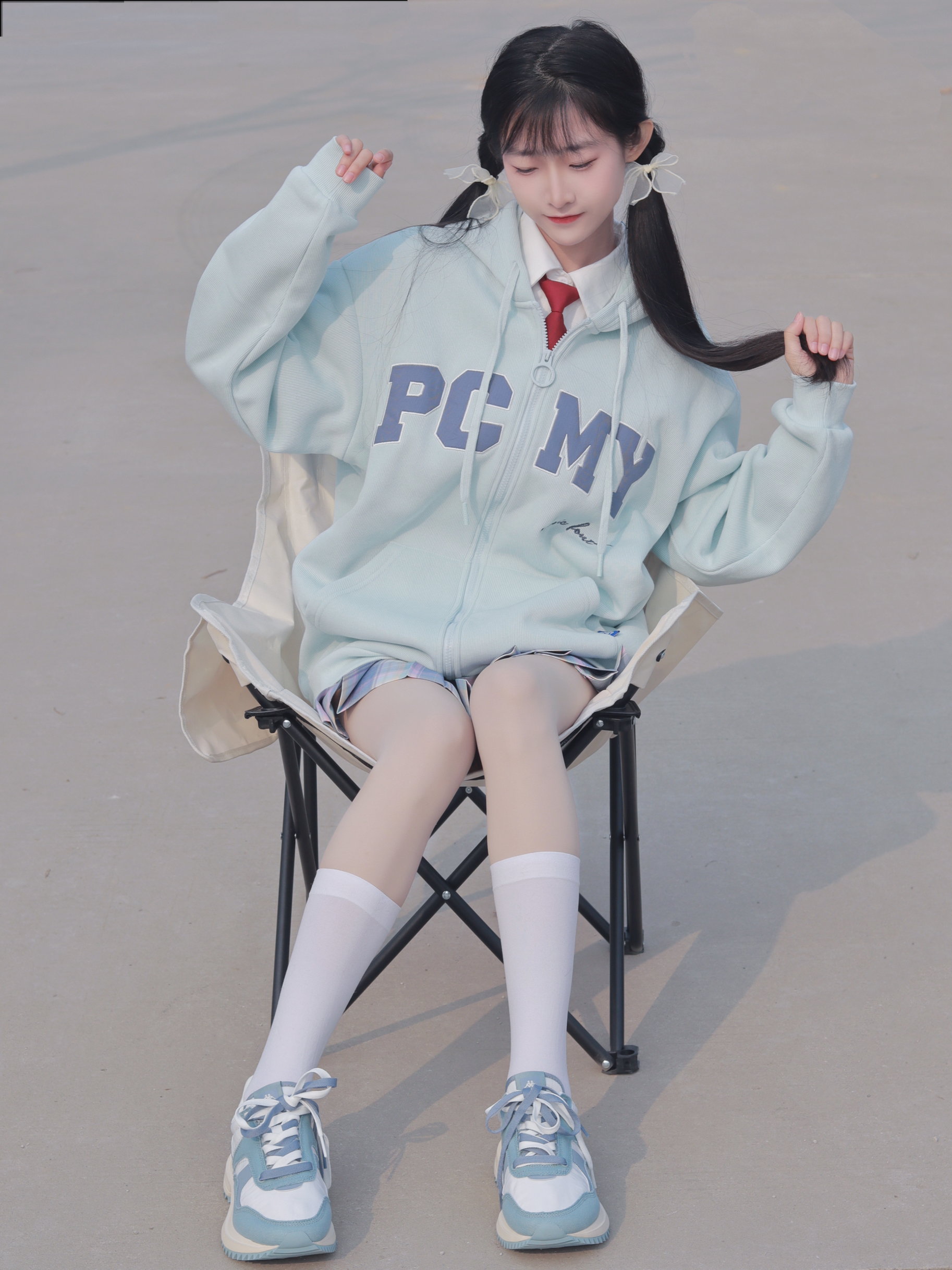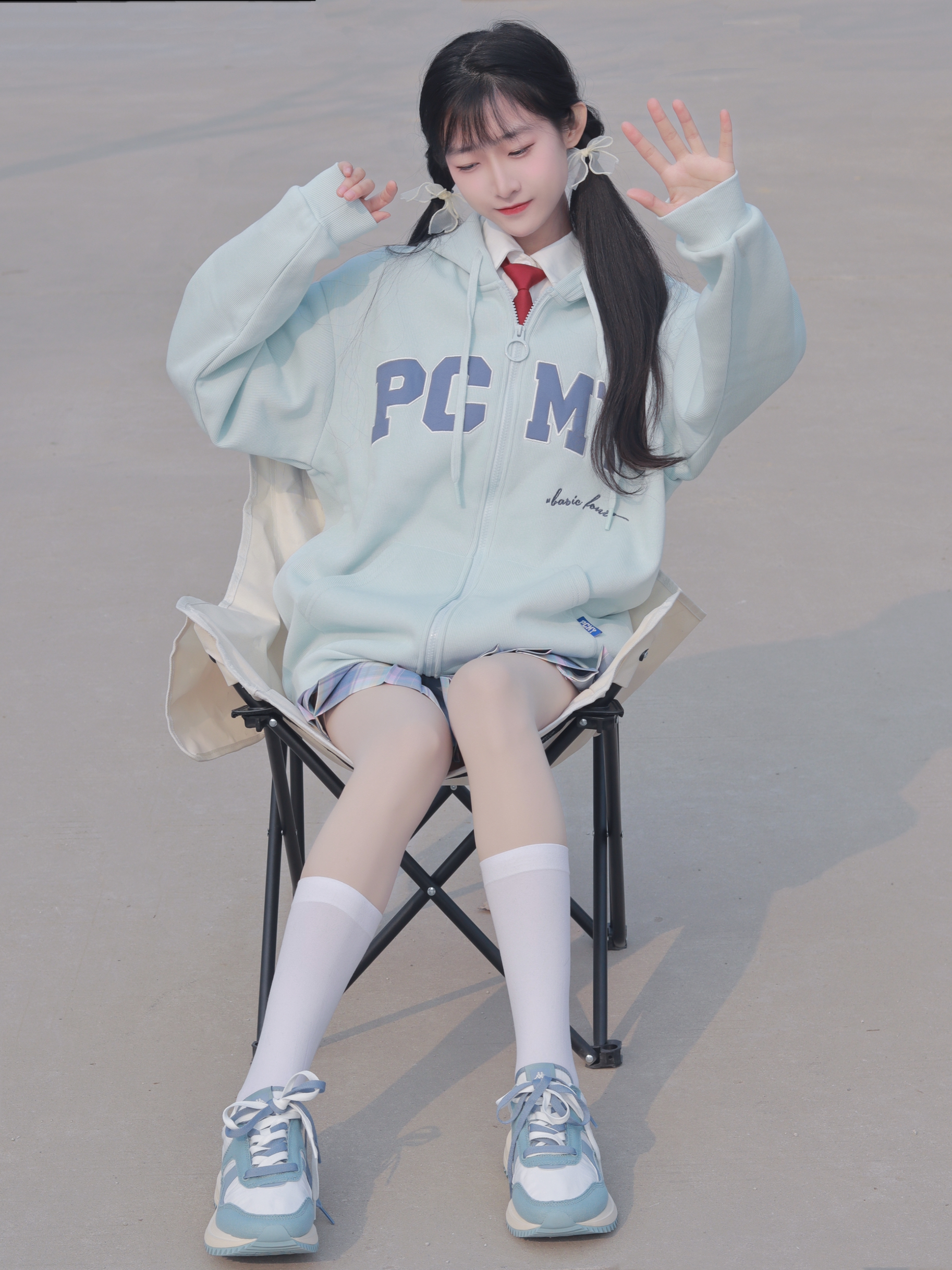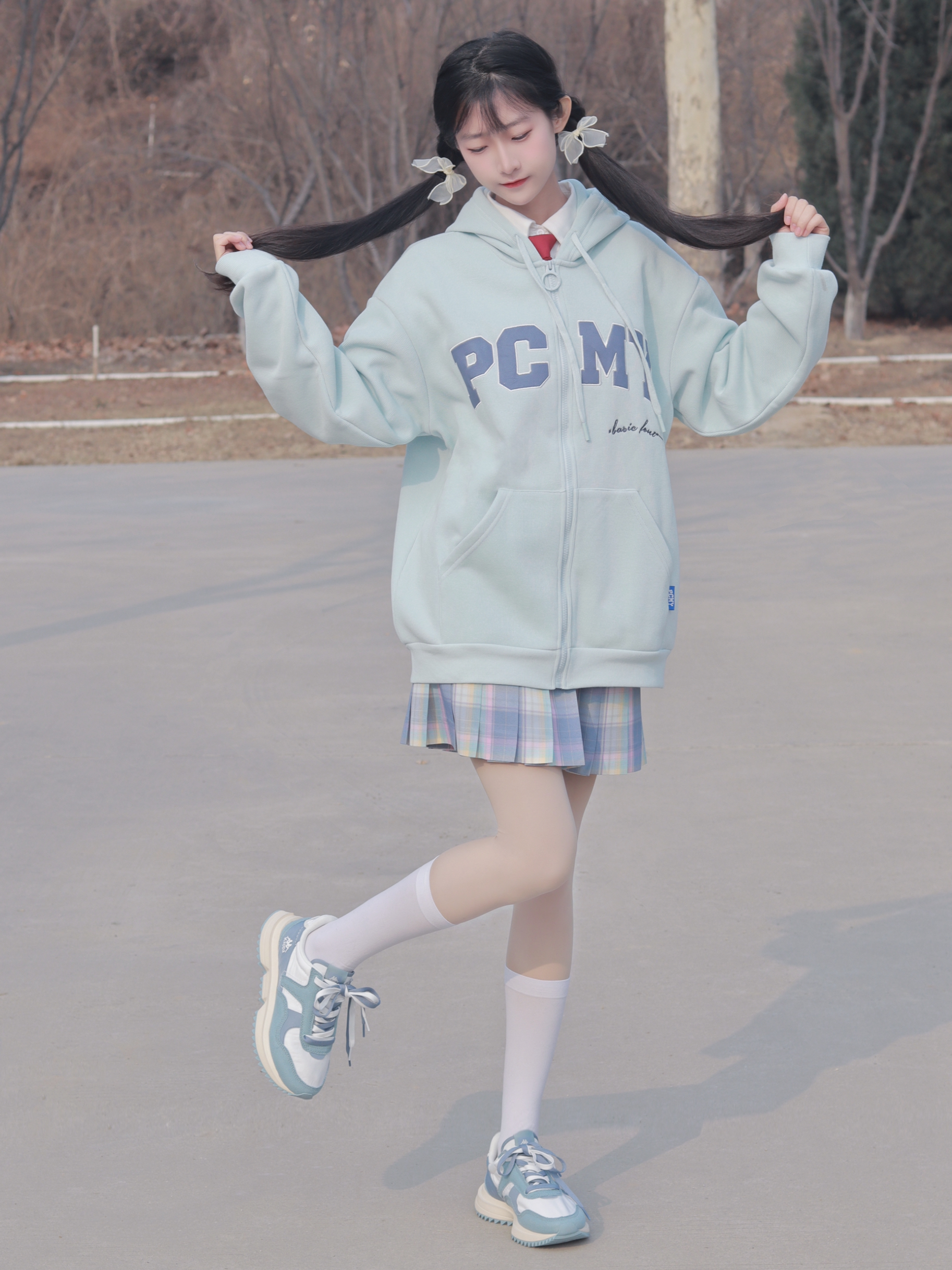 蓝色外套🧥简约俏皮 搭配同色系格裙和运动鞋👟 俏皮活泼又拿捏休闲感~
