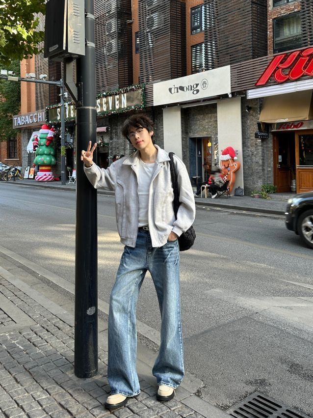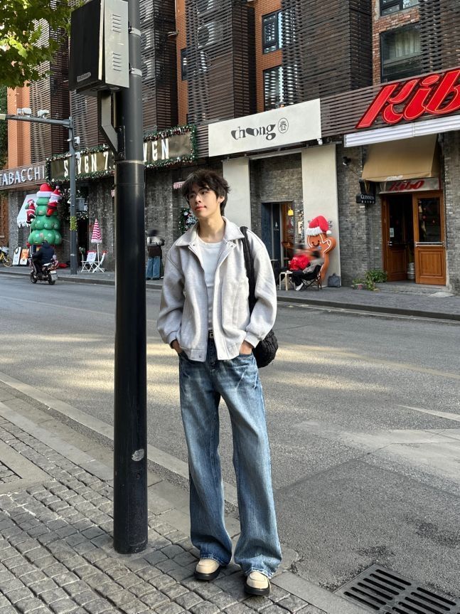 今天是浅色系穿搭 上衣选择PRESSURE灰色夹克 基础款的版型不挑身材 单穿或者内里搭配一件连帽卫衣叠穿都是可以的! 搭配一条ROUTE66闪电牛仔裤 clean fit必备神裤奥 顶! 最后鞋子选择1997乐福豆豆鞋哈哈哈 这一身秋冬穿包帅的! 图源网络侵删