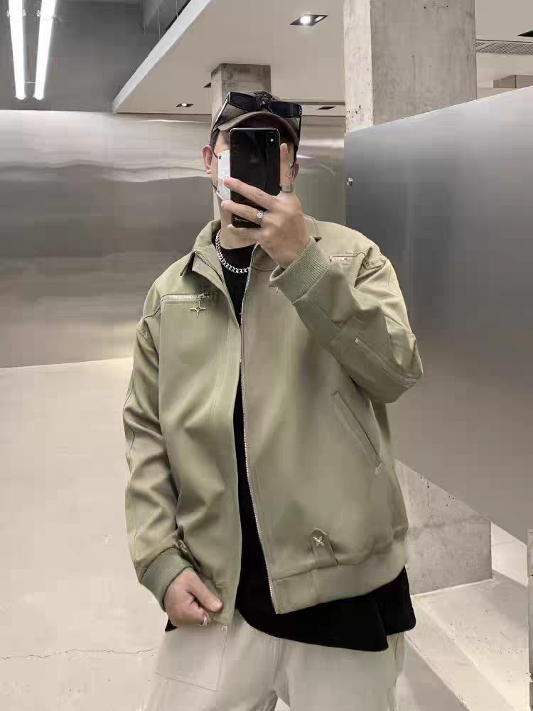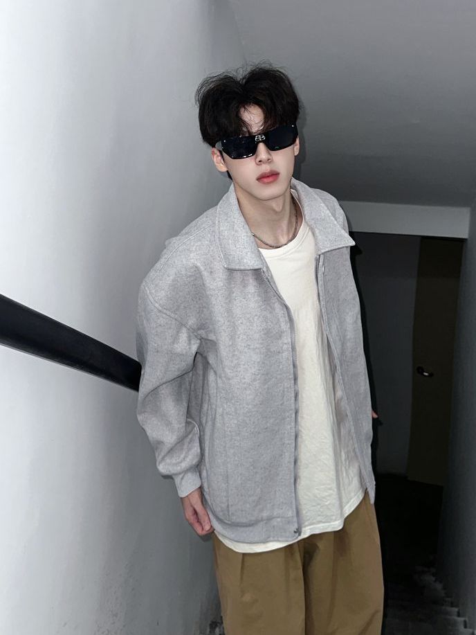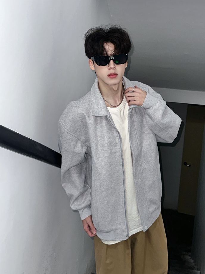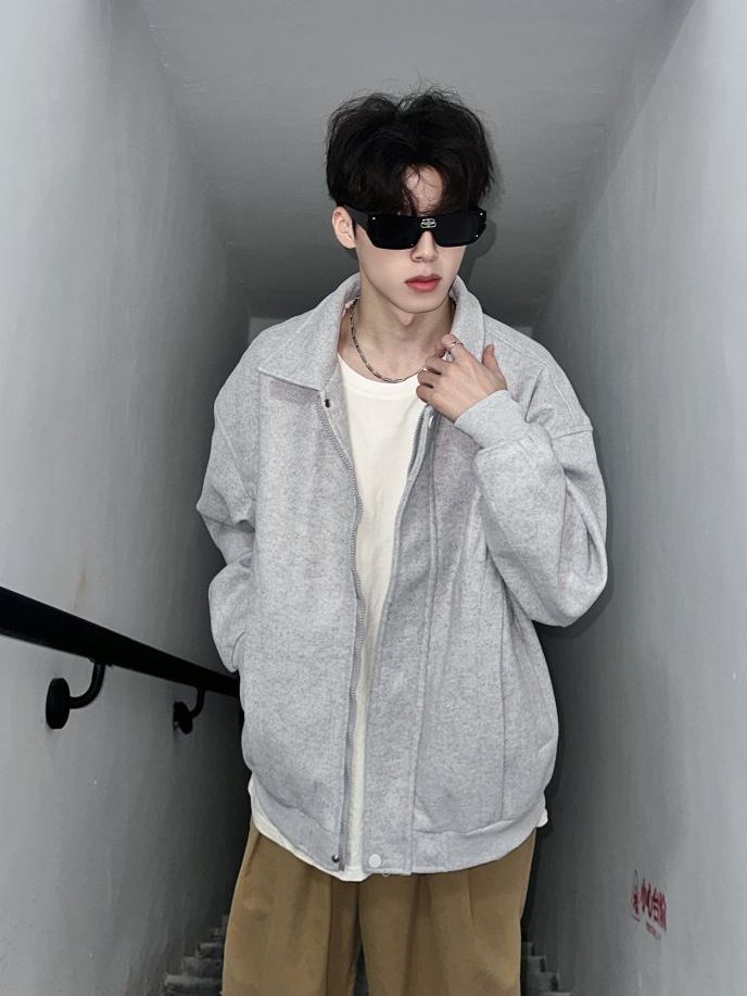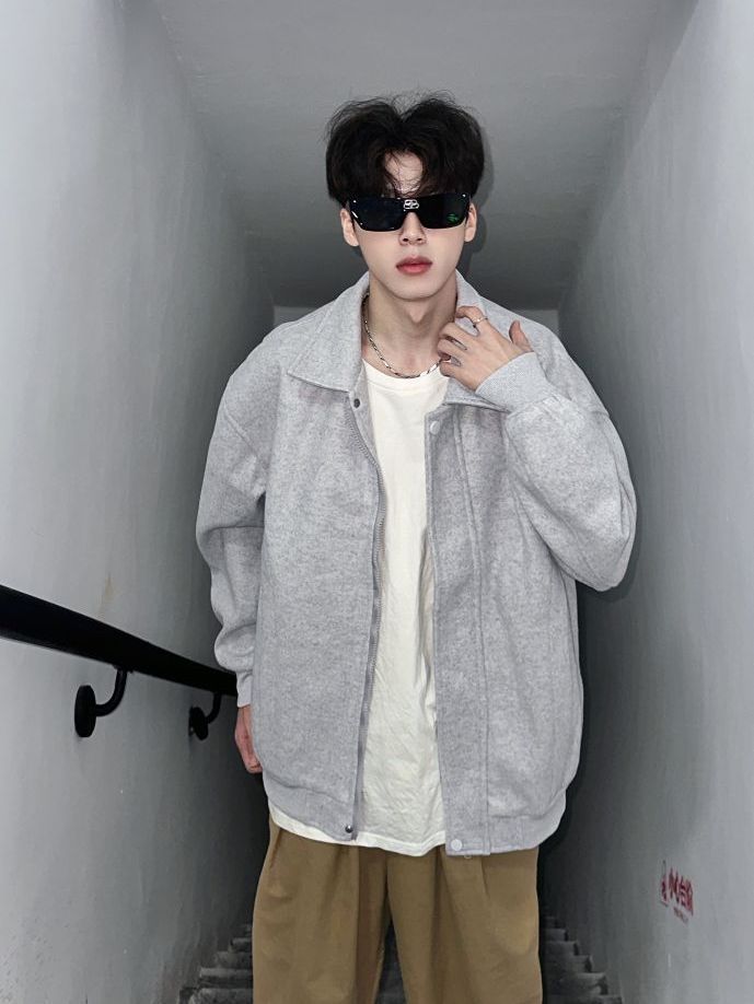 今天是少年感满满的穿搭!✌️ 外套👔的分享 基础简约美式复古logo印花夹克外套 纯灰色的色系感观很不错!👌 oversize的版型穿起来超舒服 翻领的设计又酷又飒 搭配一条直筒休闲裤松弛感绝了 整体偏美式复古风 少年感十足👍 (图源网络侵删)