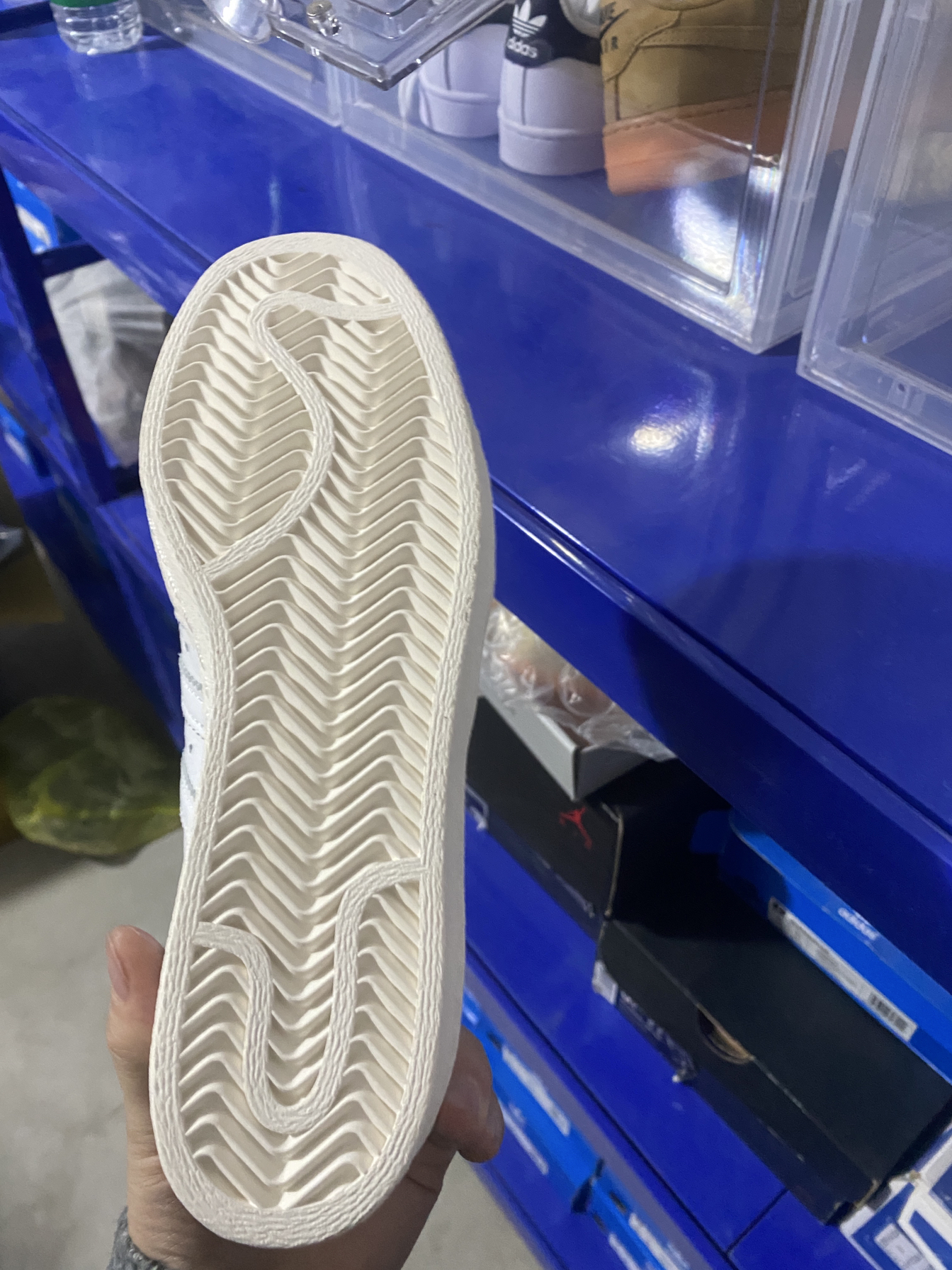 外观经典到不行,白色鞋身简约又百搭,三条杠标志辨识度超高,贝壳头设计独特又复古,不管什么时候穿都不过时,日常出街或者运动休闲都能轻松驾驭。 材质很靠谱,鞋面是优质皮革,质感满满,穿久了也不容易变形。皮革的透气性也不错,不会让脚太闷。而且打理起来相对方便,用湿布擦擦就很干净。 舒适度超出预期。鞋垫柔软,走路时能提供一定的缓冲,长时间行走也不会太累。鞋型比较贴合脚型,包裹性刚刚好,不会有挤脚或者松垮的...