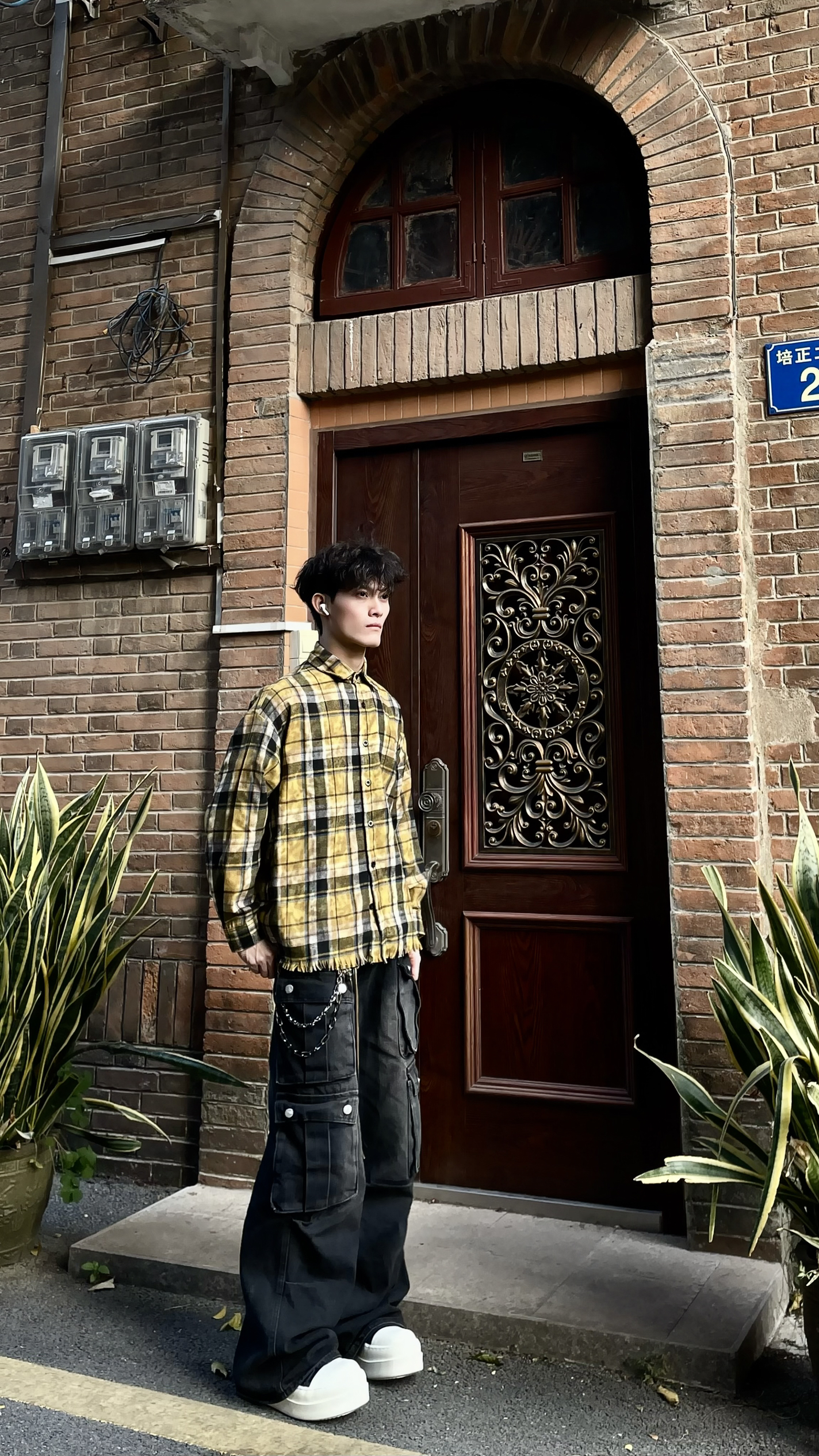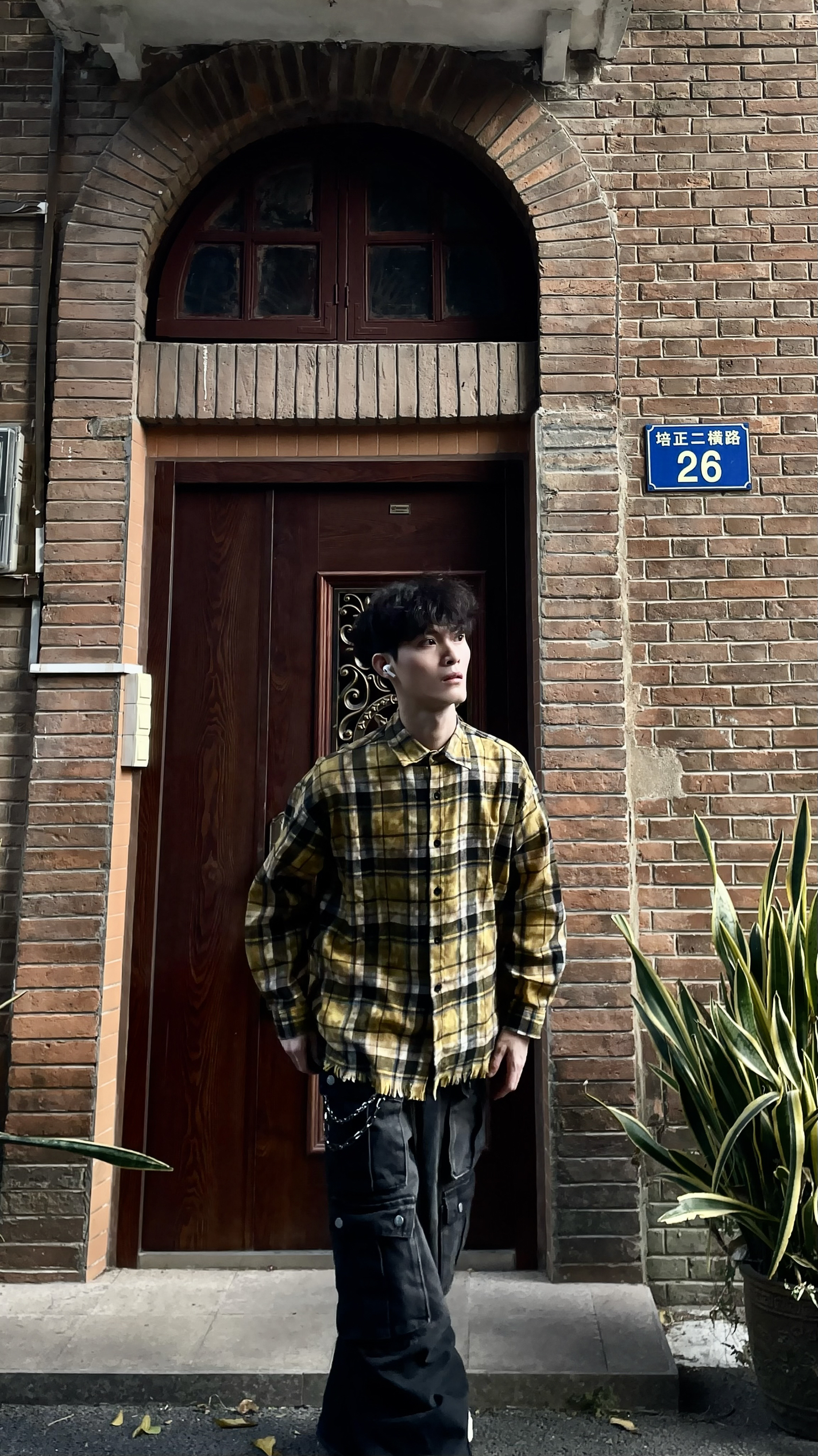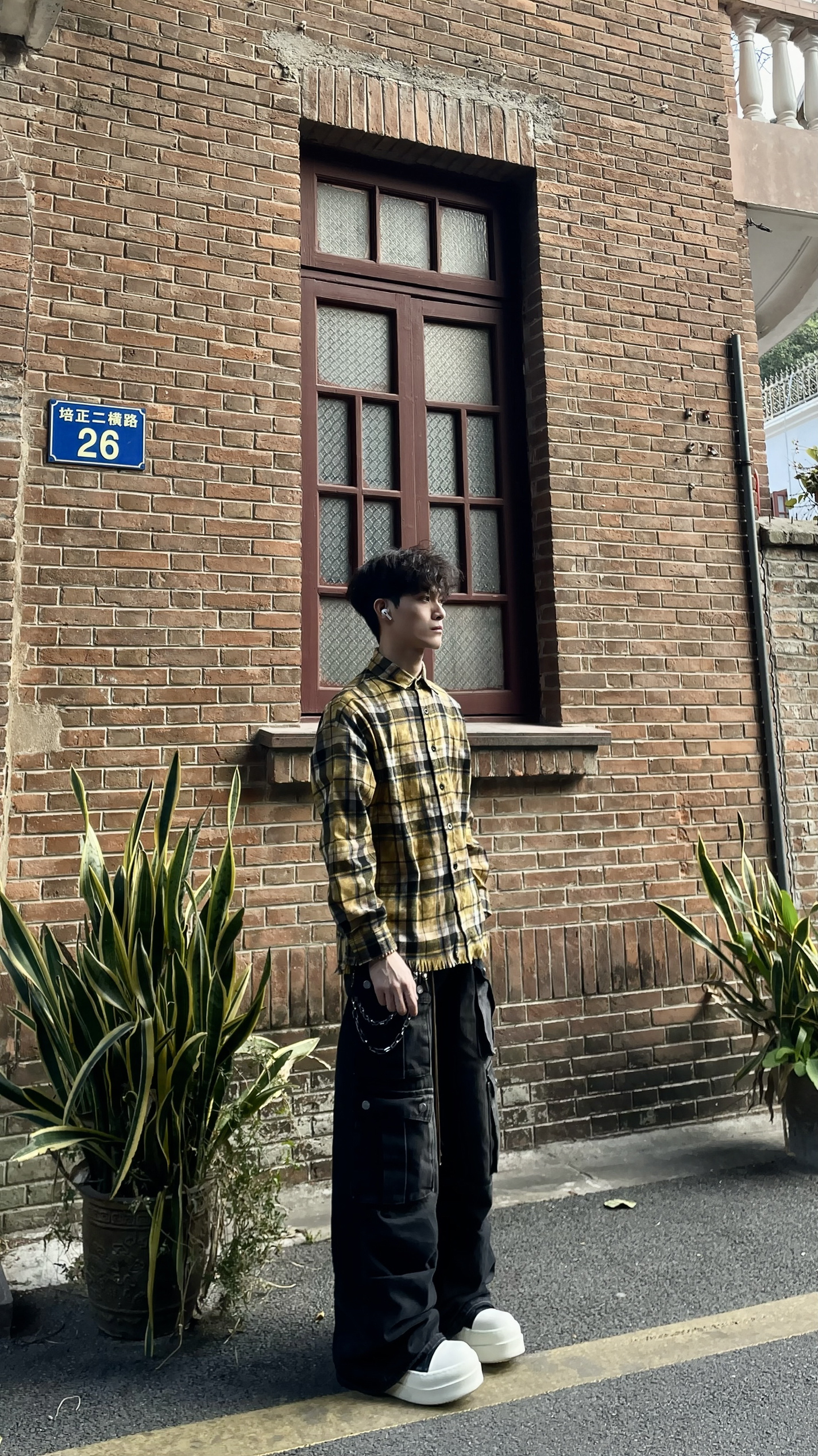 🥂冬日男生出门约会如何选择,赶紧抄袭这套撞色搭配buff感穿搭技巧📚 🧑🏻🦱简单的介绍今天的穿搭[爱心_blue] 📸 斑驳黄格纹长袖衬衫➕黑色多口袋水洗牛仔裤 — — — — — — — — — — — — — — — ①OOTD 👔SODIFF 格纹长袖衬衫,宽松休闲的插肩版型,破坏设计的下摆,水洗做旧的薄款面料 — 👖ProMax 中性服饰 多口袋水洗牛仔裤,宽松宽腿的工装版型,拖地下坠...