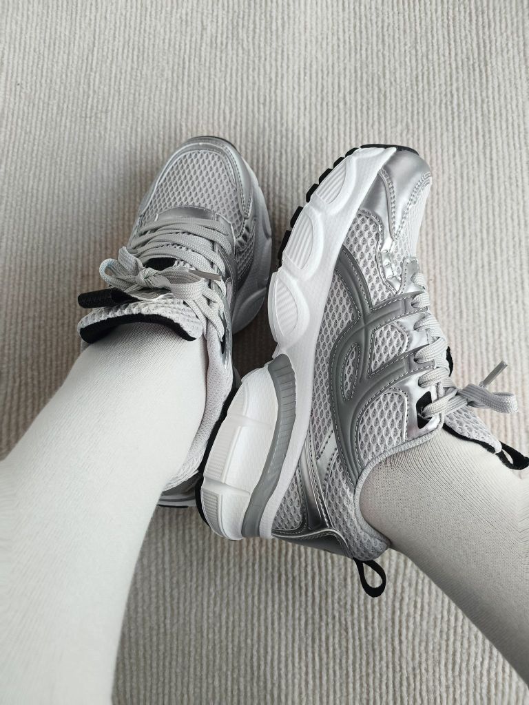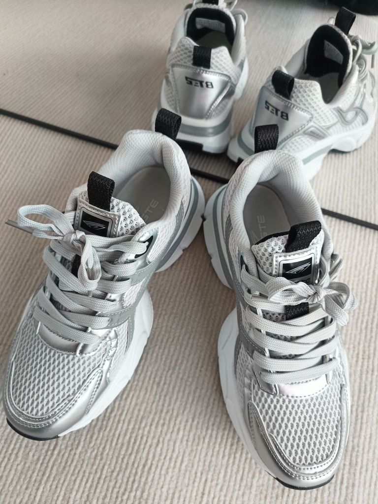 好喜欢这双老爹鞋啊 银色尊的好显高级啊 鞋底子软 脚感很舒服 厚底增高 适合小个子宝宝哦 简单百搭 怎么搭配都不会错 男女同款,都能穿