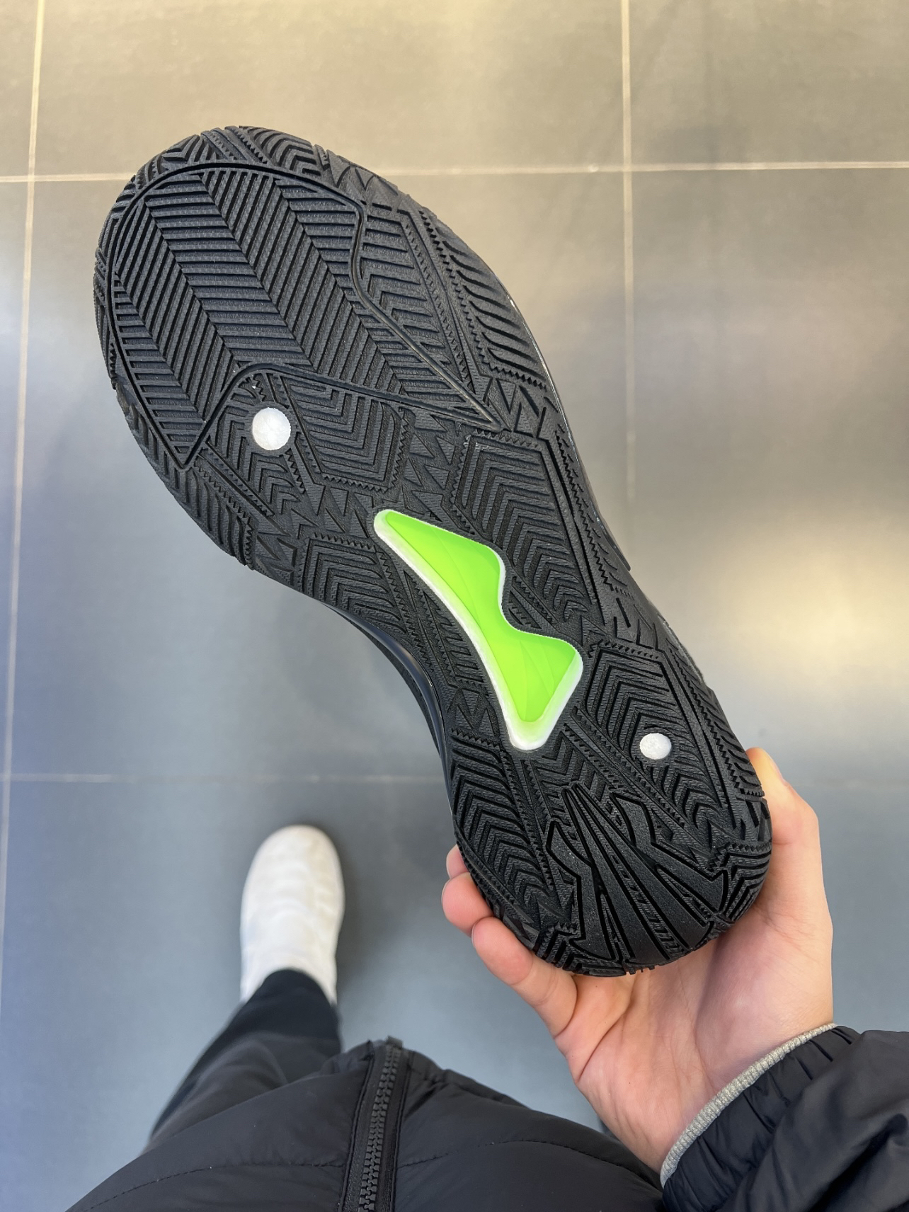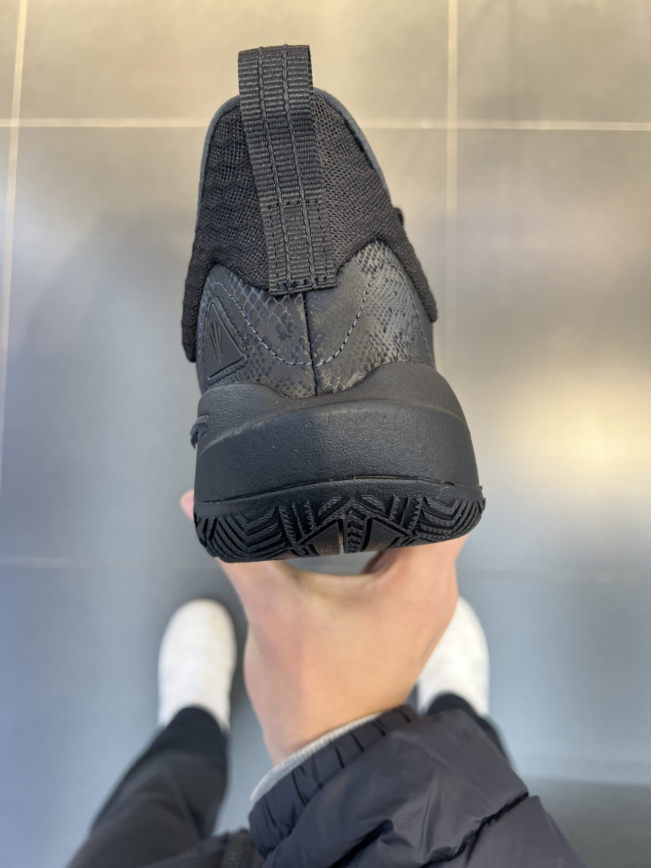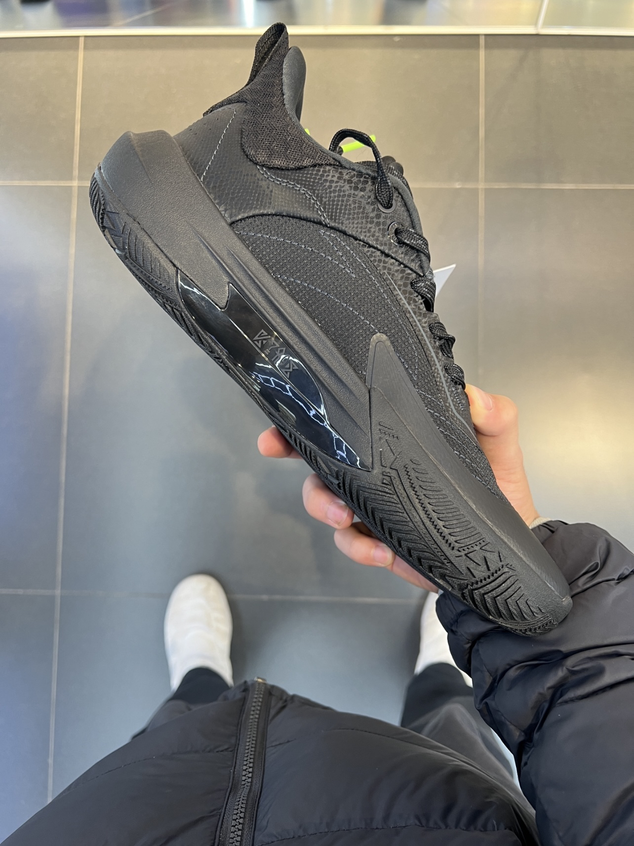 安踏欧文先驱一代,比起耐克的欧文系列,安踏的欧文系列更像是偏向团队鞋,适配人群更广了。 颜值:全黑的配色很神秘很帅 鞋面:包裹性支撑性很好 鞋底:耐磨不错抓地在有灰的场地有点打滑 中底:氮科技脚感很弹,场地感不错