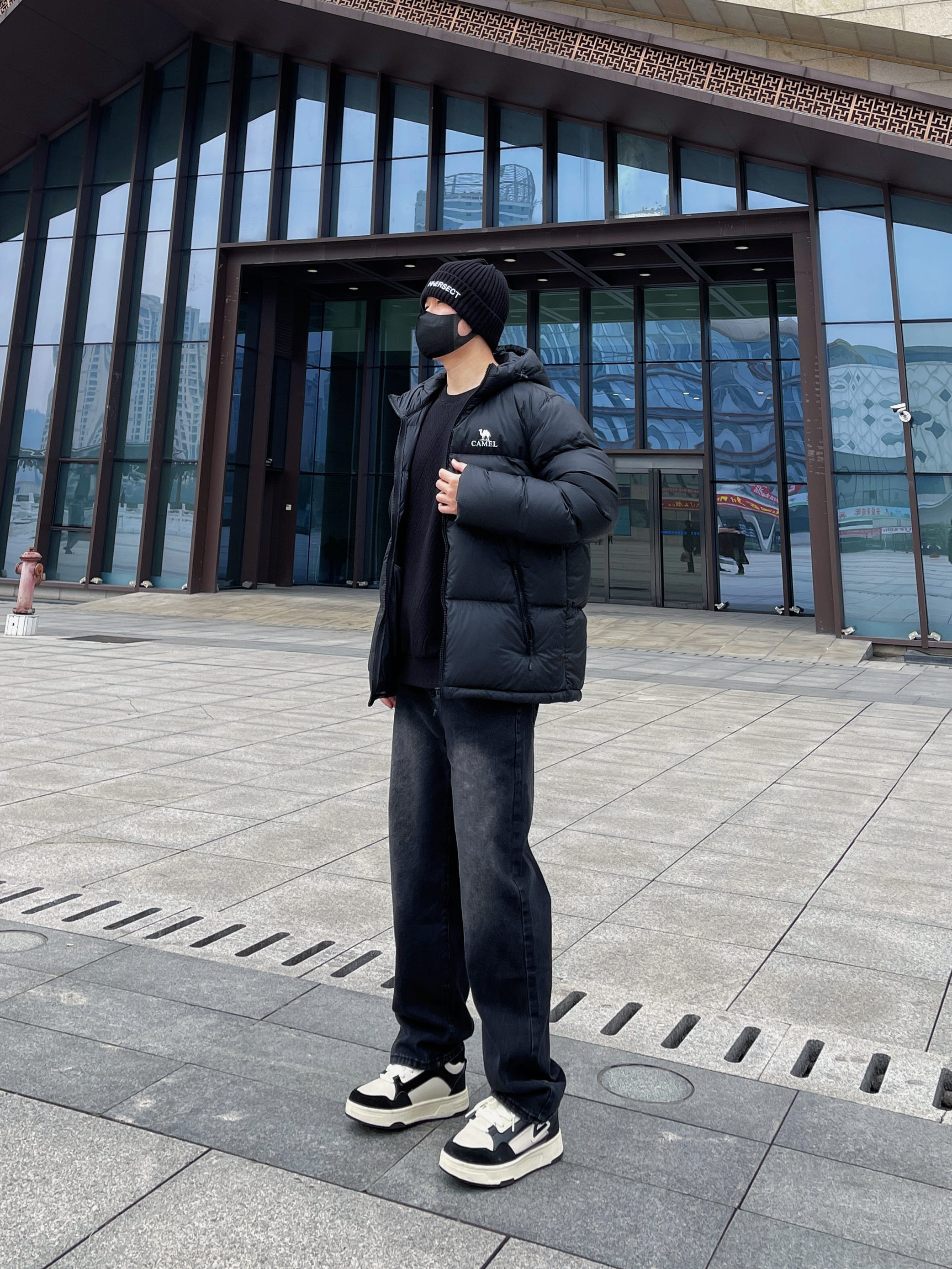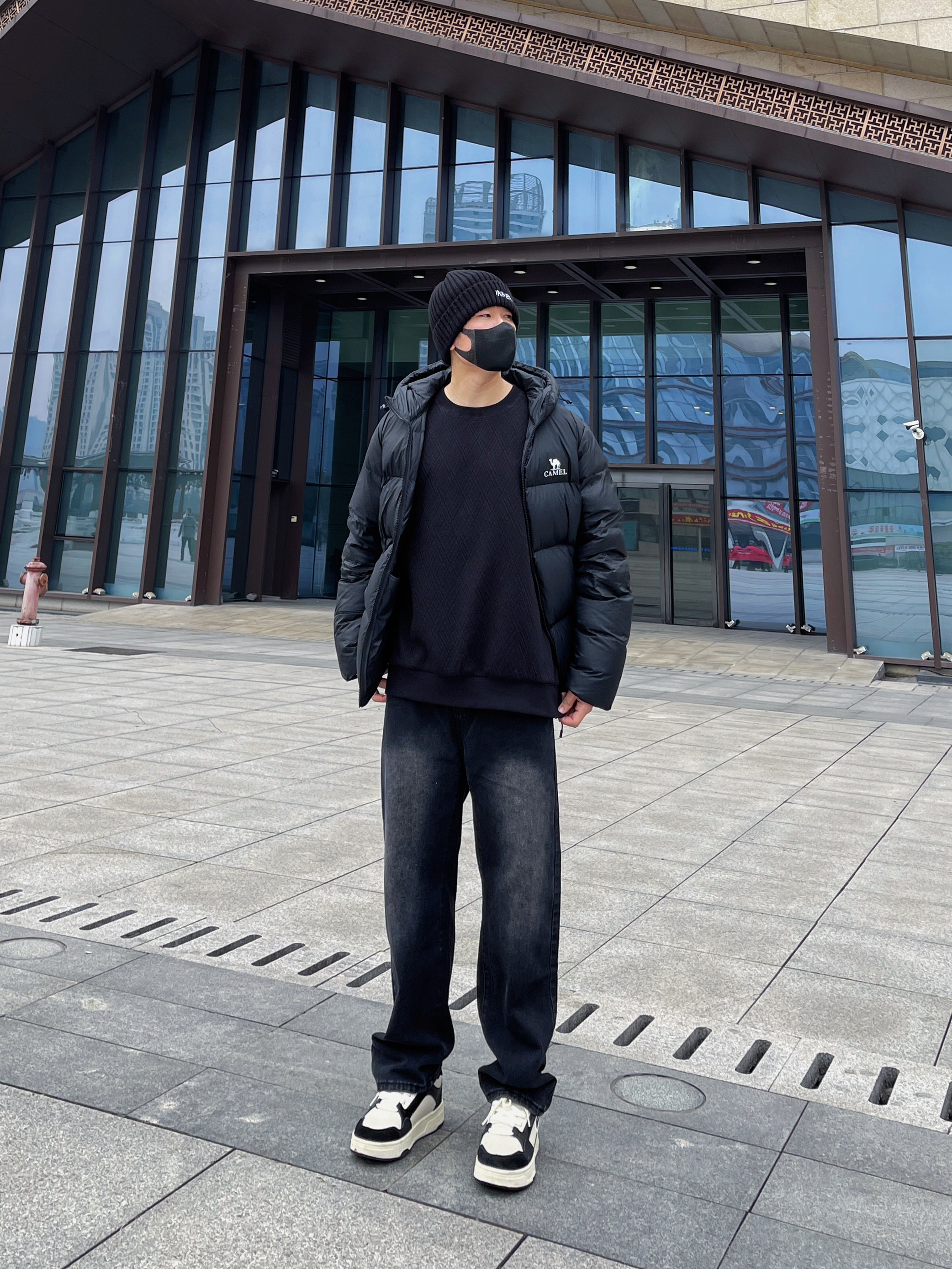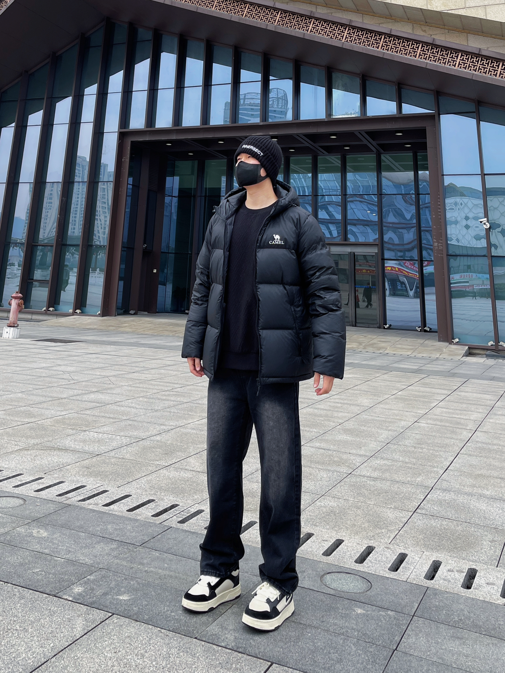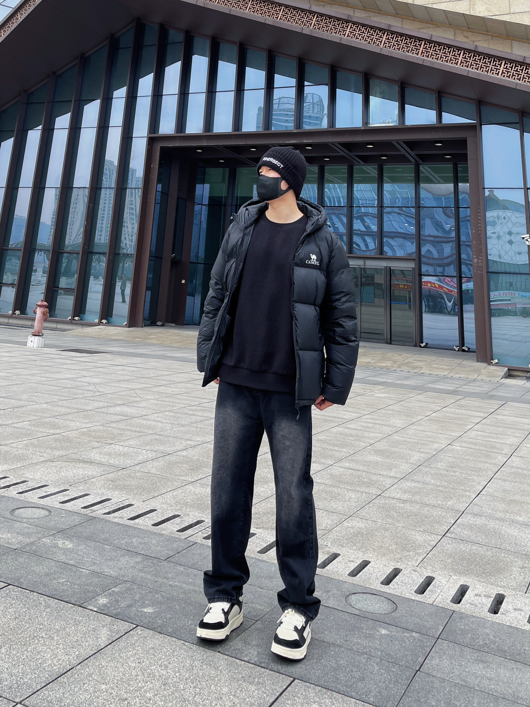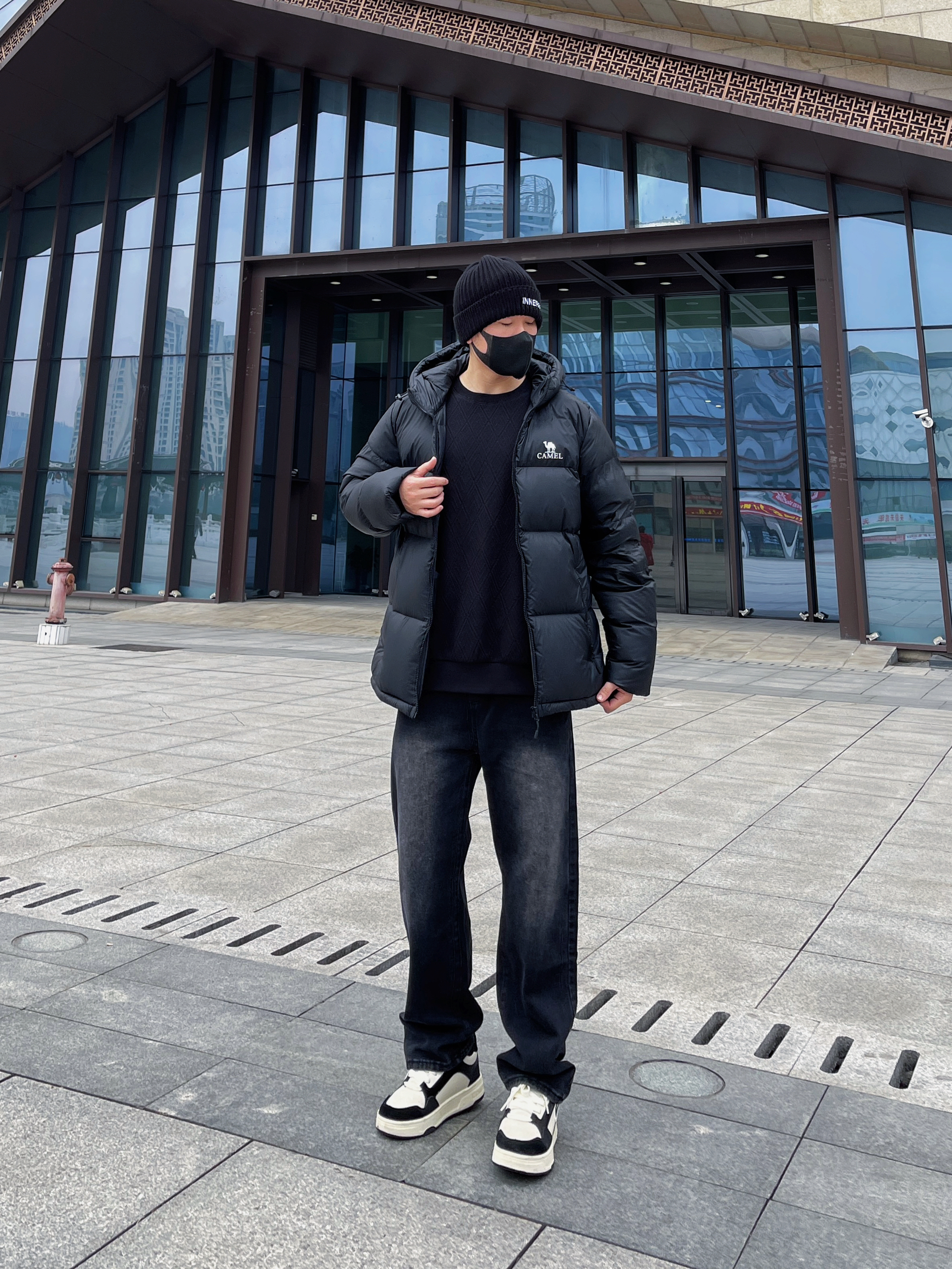 一身黑真的除了显瘦还是显瘦!! 简简单单但是很酷的连帽羽绒服💕 鸭绒填充面料质感满满✨ 简约又高级 内搭黑色卫衣更有层次感🖤 搭配水洗做旧的黑灰色牛仔裤👖 宽松直筒版型显瘦也显腿长🦵🏻 有一说一 这一身冬季穿搭真的太酷了🆒 - 今日穿搭 🧥: CAMEL/GXG 👖: Fakeyoung 👟: PEAK