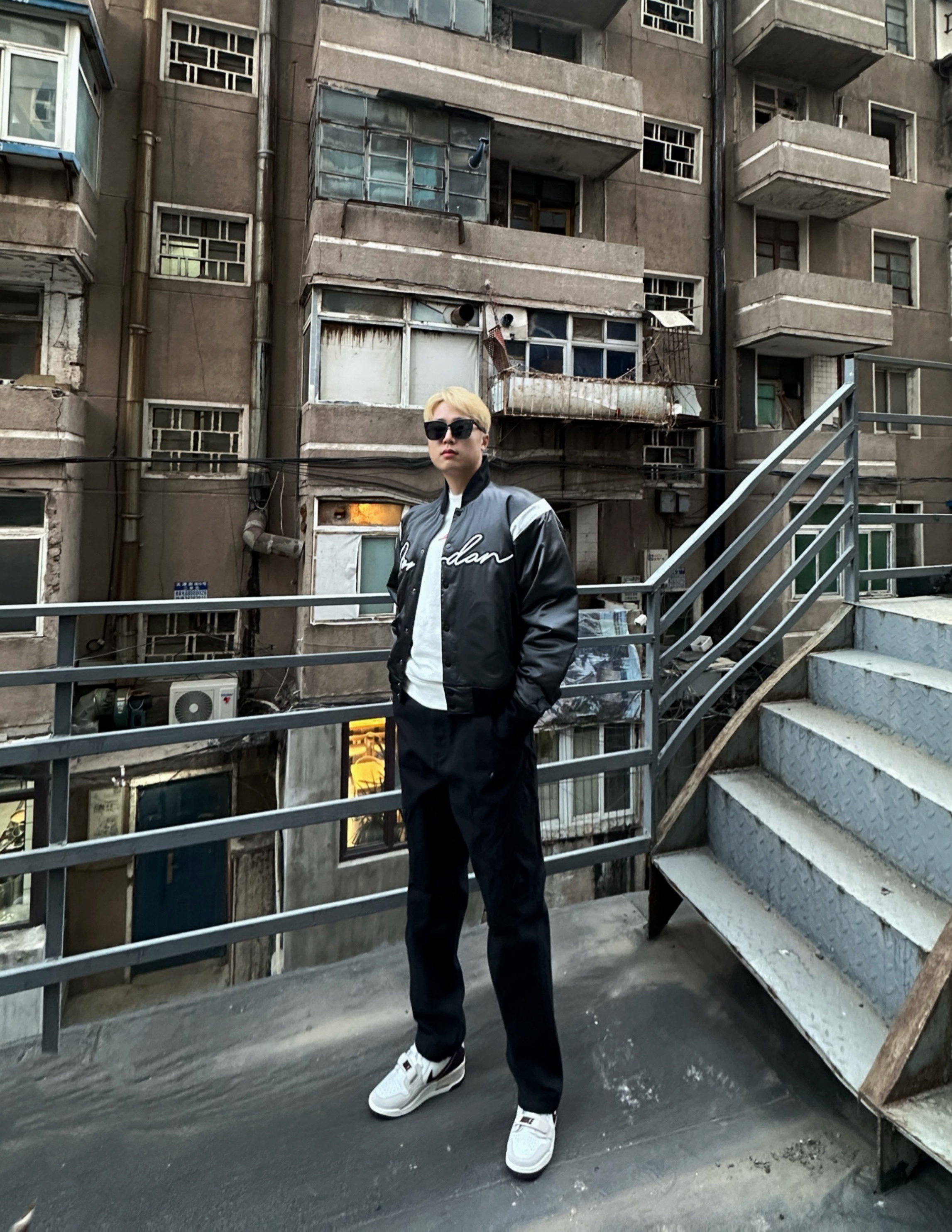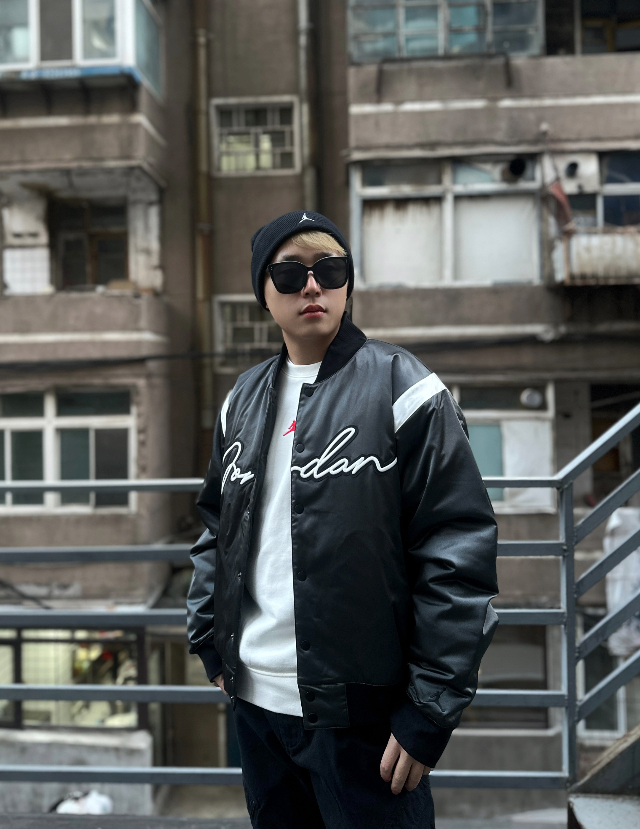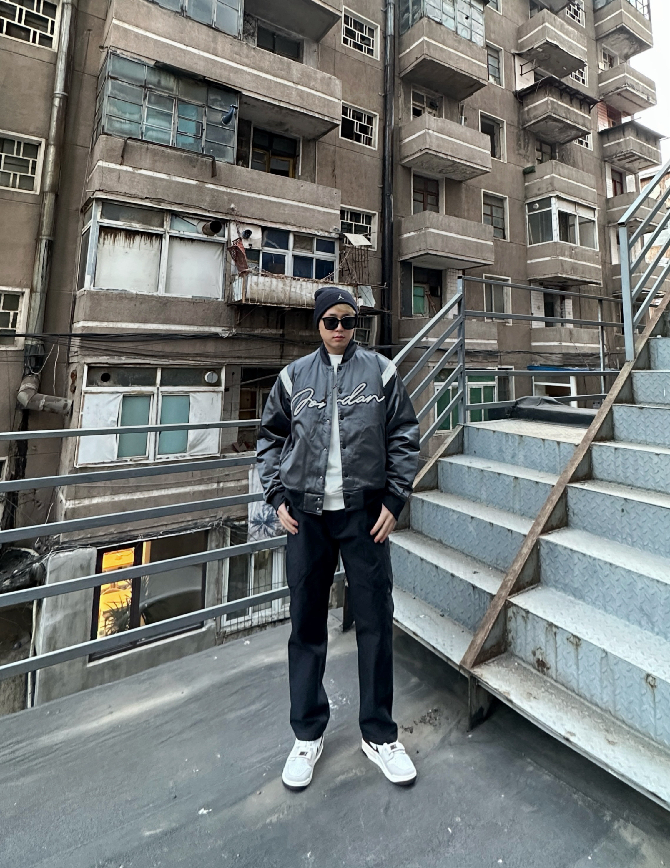 身高177体重74参考衣服2XL裤子XL(略大) 王嘉尔签约AJ,同款穿搭必须来搞一套 别的不说,这个裤子超级显腿长,是不是看不出来里面还有一条厚棉裤👀 衣服宽松,基本上是闭眼入的版型 内搭随意搞了个白T