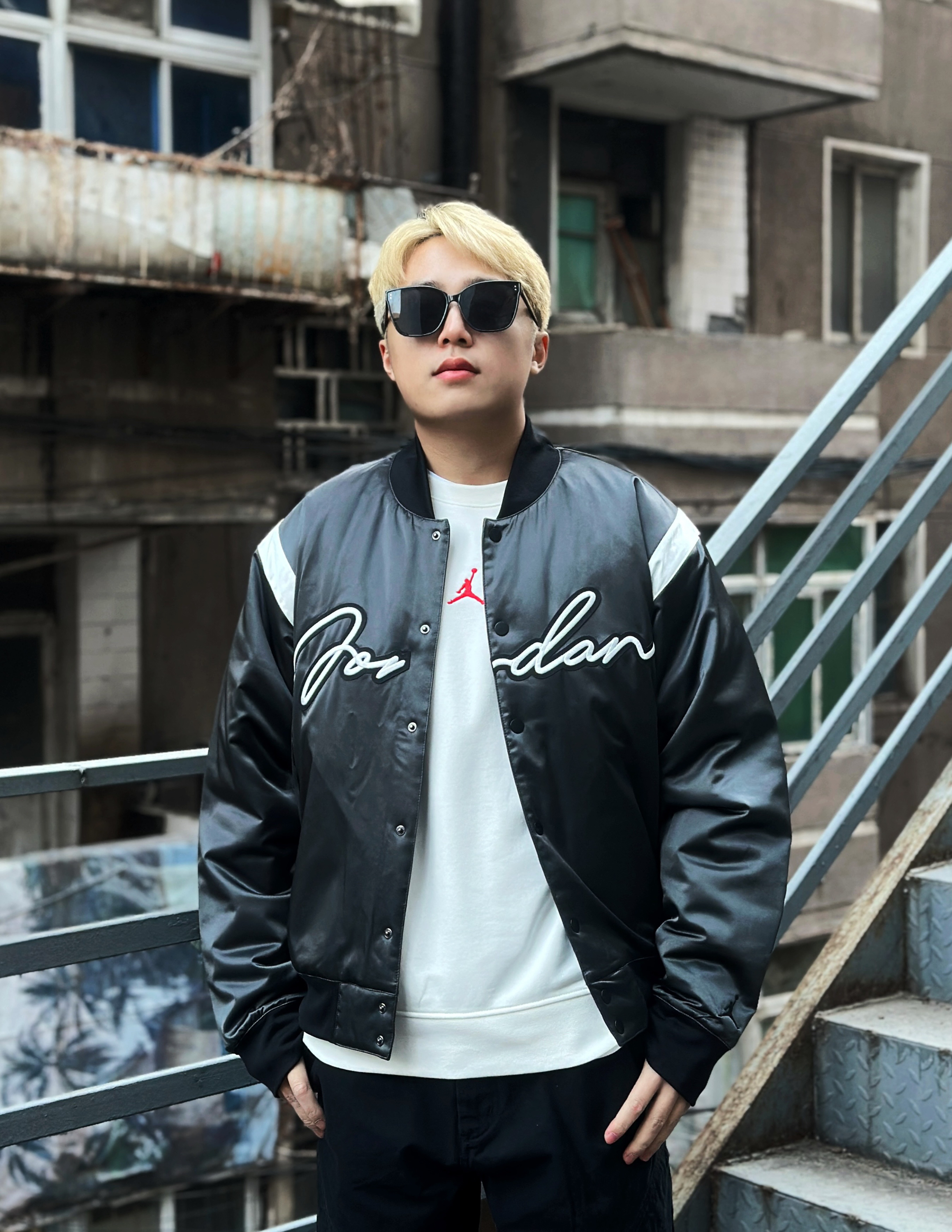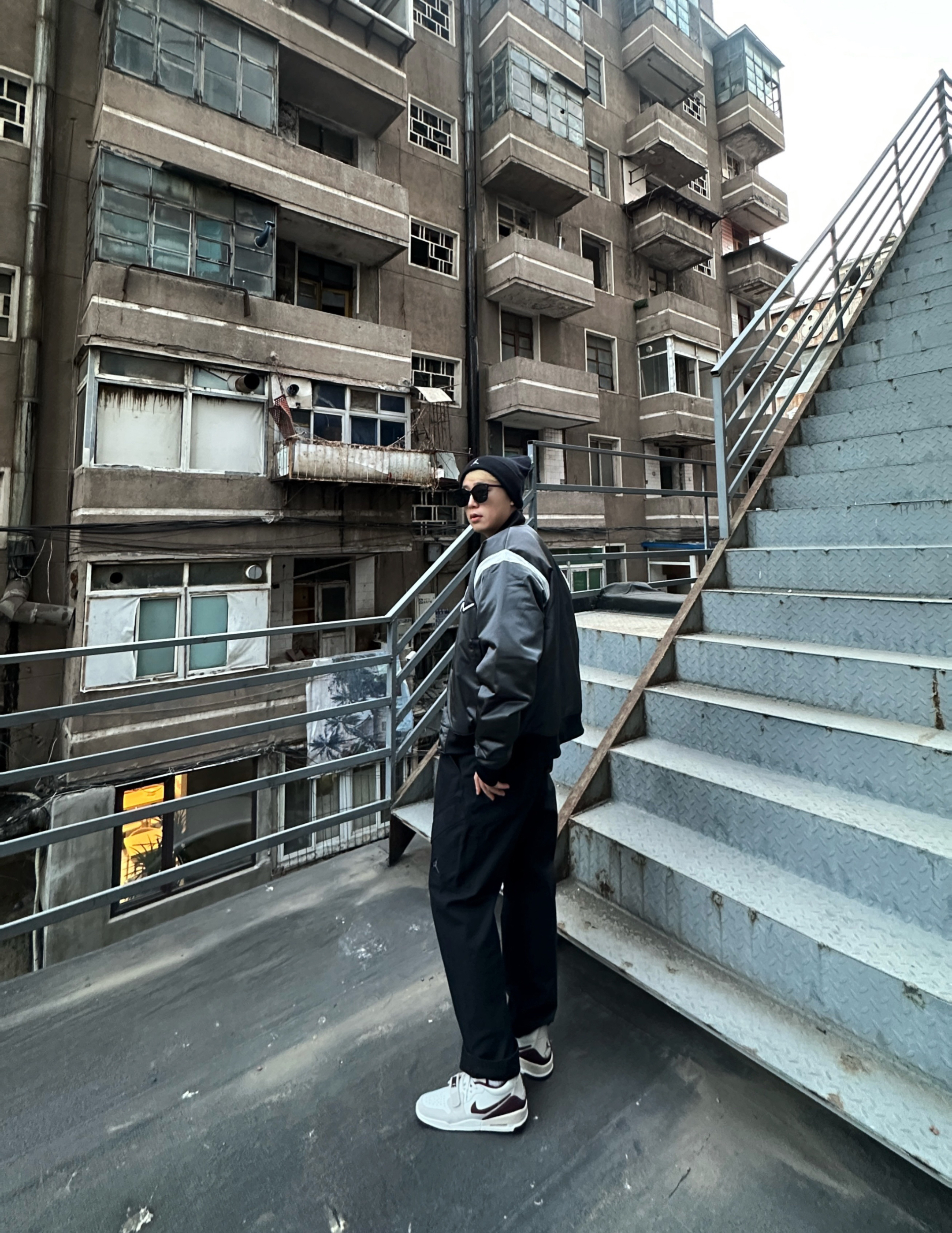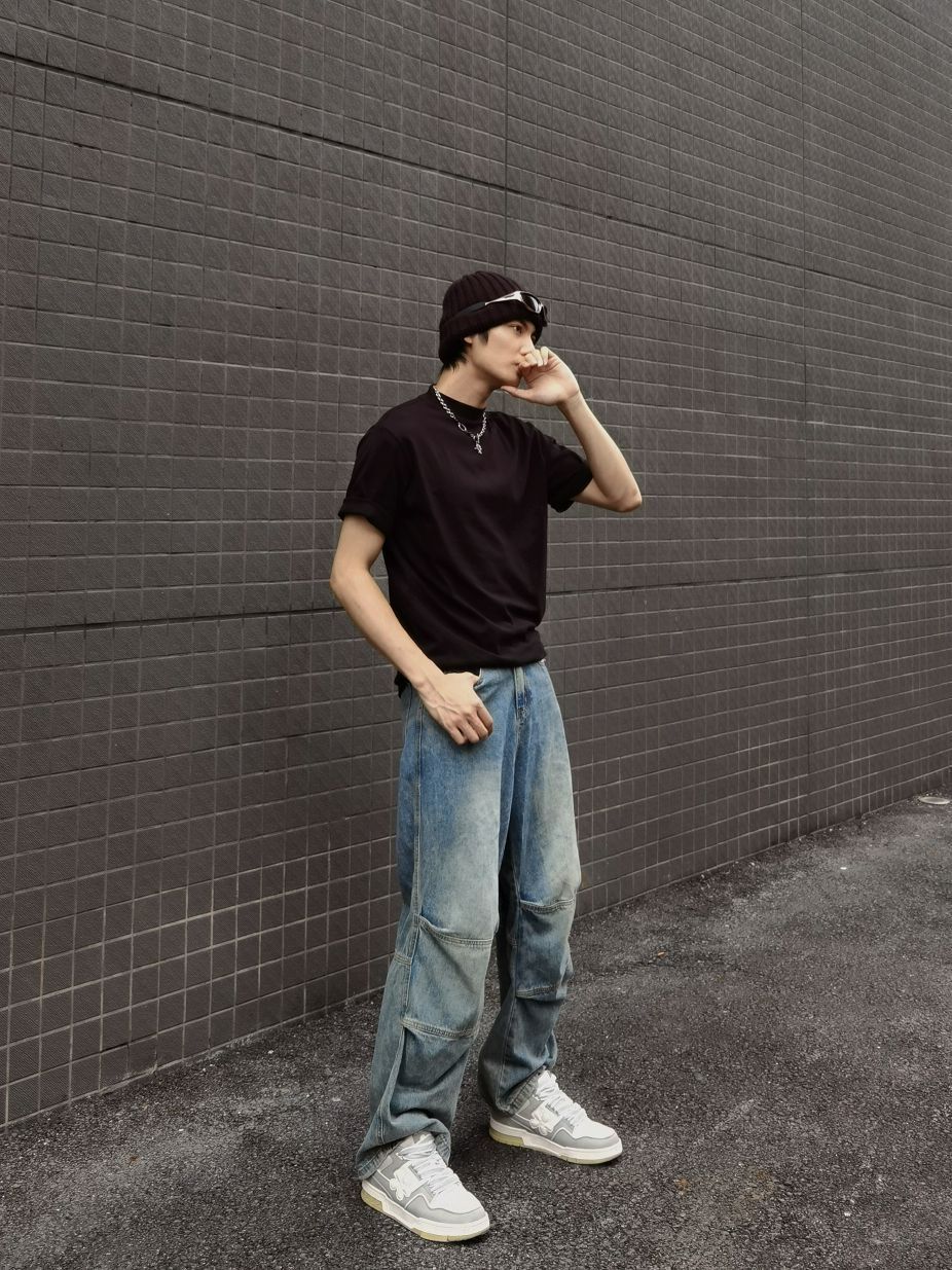 身高177体重74参考衣服2XL裤子XL(略大) 王嘉尔签约AJ,同款穿搭必须来搞一套 别的不说,这个裤子超级显腿长,是不是看不出来里面还有一条厚棉裤👀 衣服宽松,基本上是闭眼入的版型 内搭随意搞了个白T