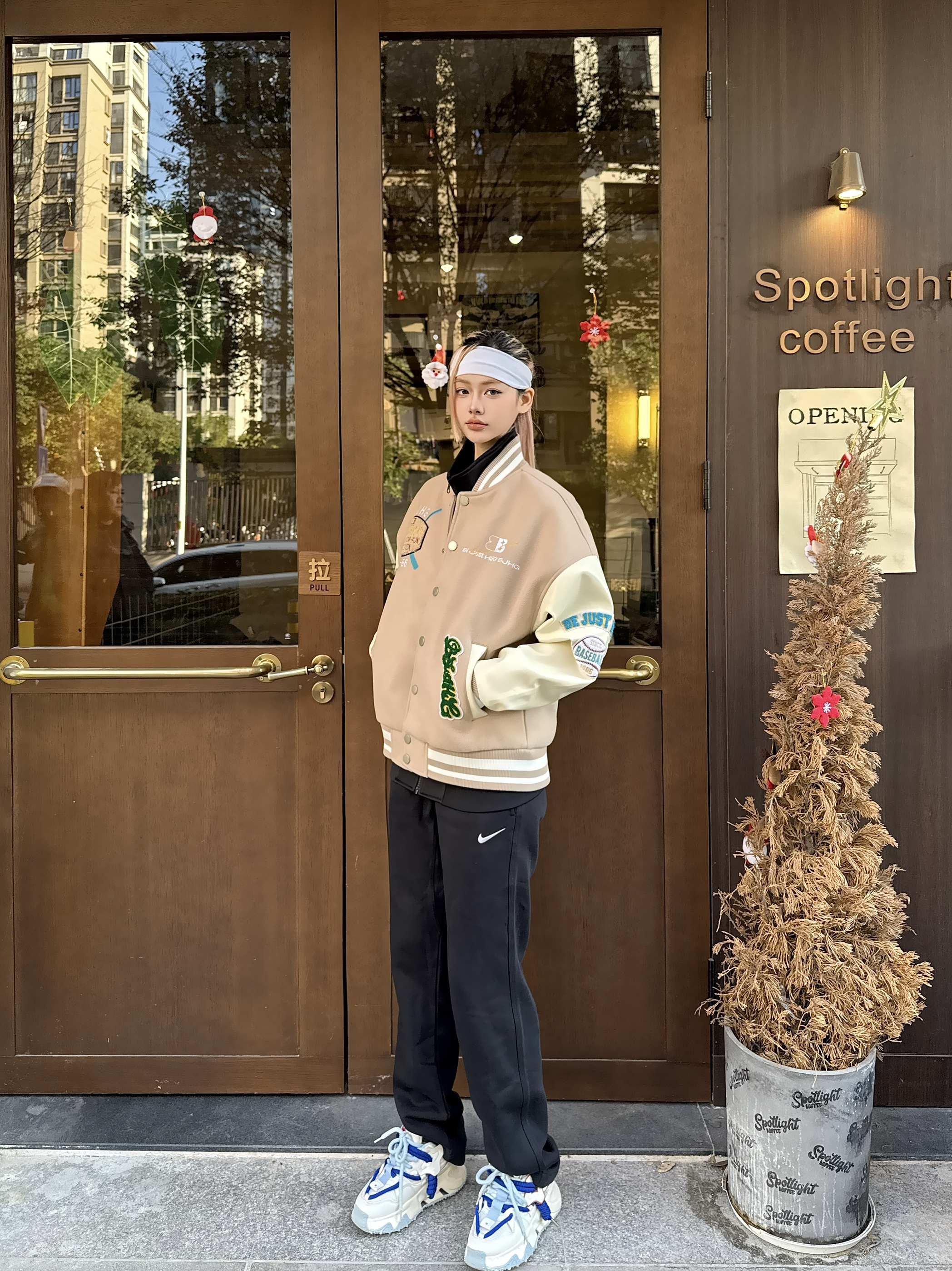 卫衣外套里面穿一件亨利衫 层次感一下就出来了 再加上一双银色老爹鞋 一套简单又不普通的帅气穿搭GET!