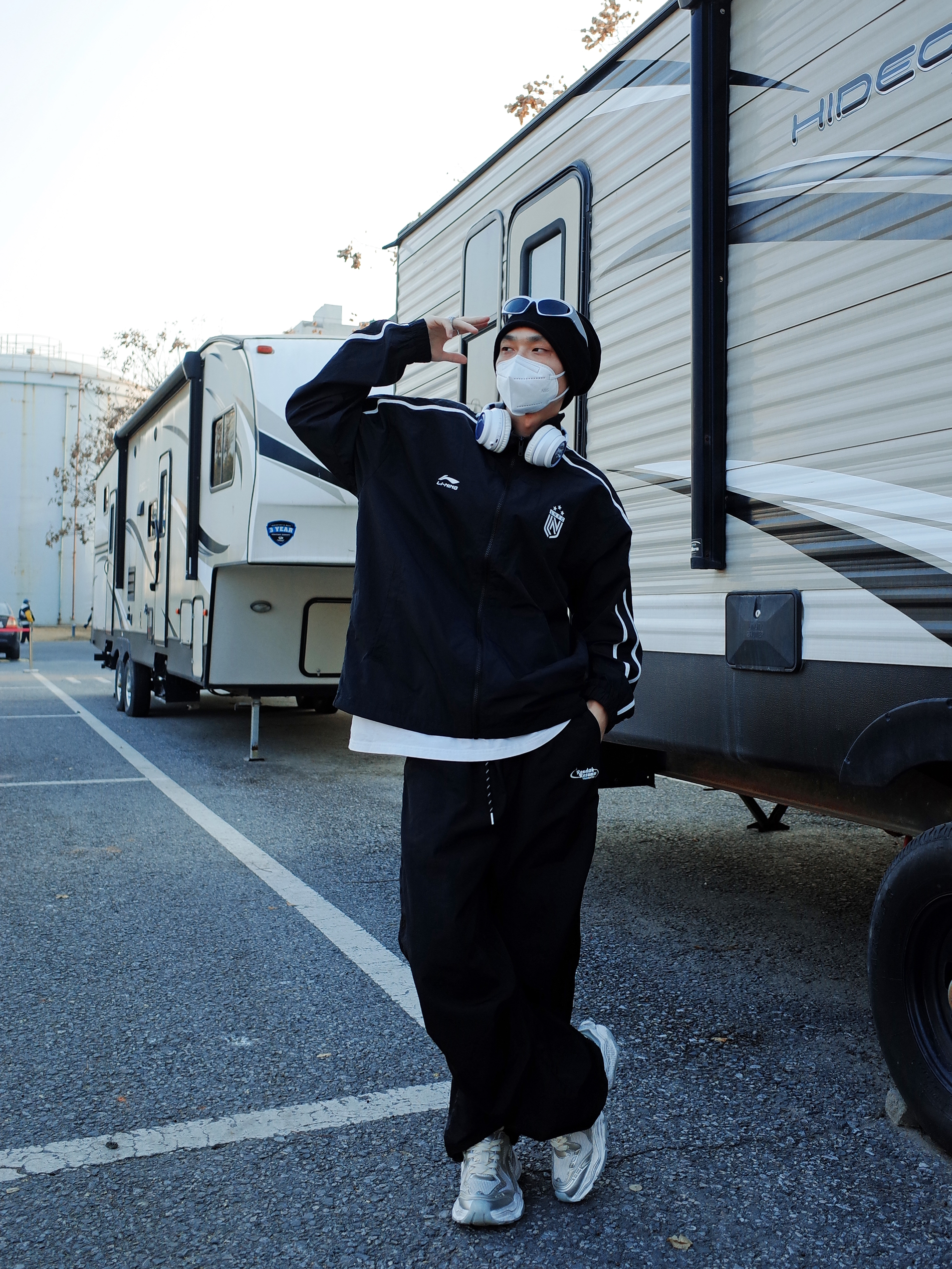 hi,这里是怪兽涵哥 黑色在哪里都挺耐看的 开年fitcheck,all black包帅的 - 美式立领的外套➕休闲裤 侧边线条的设计轻松拿捏运动风 搭配一双复古的老爹鞋就有那味儿了 戴上白色的耳机 随身听音乐的同时也有了氛围感 这样清爽的运动风穿搭快学起来