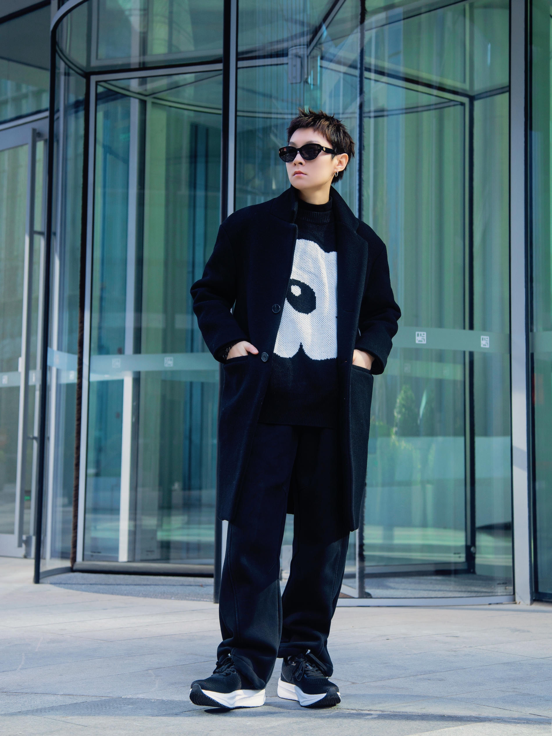 长期主义穿搭必备单品得有黑大衣的一席之地 分享一套冬日大衣穿搭 穿搭指南: 上身一件黑白圆领毛衣 基础版型 简约有质感 外搭一件自带高级感的黑色长款大衣 配一条黑色弯刀休闲裤 选一双邦特跑步鞋 黑白配色加一点蓝色点缀更有活力 脚感舒适 约会或运动都ok 整体休闲和运动风的结合太时髦啦 约会穿搭选黑大衣就对了