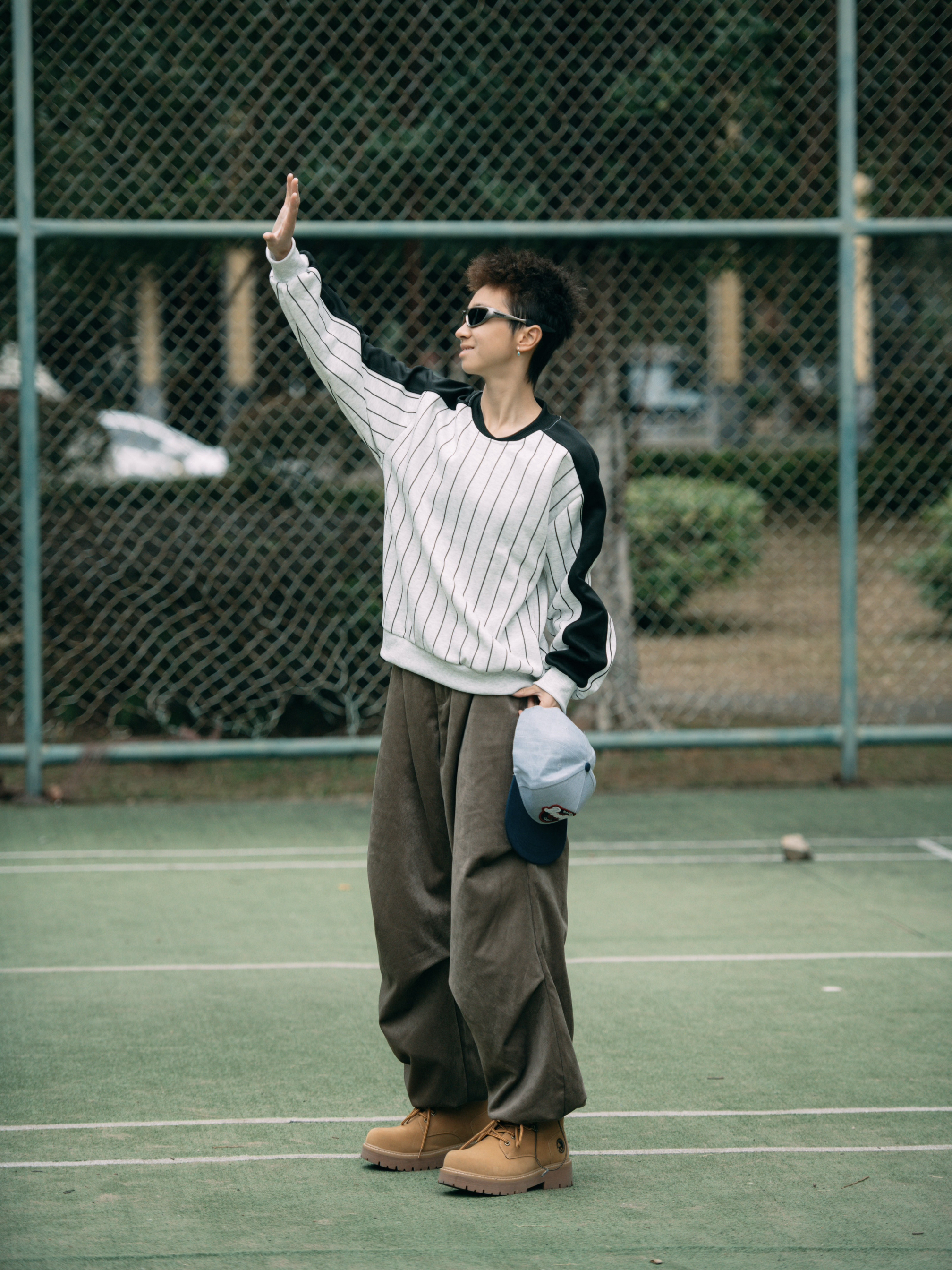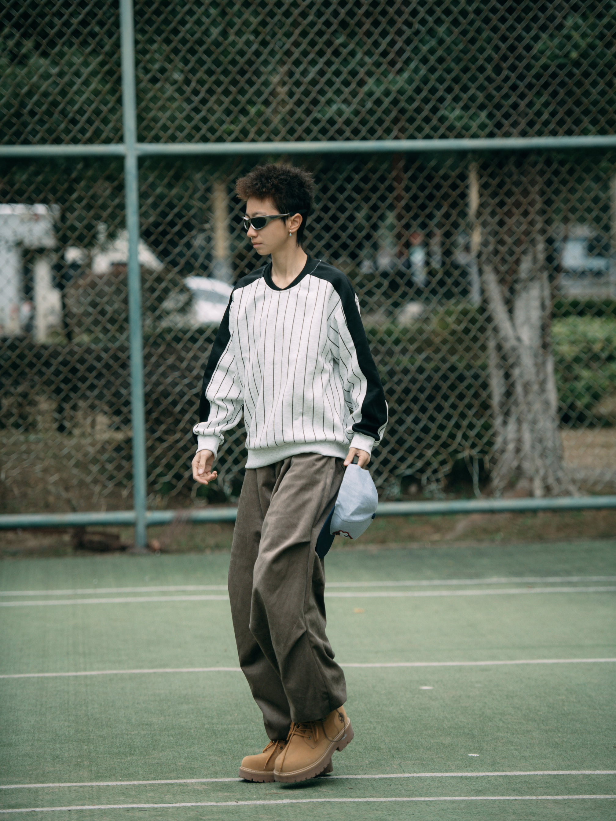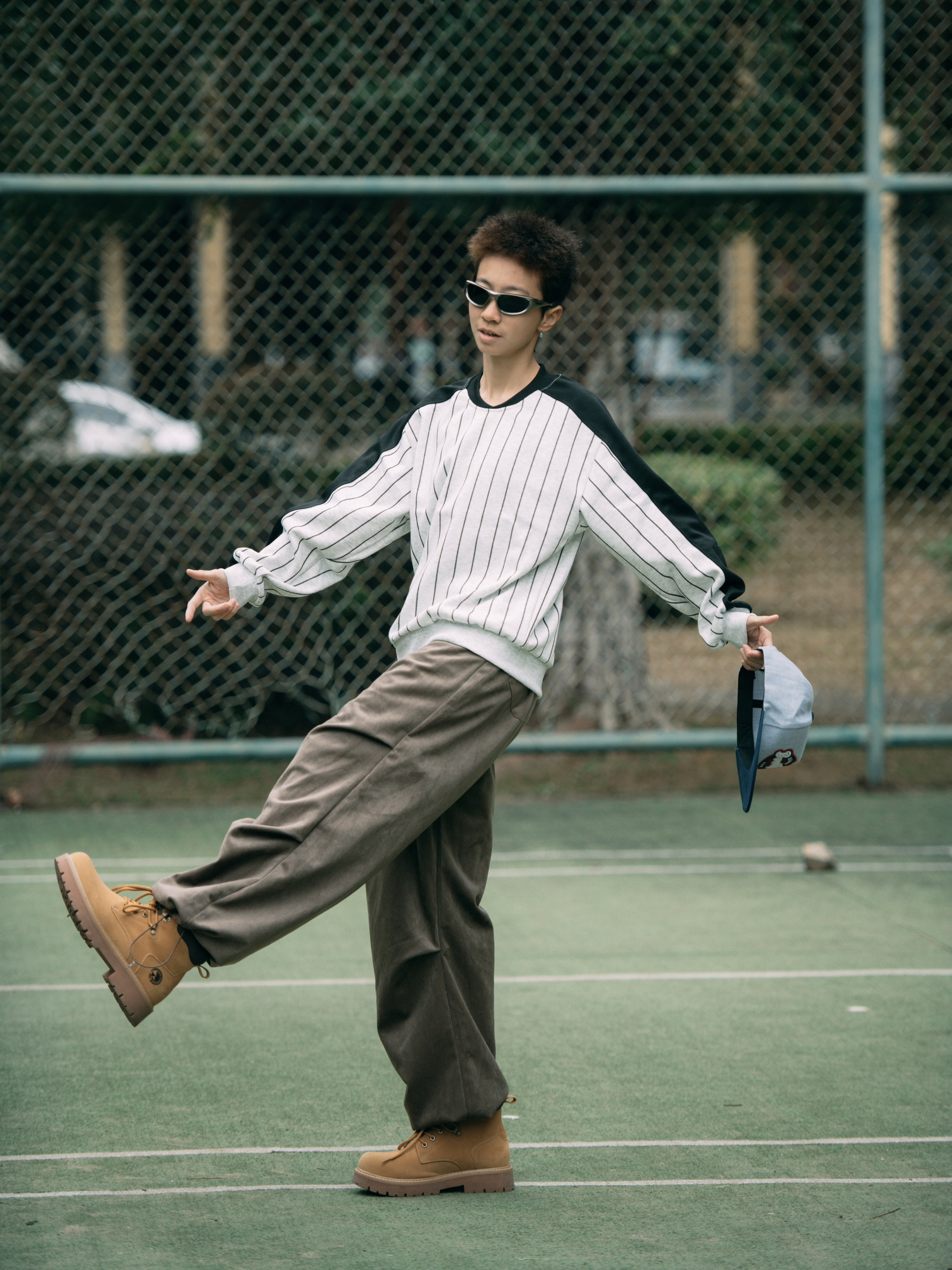 哈喽 欢迎来到哇哇哇穿搭分享频道! 172CM|55Kg|👔:M👖:m 今日份街头复古色系穿搭! 经典的条纹配色 休闲宽松版型 慵懒复古感满满 可单穿可叠穿 下半身搭配棕色系工装裤 怎么舒服怎么来 再搭配个大黄靴 街头感拿捏 gogogog