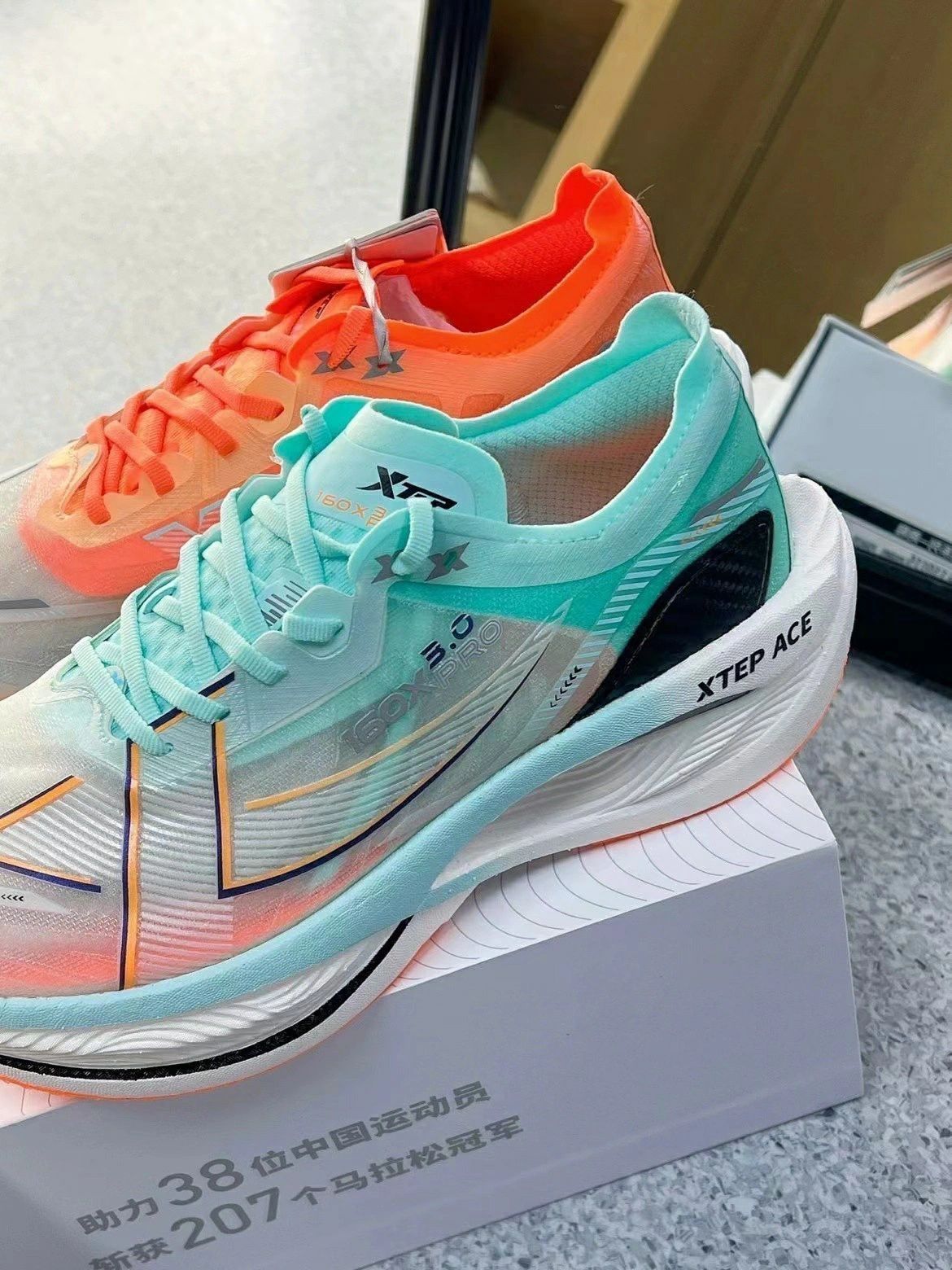 鞋面设计 采用韧性纱架鞋面搭配鞋舌冲孔设计,超轻透气网眼材料制成的鞋面,提供良好的包裹性和支撑性,能保证脚部干爽。 中底科技 搭载XTEP ACE缓震科技,运用PISA超临界发泡技术,回弹率高达85%,比普通ETPU材料高28%以上,重量较发丝轻15倍。搭配适合国人脚型的超跑级异构碳纤维板,较上一代160X 3.0提升约18-28%。 大底特点 采用马拉松级CPU大底,提升了耐...