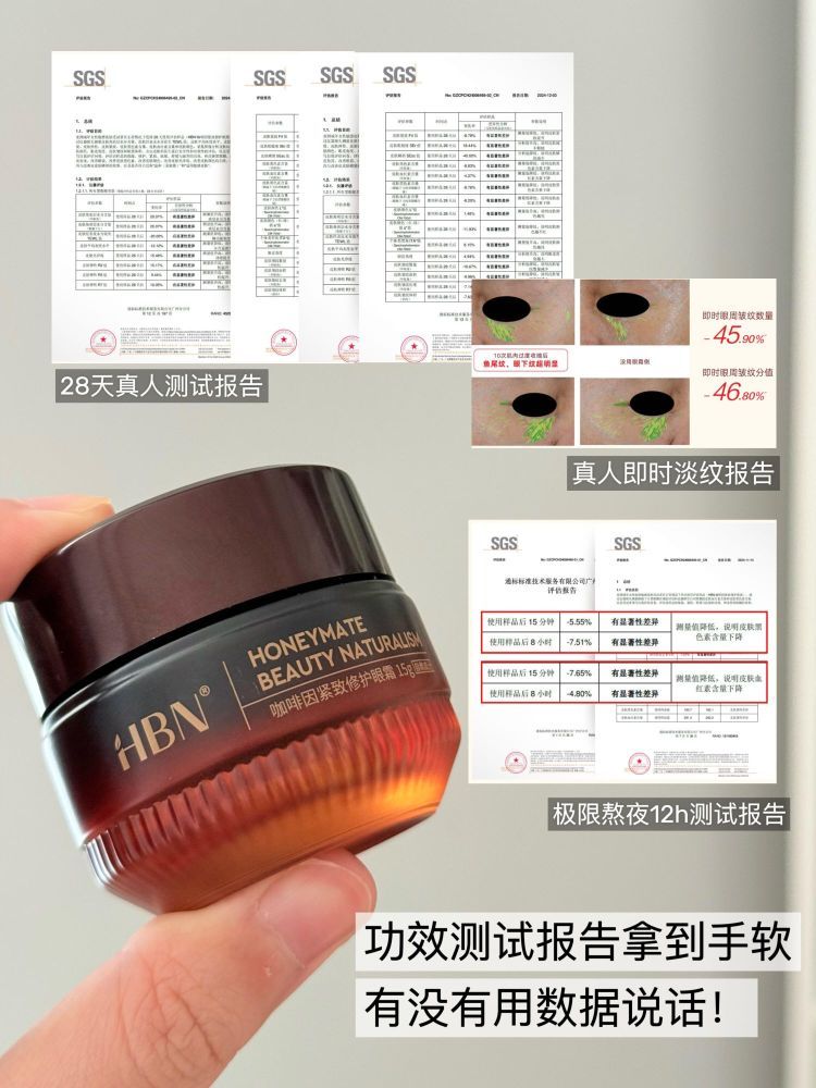 本篇笔记关联了HBN 小咖罐咖啡因紧致修护眼霜 亮眼周保湿补水提拉御氧淡细纹淡化黑眼圈 3.0紧致等商品,为用户提供真实的使用体验和购买参考。