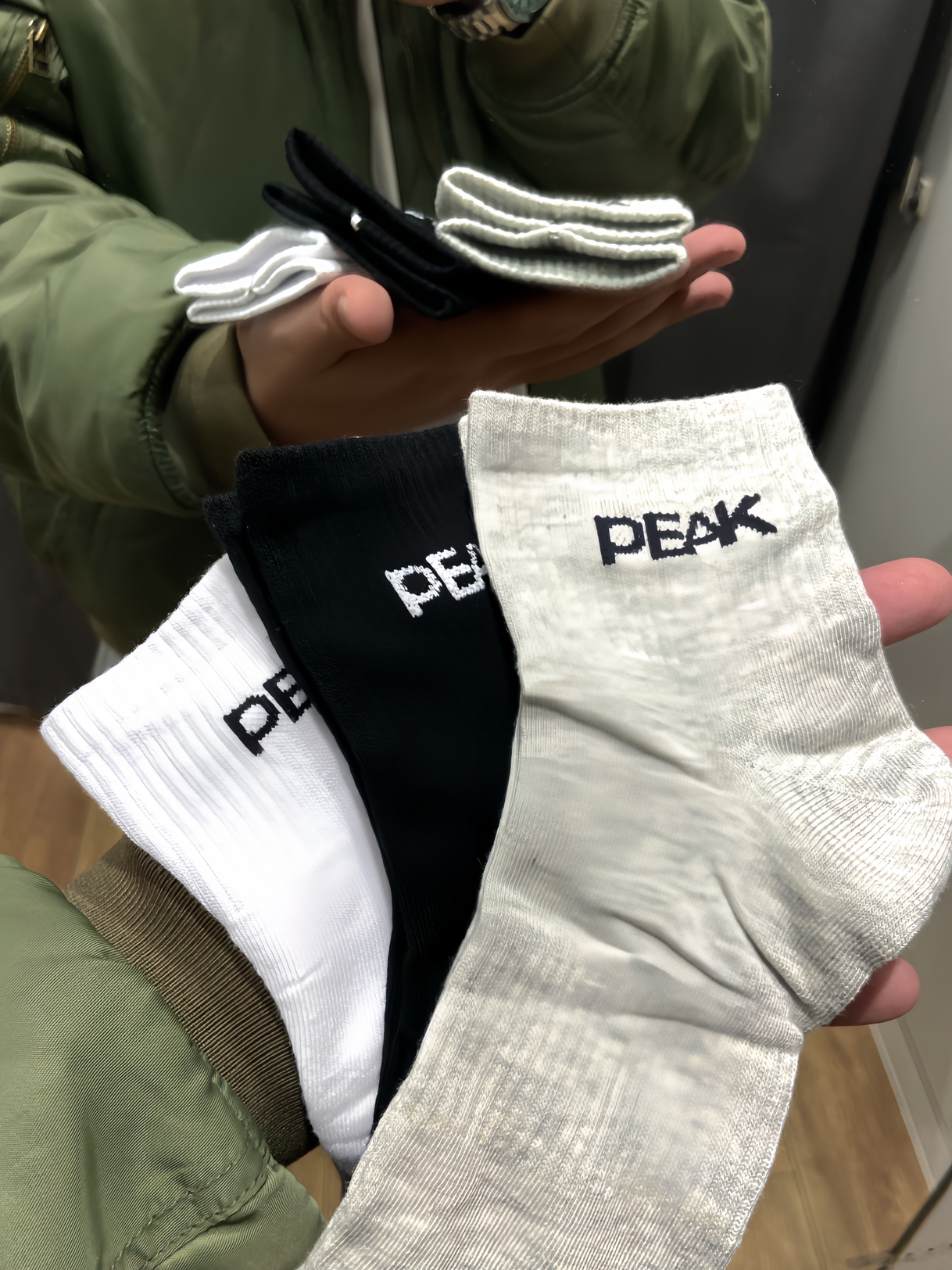 兄弟们今天给大家带来一 匹克 家的一款袜子整体袜子采用纯棉的材质! 袜子整体短筒设计上脚舒适包裹感适中! 真的非常舒适!没有磨脚感觉!跟没穿一样! 一套三色百搭耐磨! 兄弟们!你get到了嘛‼️