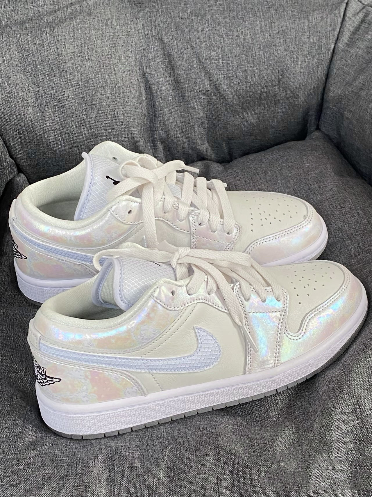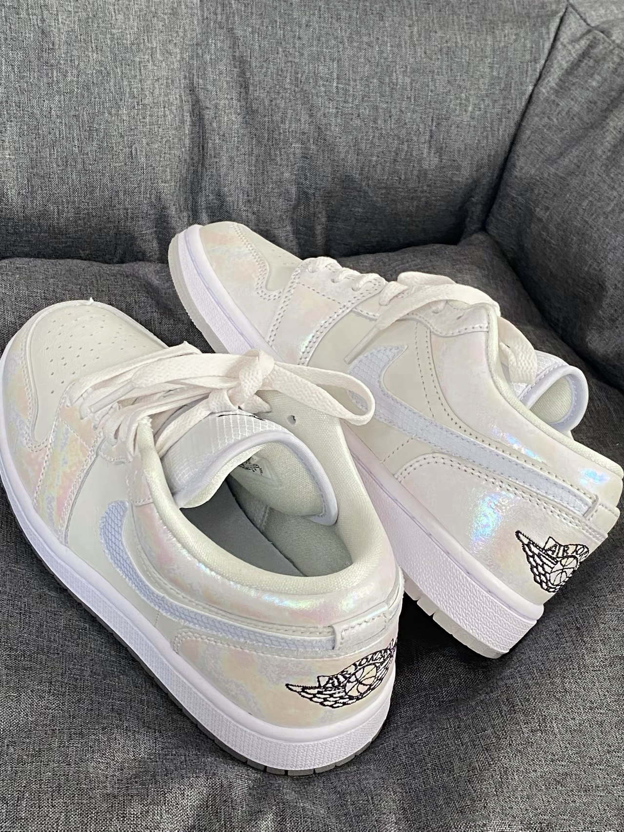 👀 哇哦~上脚那一刻,直接被它的美貌征服!这双白蛇AJ,简直是鞋柜里的C位担当!👑 🌈 炫彩鞋面太绝了!在不同的光线下,它仿佛会变身,折射出五彩斑斓的光芒,每次抬脚都是一场小型的视觉盛宴!✨ 💖 不得不说,Nike这次真的太懂女生心了!这双鞋的设计,不灵不灵的💃 👟 经典的AJ1鞋型,加上这独特的白蛇元素,简直就是长期主义者的最爱,非它莫属! 💡 重点是,现在它还没火起来!赶紧趁机入手😎