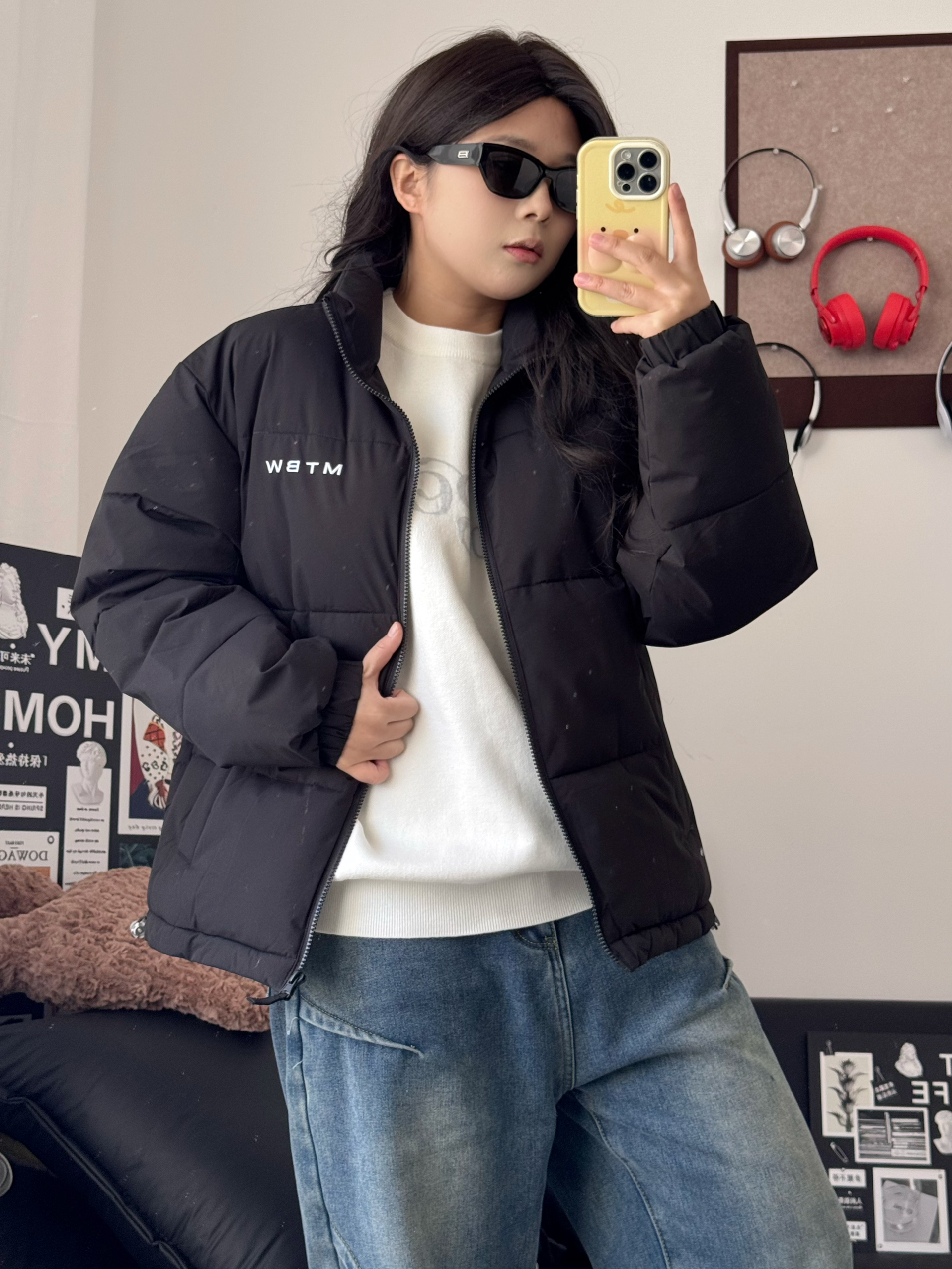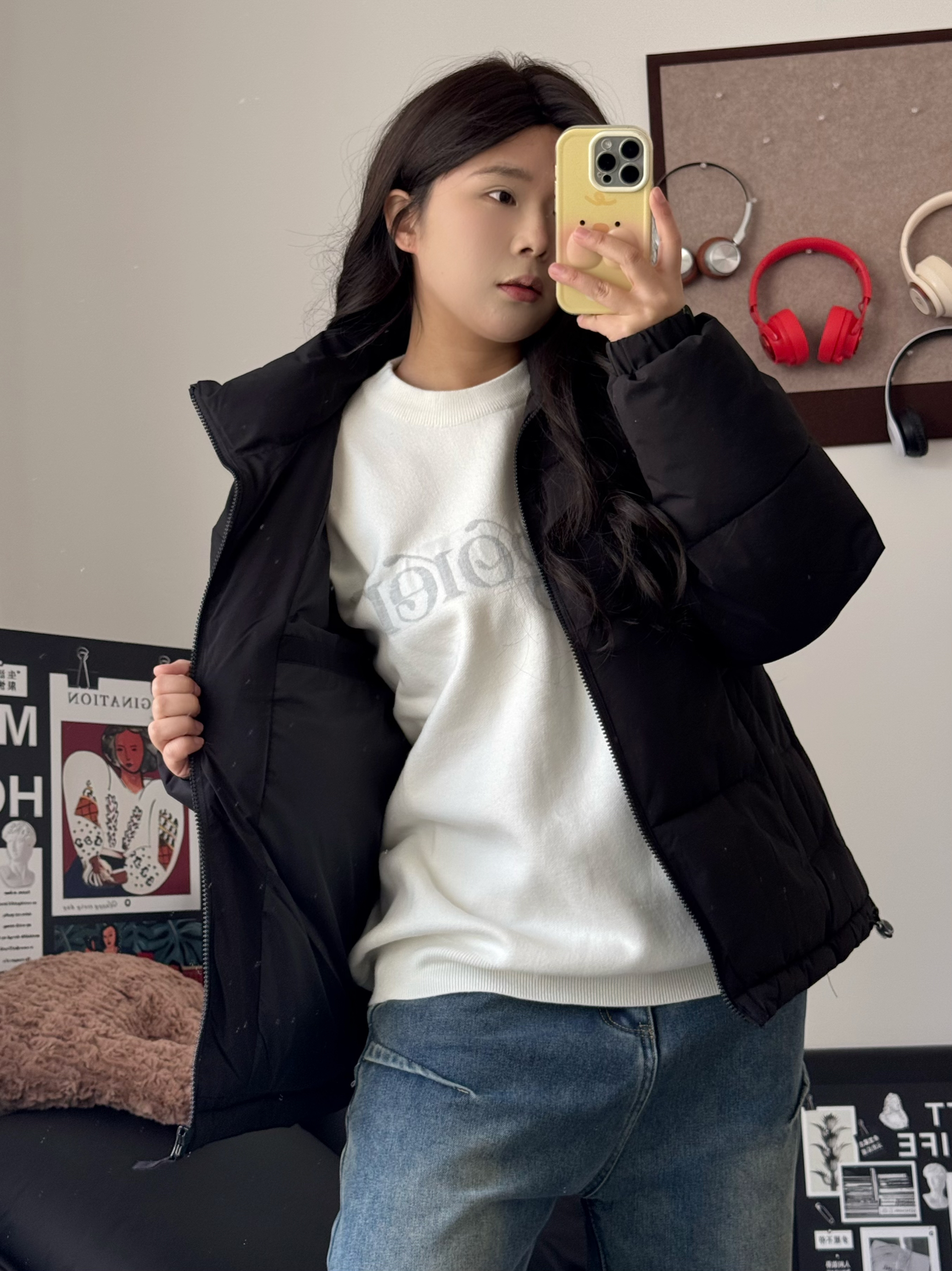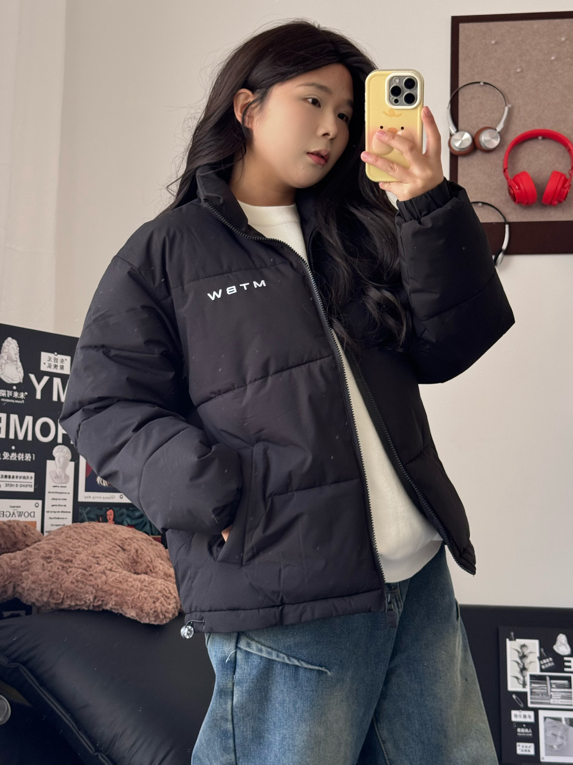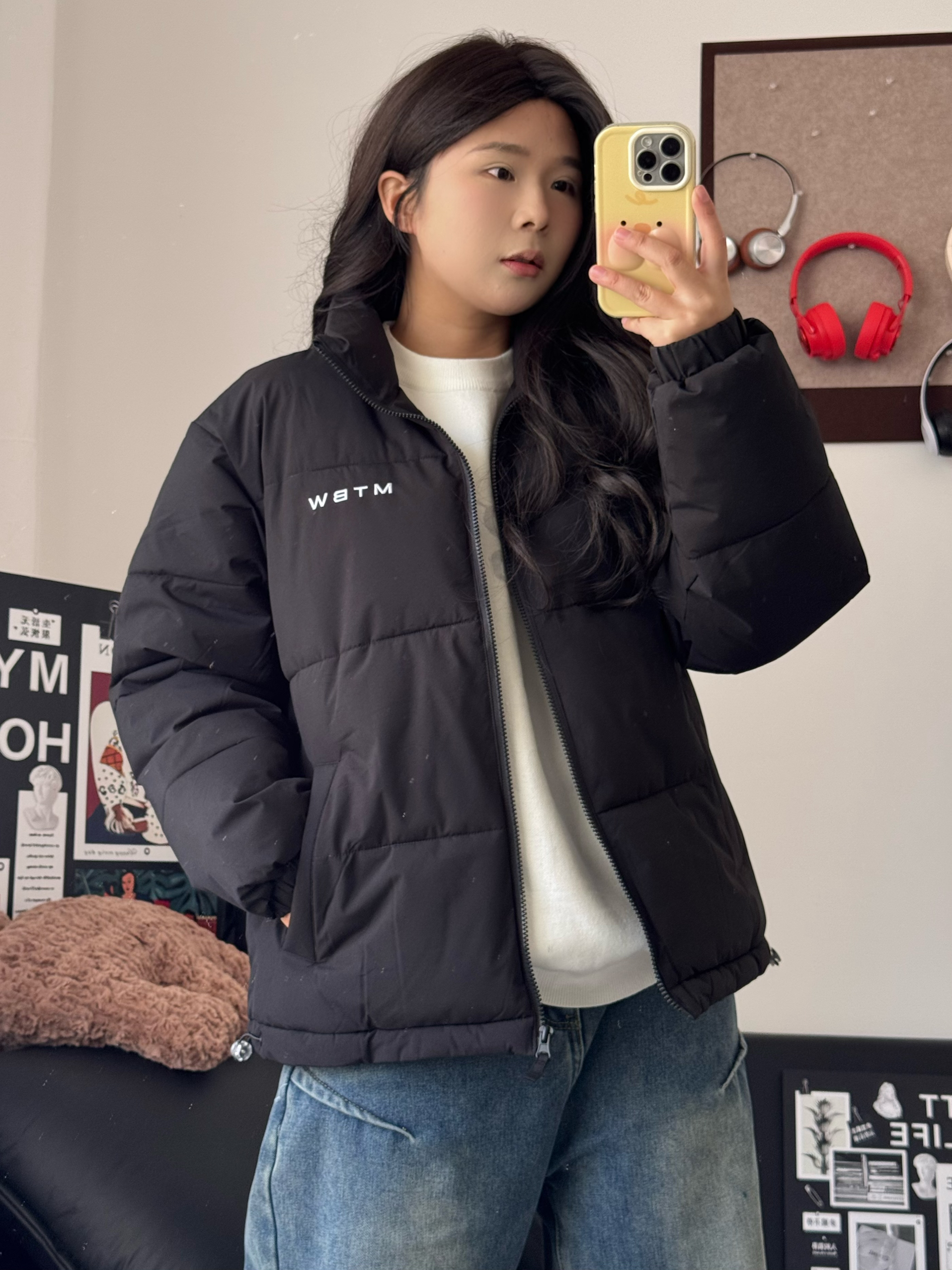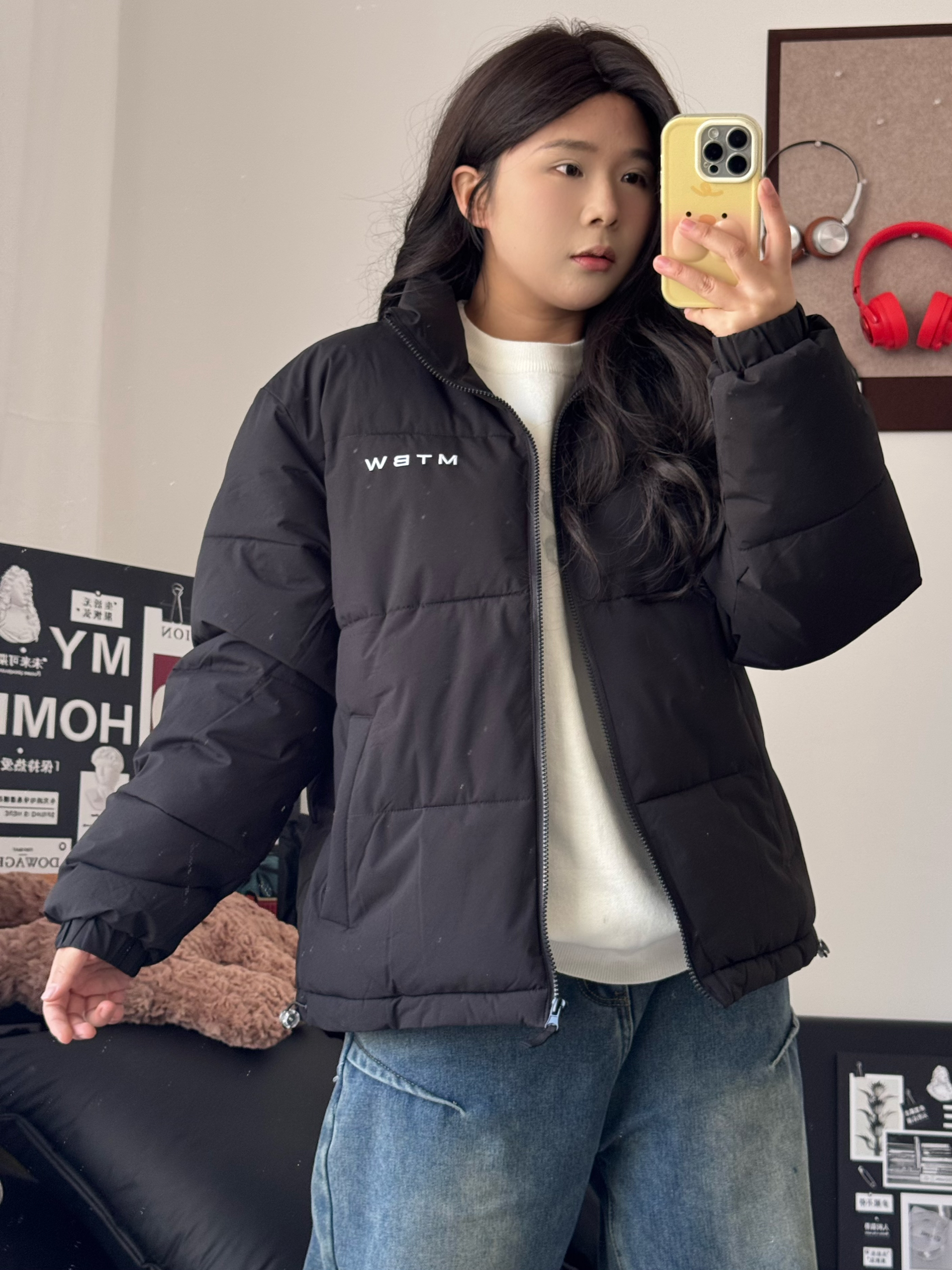 嗨喽 今天分享一件百搭的棉服 美特斯邦威 家的这件棉服 上身显瘦好看 简约的设计会更高级耐看 衣服填棉量很充足 保暖舒适 过年穿很合适! 身高162,体重120斤衣服上身L码合适