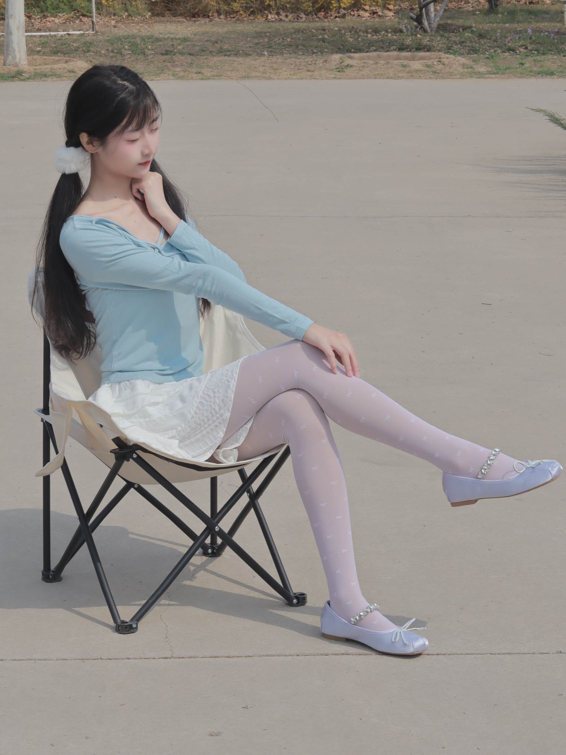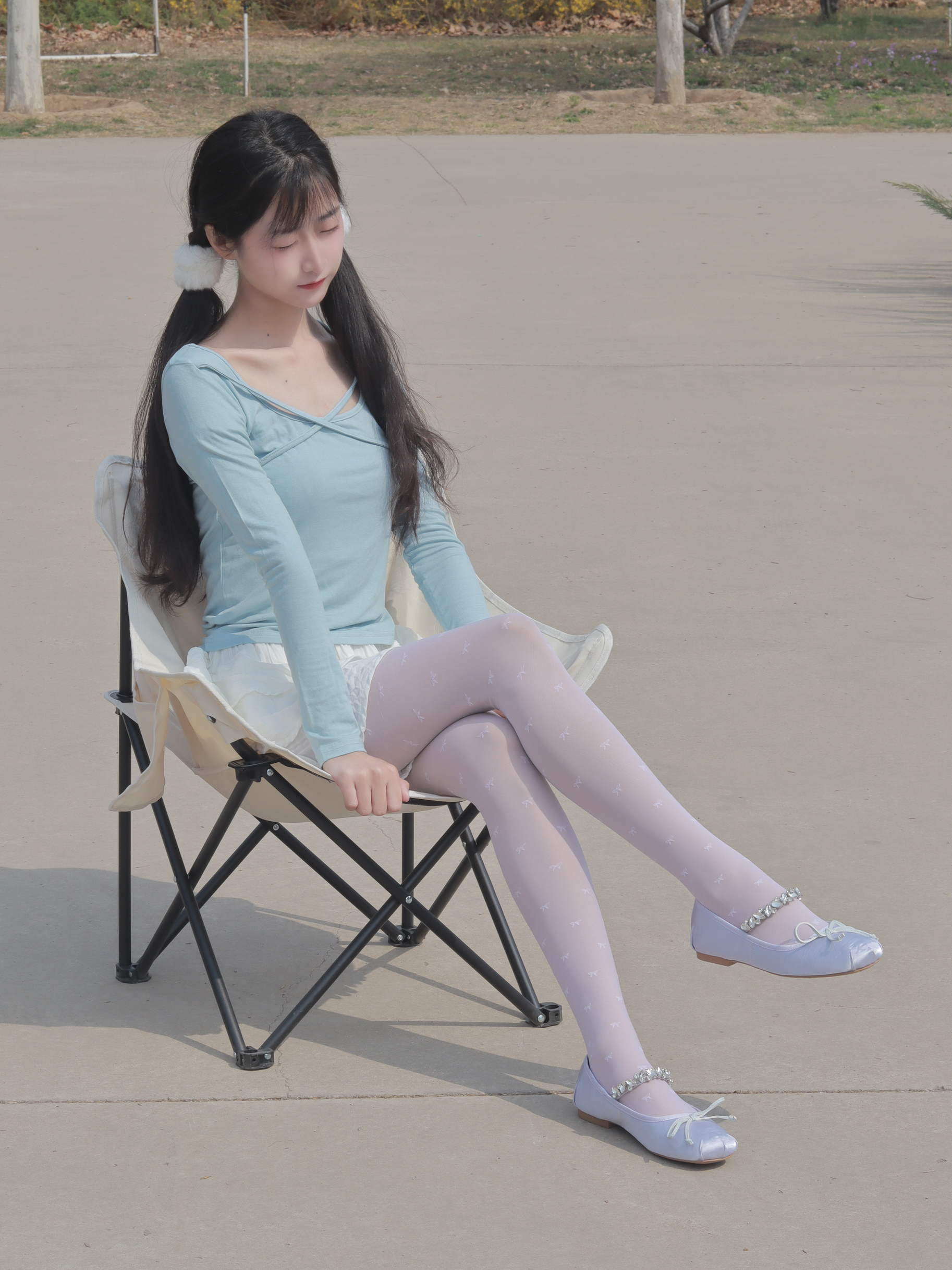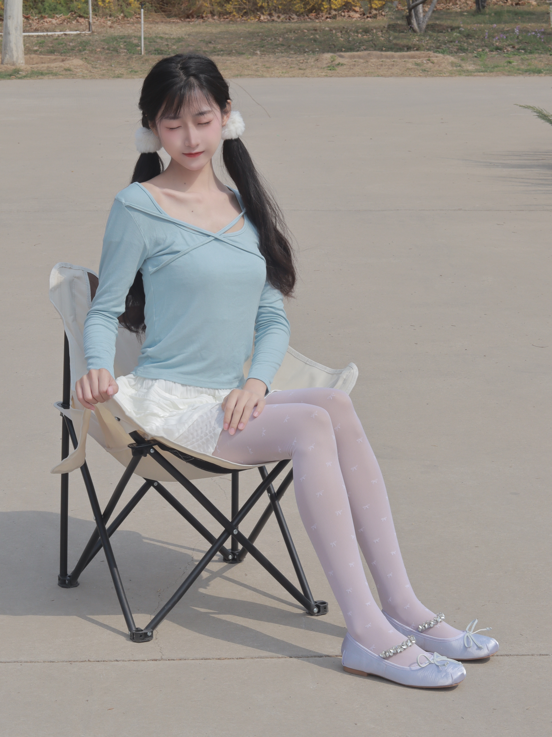 蓝色上衣👕俏皮活泼 搭配高腰蓬蓬裙和芭蕾风单鞋 简约又俏皮~