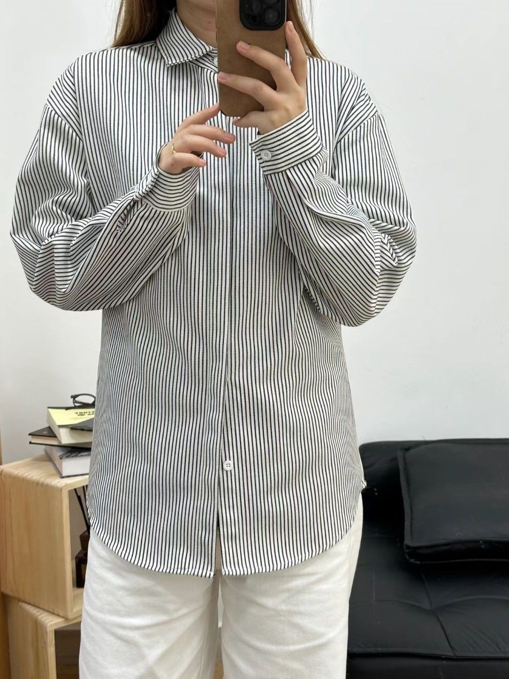 我为你精心挑选的这款衬衫真的物超所值!它不仅是这个秋冬季节的必备单品,这款衬衫无论搭配哪种外套都极具吸引力,展现了卓越的百搭性能。黑白条纹与蓝白条纹的设计,不仅时尚独特,更赋予了它无与伦比的魅力。穿上这件衬衫,不仅层次感十足,更彰显出独特的气质与品味。这些颜色都是百搭基础色,无论你的风格如何,它都能完美搭配,不会让你失望。这款衬衫真的是值得入手的绝佳选择!