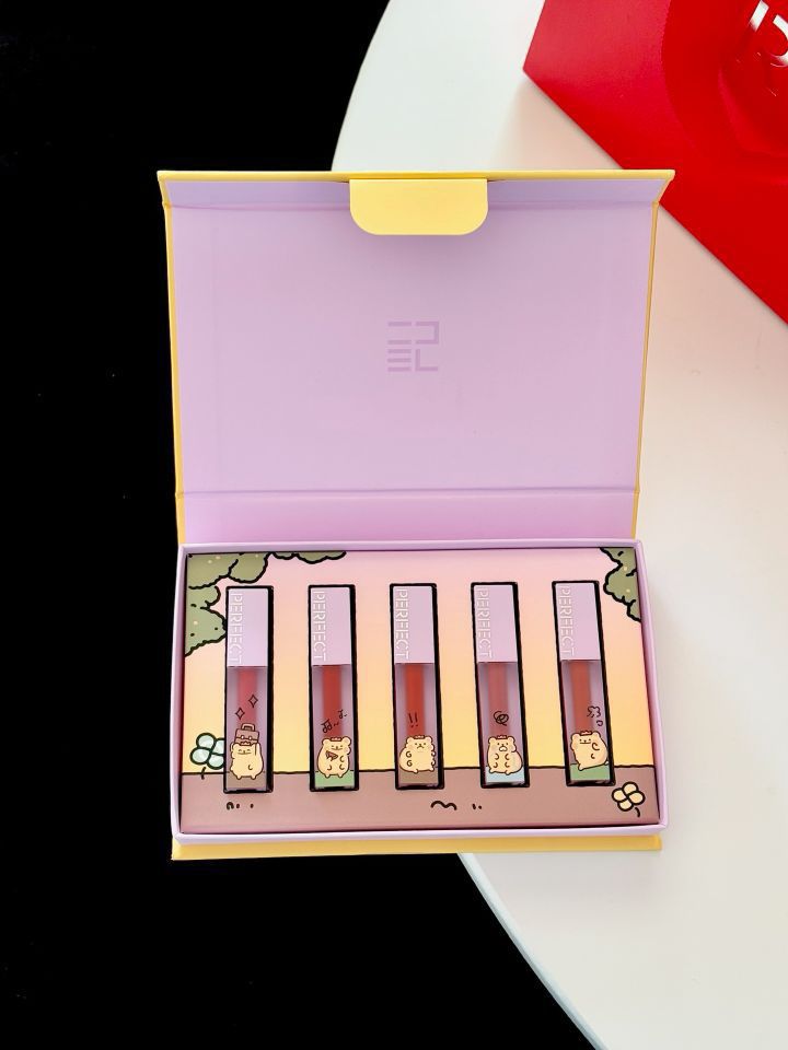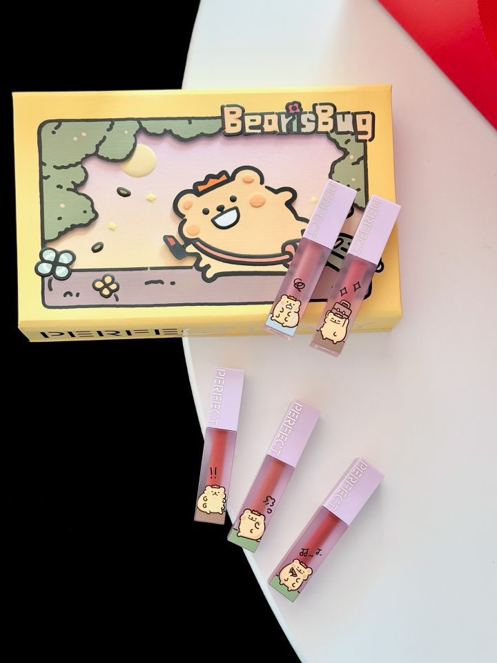 完美日记&小熊虫联名了! 哪个女孩子不心动啊~ 实用又可爱 礼盒包装上印有萌萌的小熊虫图案 里面有五支仿生mini唇釉 色号日常不踩雷 周一到周五不重样 上嘴涂起来丝滑不粘连 大红的礼品袋年味十足 过年送女孩子尊嘟hin合适!