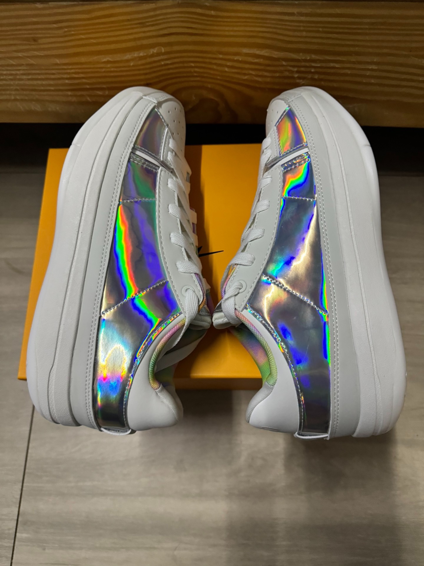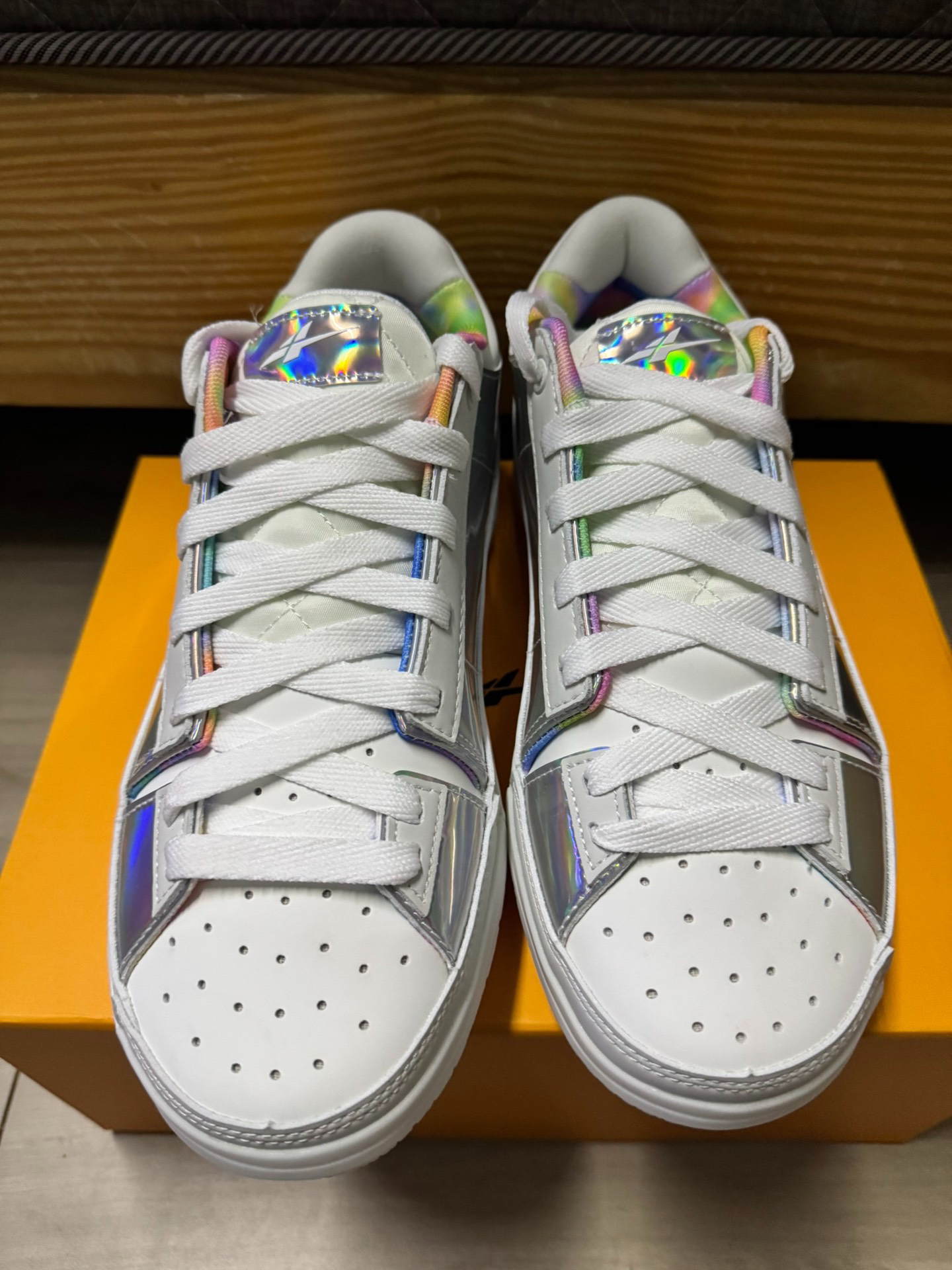 这样的spo easy1谁看了不迷糊啊! 这个最新的配色可以兼得潮流穿搭和篮球实战!不过也会有很多同学不喜欢这种偏向女生的配色。感觉这个配色在很多年前的精神小妹穿过!那么各位兄弟们,你们觉得这个镭射配色在篮球实战中你会入手吗?