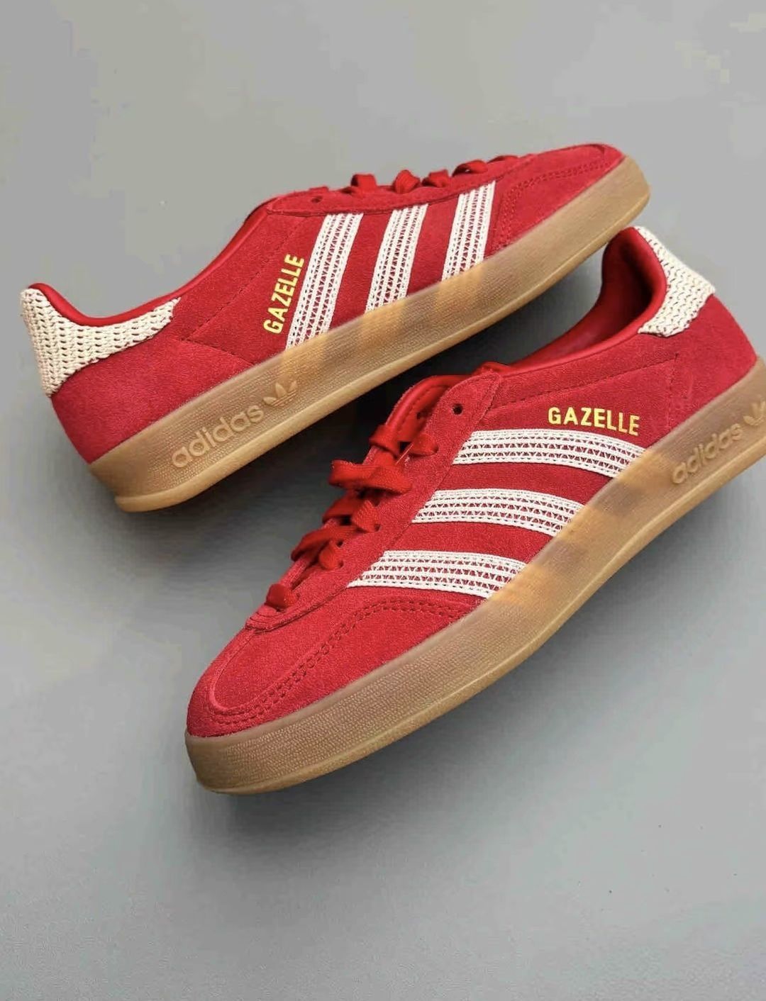 这款鞋子拿到手第一感觉是做工很扎实,橡胶大底,麂皮鞋面,蕾丝设计比较讨喜。颜色不是正红,偏番茄红色,不那么艳丽,但是比较耐看。配起衣服来也比较百搭。买的36码,但是老婆反馈有点紧,有需要的宝子建议可以加半码购入...但是,感觉左右脚两个鞋舌有点不一样长,一看是越南产的也就不奇怪了(买其他品牌的鞋子时也遇到过)…