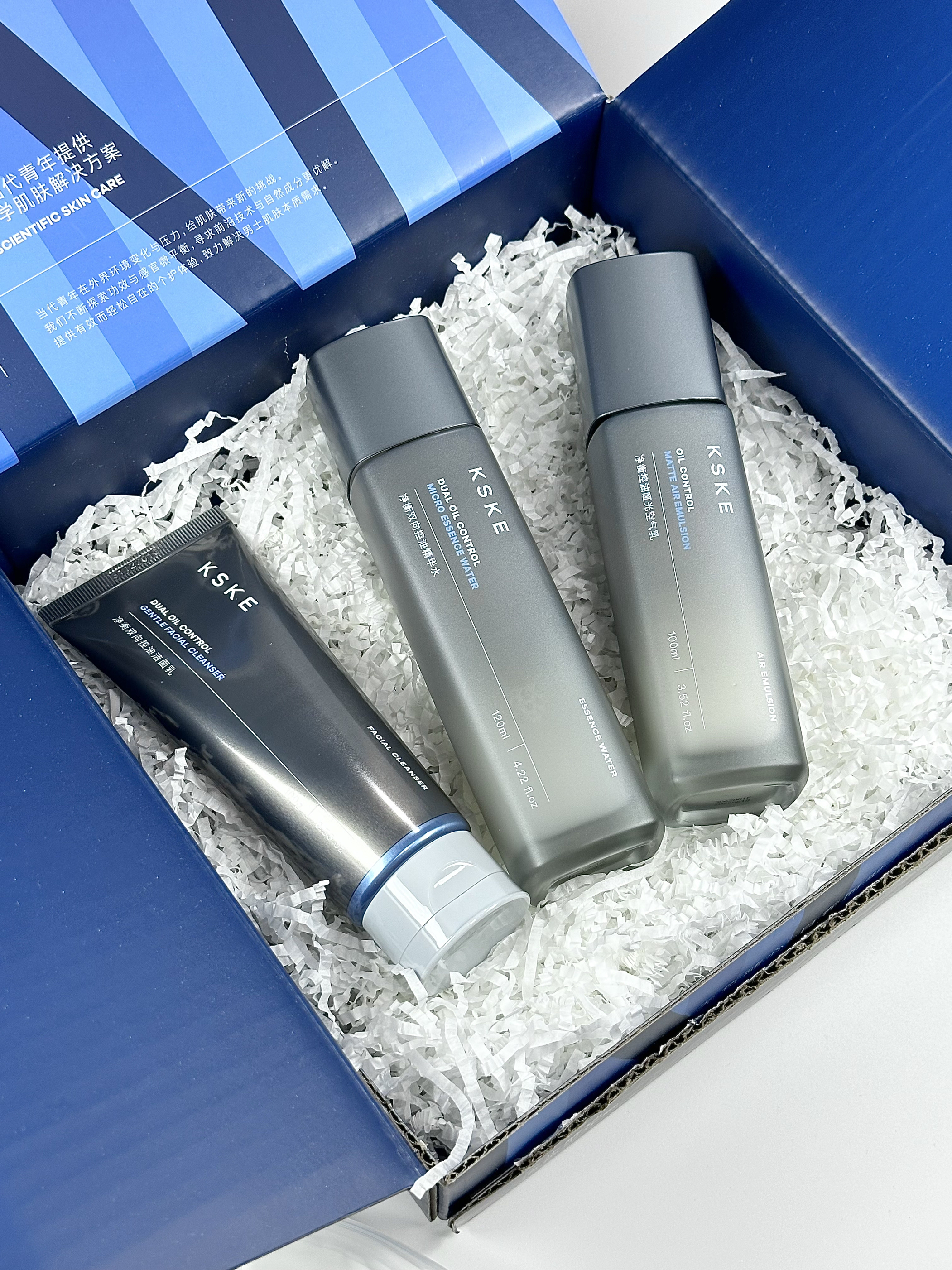 我经常熬夜 皮肤老是出油爆痘 脸也真的看不下去了 颜值都下降啦 入手了这套KSKE这套男士护肤礼盒 洁面➕微晶水➕空气乳 水乳质地很清爽 上脸不油腻 很好吸收 洁面上脸温和不刺激 泡沫丰富绵密 我坚持用了一段时间皮肤真的好了不少呢 身边好多朋友都说赶紧我变帅了嘻嘻 而且这一套100多 真是我年度爱用的护肤品