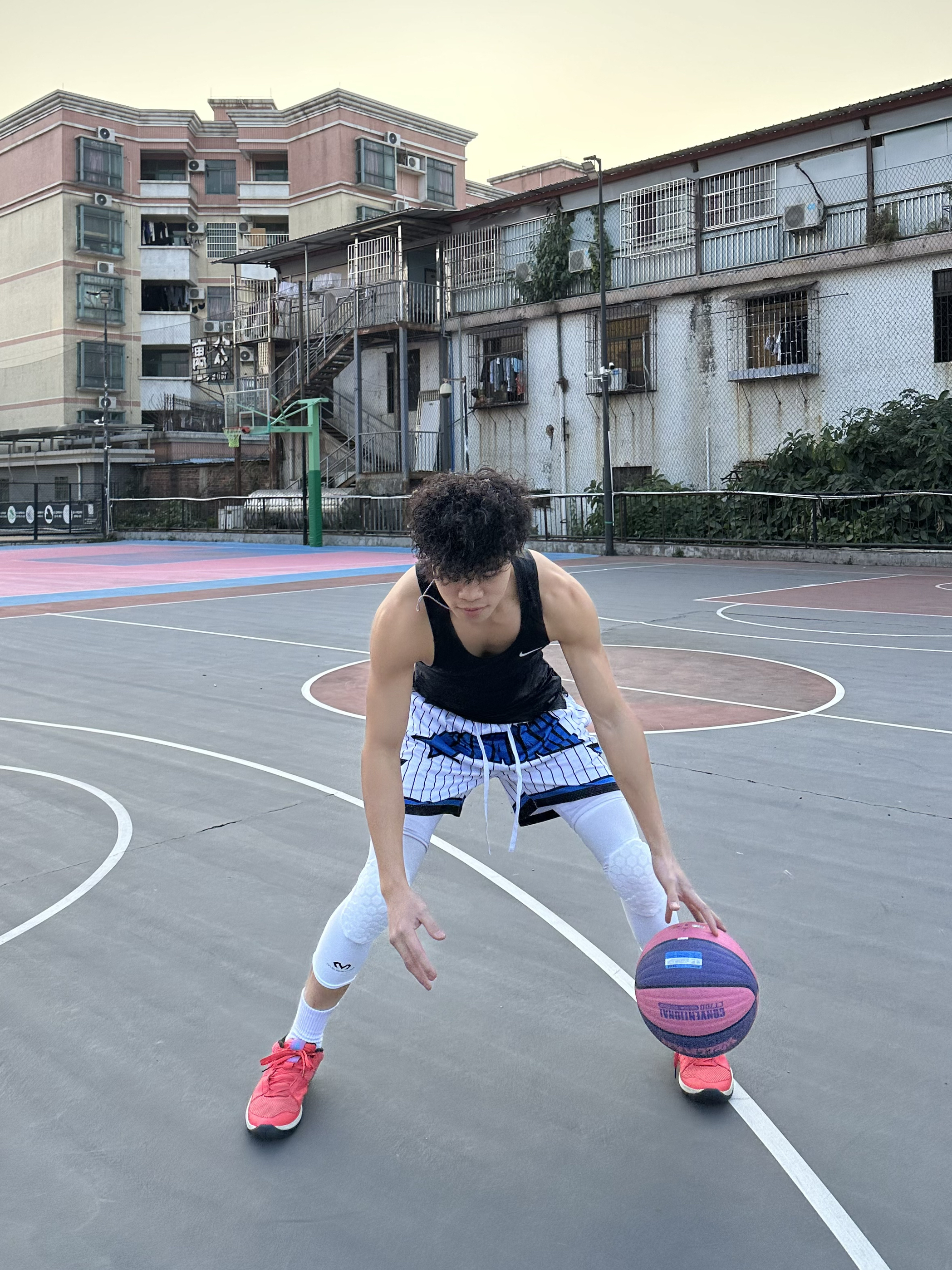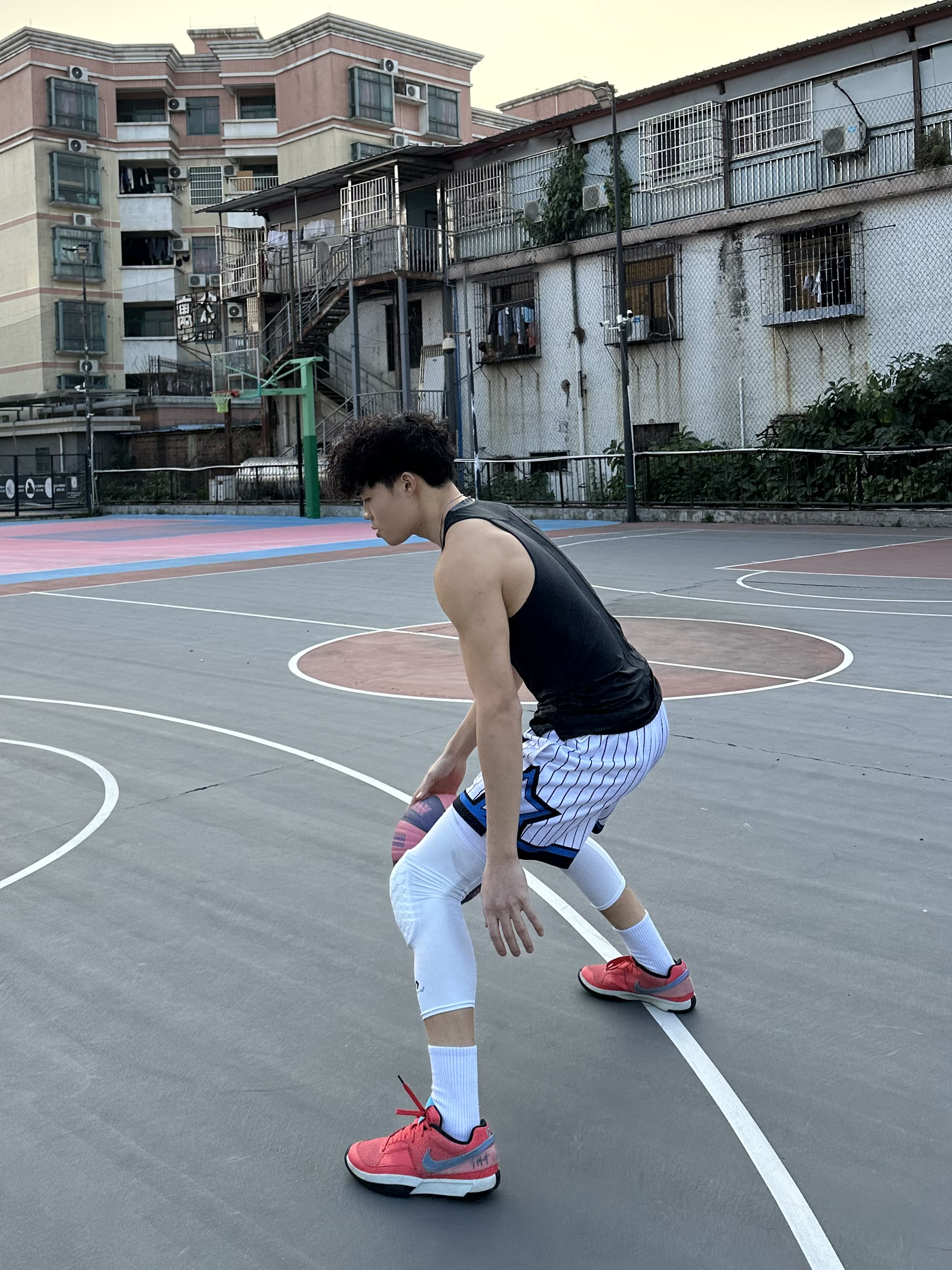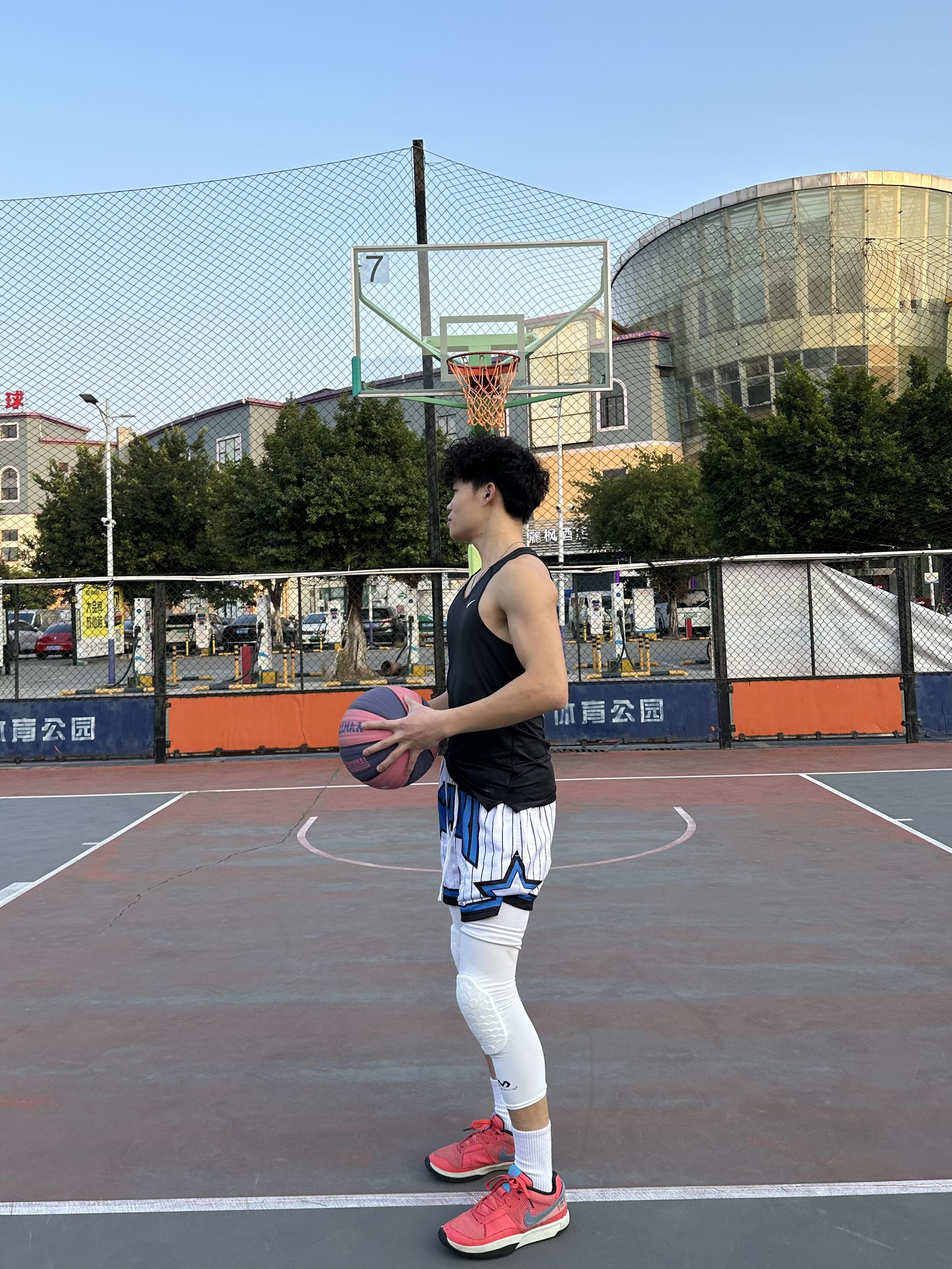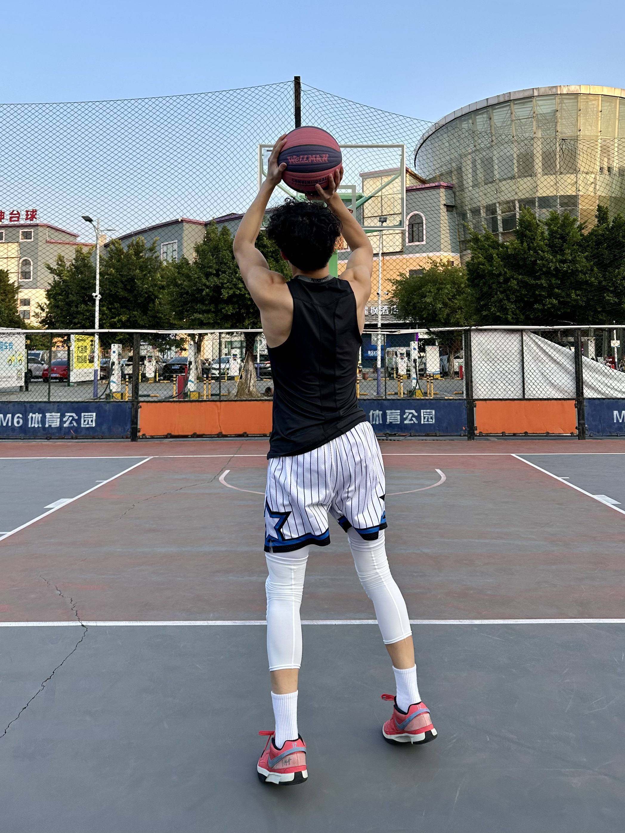 简单介绍今日篮球look - 上身黑色紧身背心🎽 搭配一条美式篮球短裤🩳 鞋子选择红色篮球鞋👟 过年就要穿红色系😎 再带个护膝 新年打球也要保护好自己哟💪