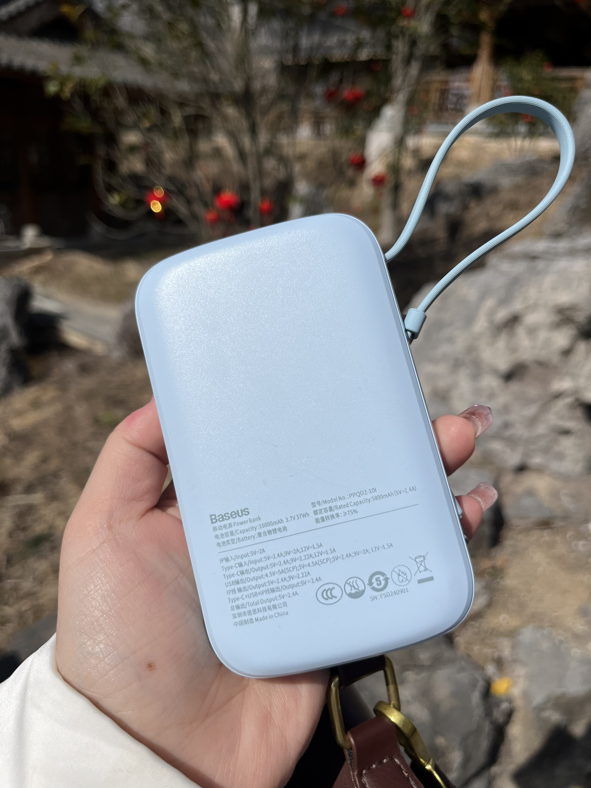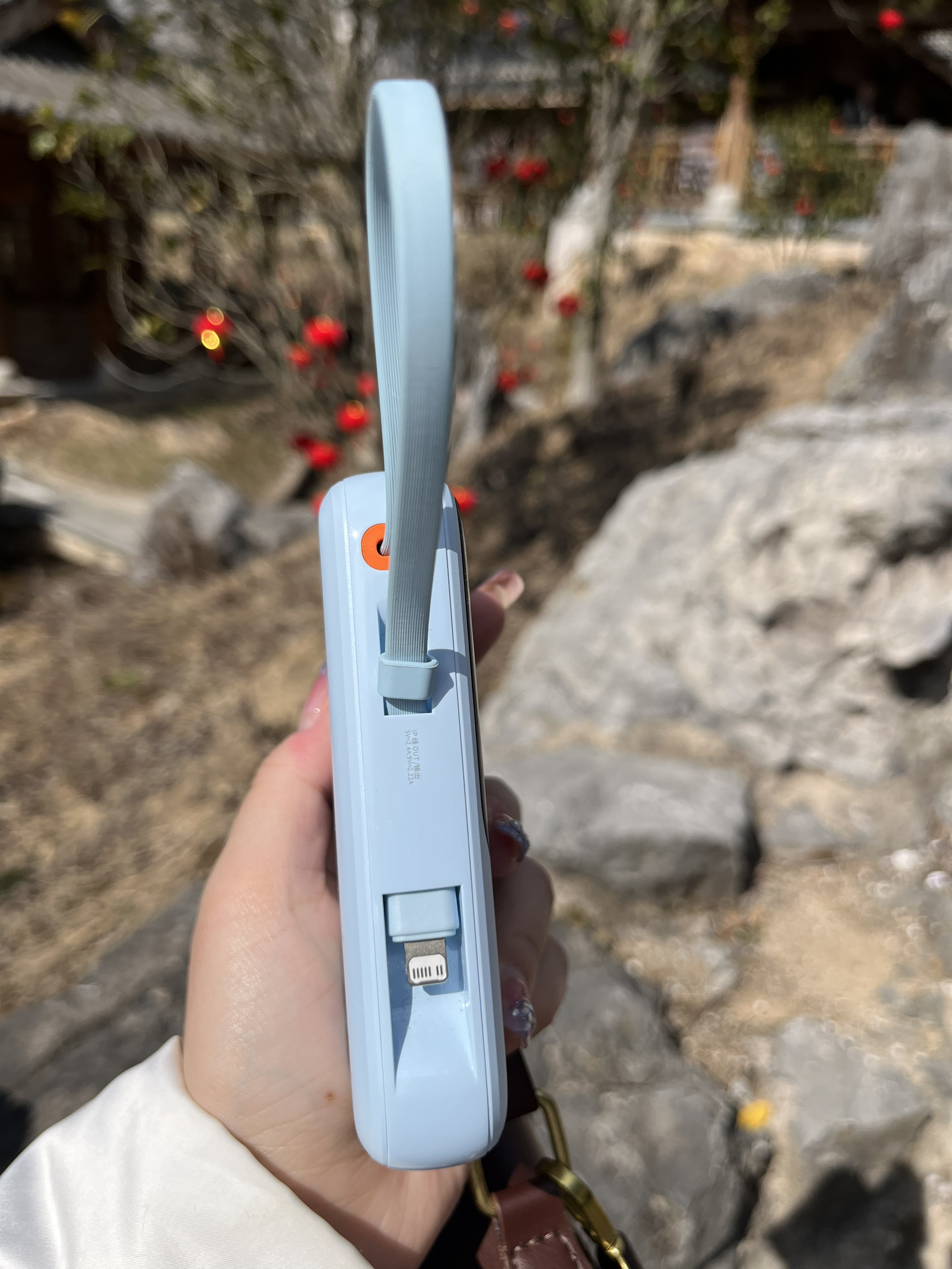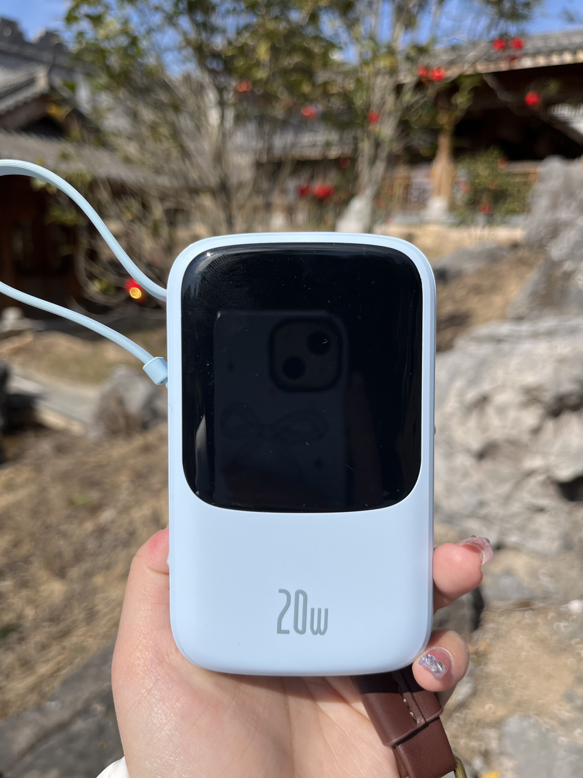 谁懂这么小小的一个充电宝 充电的时候可以勾在手指上特别方便✨ 充电速度很快💥 充满一次电可以充好几次手机💥 正面会有显示还剩余多少电量🔋 真的很哇塞🌷