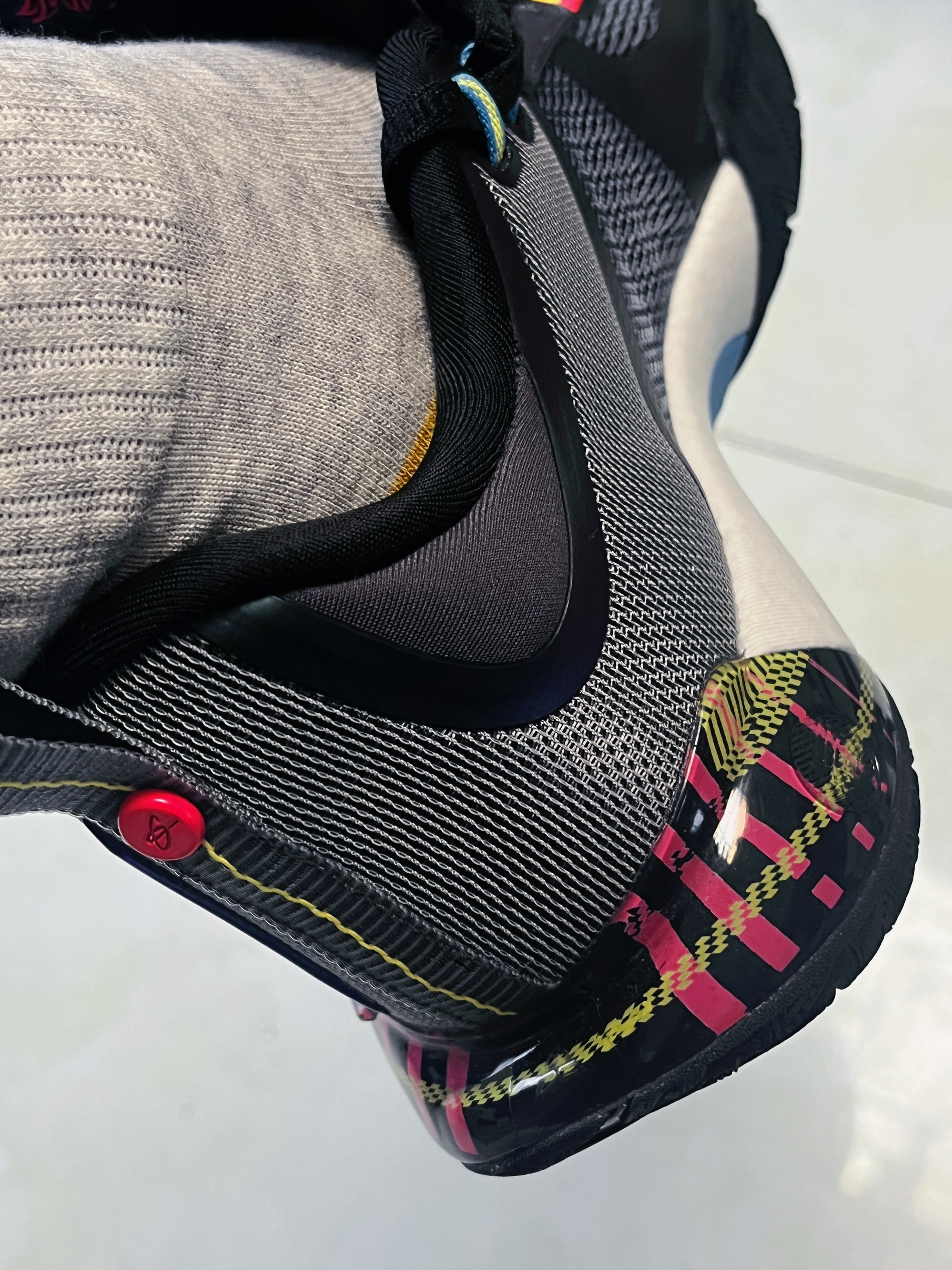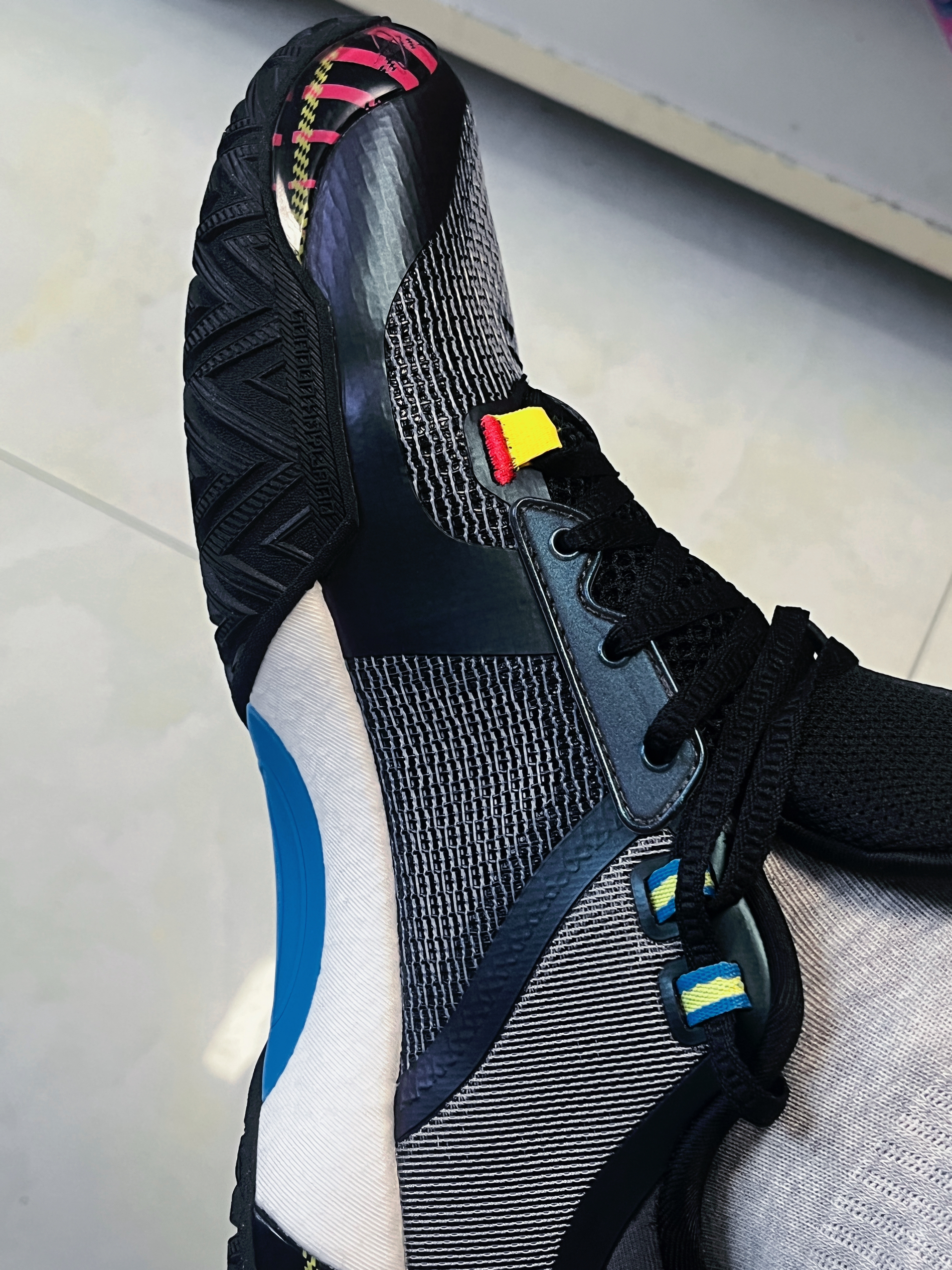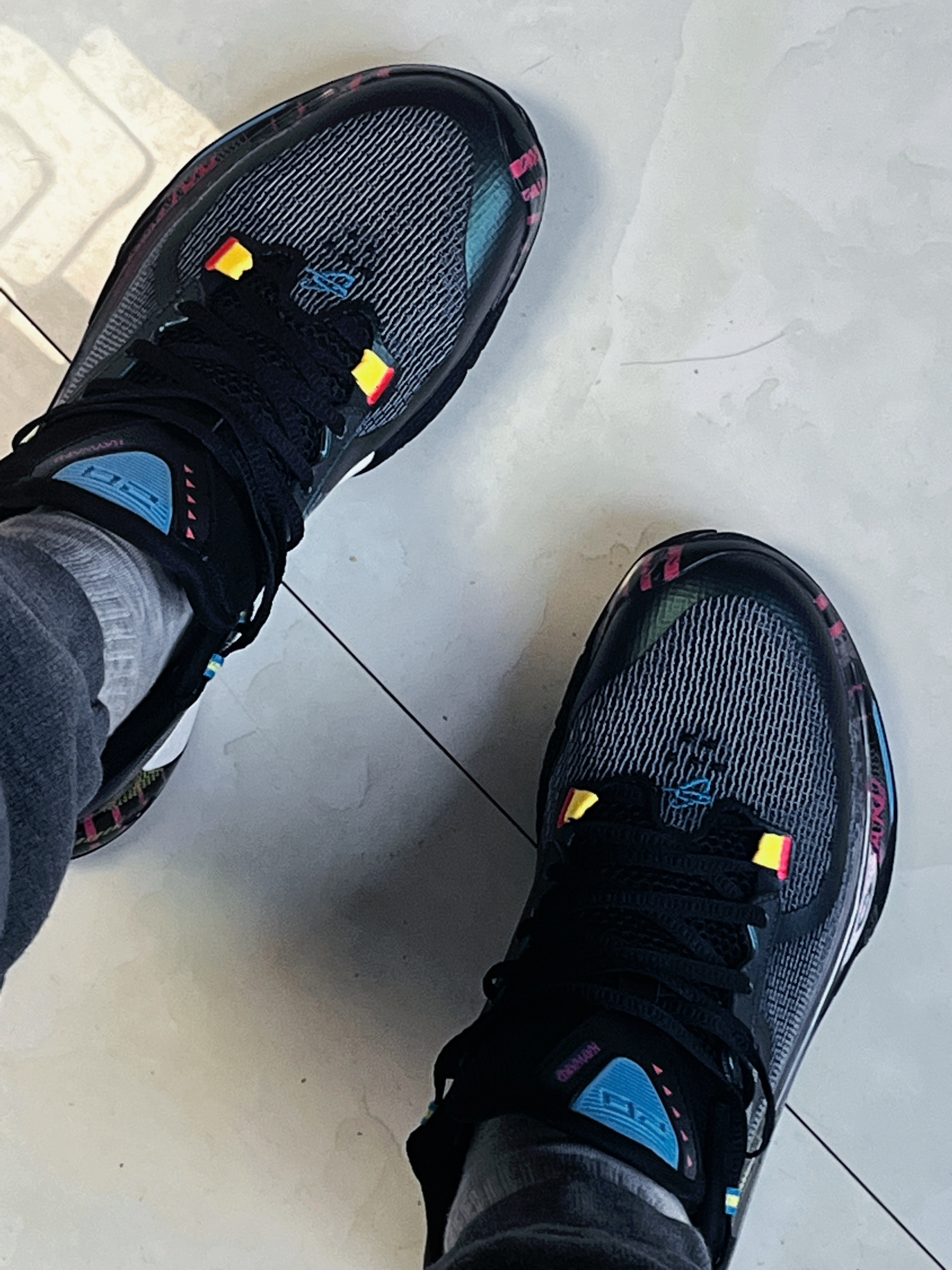 要颜值有颜值,要配置有配置,颜值与性能并存,鞋子颜值中规中矩,比较有速度感,刚上脚有些许的硬,或许我体重较小,要多踩之后回弹就很澎湃了,用力踩下去有很好的反馈,全包侧翻不会轻易崴脚,整体包裹性很好,不掉跟,不破不立国产好鞋,没扣吧!说实话没啥感觉,可能体重比较轻感觉不到,国产鞋在这个价位里性能比较好的它算一个。