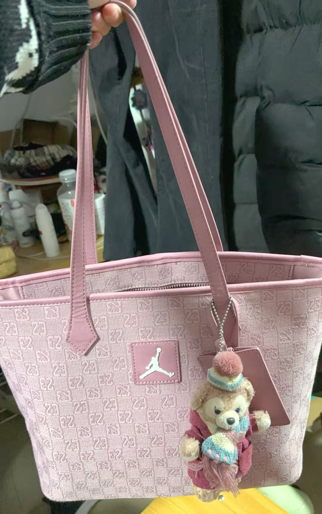 Jordan托特包 粉色 适合女生出去玩耍或是逛街都一款包包 芭比粉色显得那么的可爱俏皮 最中间的jordan标志成为点睛之笔 使她的颜值更高 外观设计大气简约 而且容量大,可以装不少东西 真是一款拍照利器 #送ta新年第一份礼物 #粉色系列包包分享 #女朋友终于夸我会送礼物 #来拍照了