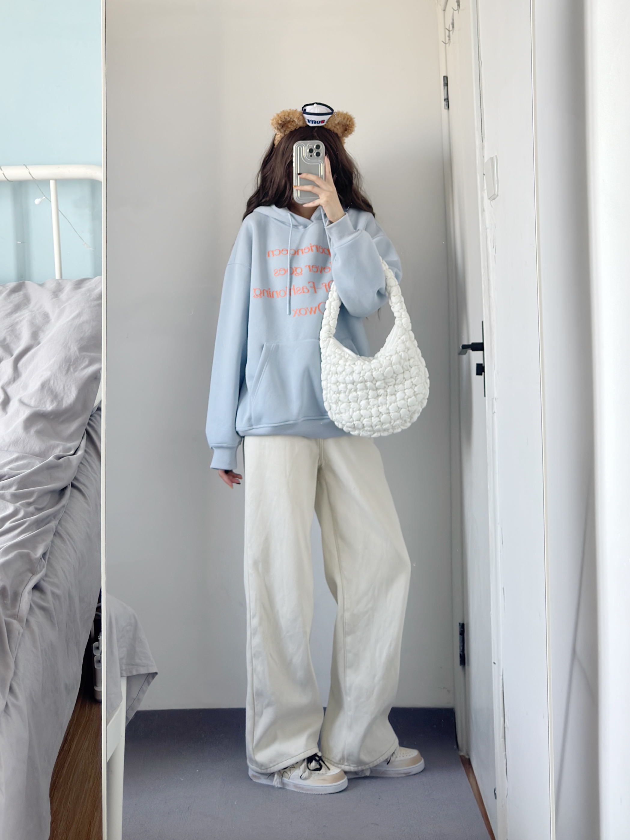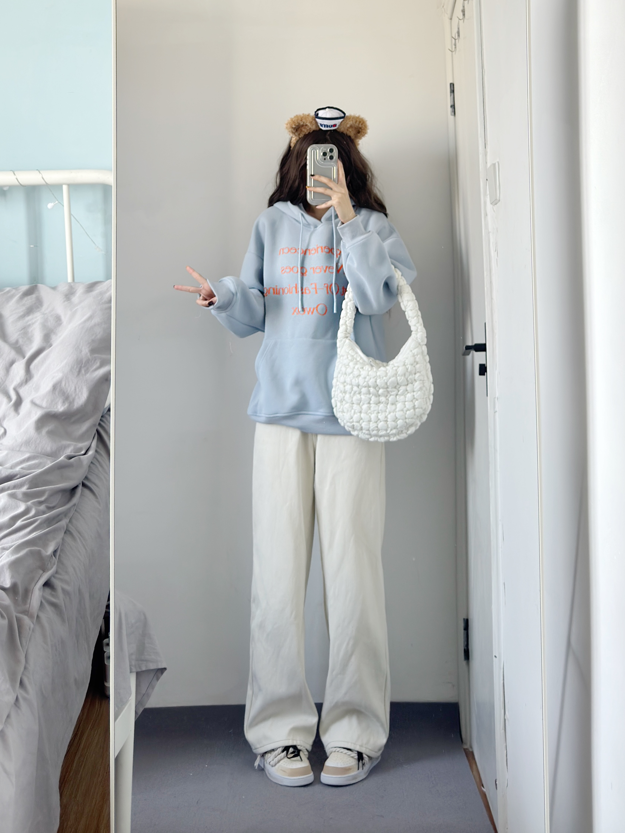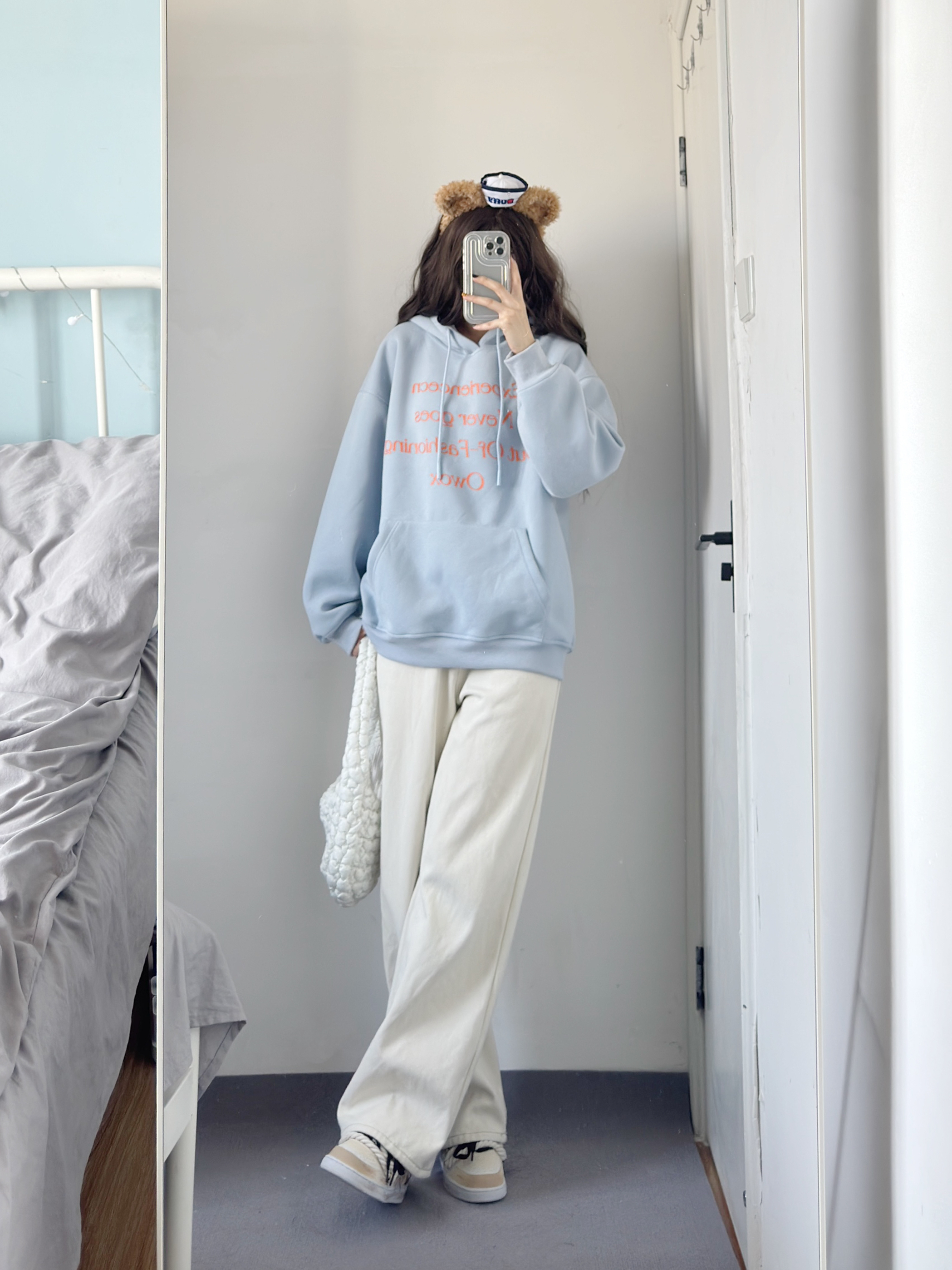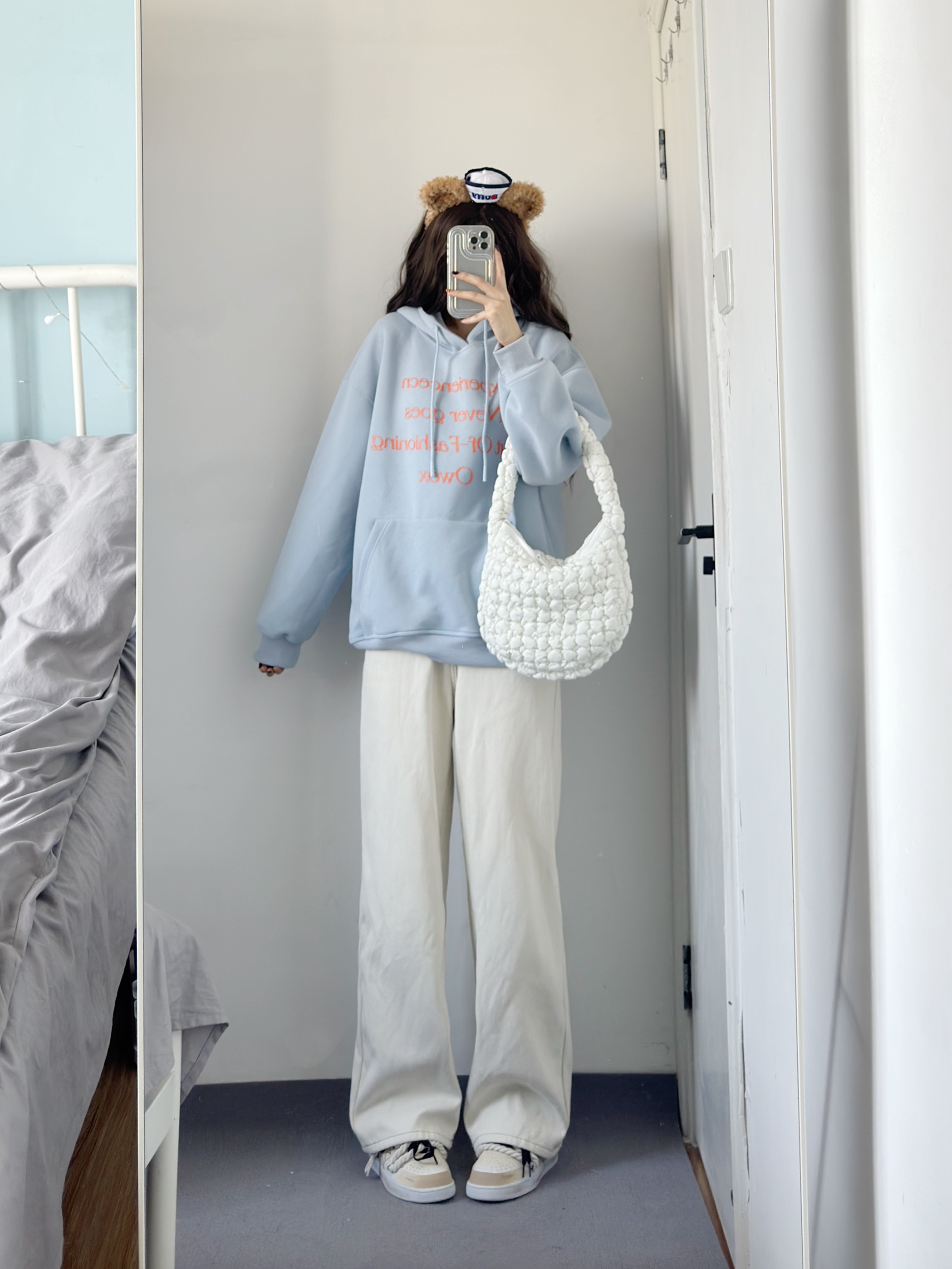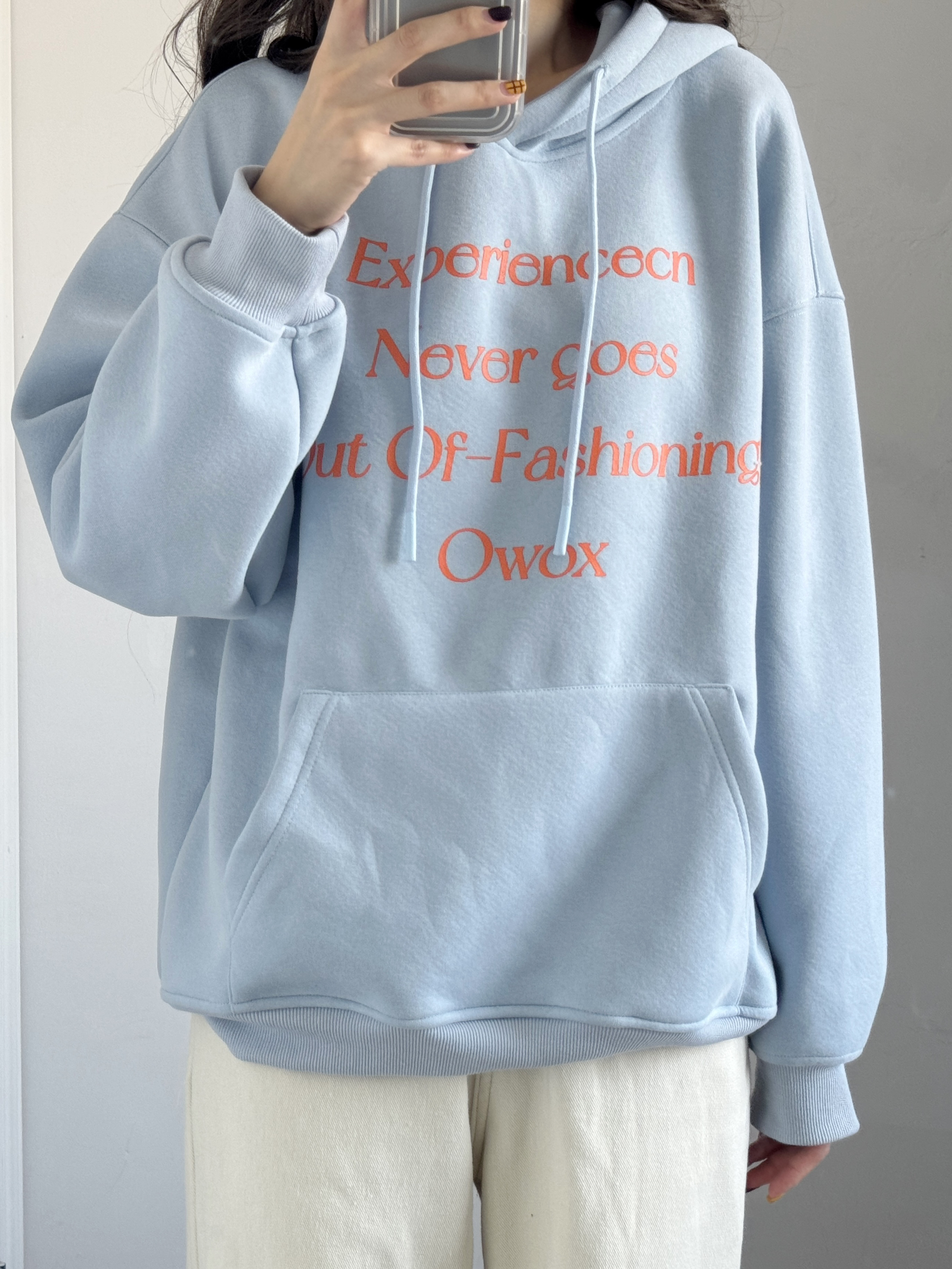 baby蓝卫衣也太乖太嫩了吧! 粉蓝撞色好特别呀 不挑人~ 搭配白色牛仔裤绝了!!!!
