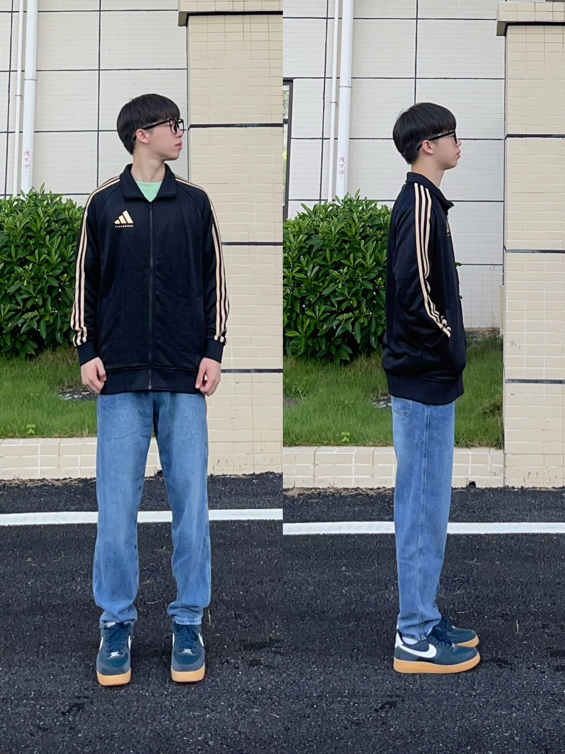 ✨上身:暗绿色阿迪达斯复古立领外套 ✨下身:白色美式复古宽松脏脏裤➕板鞋 ✨有一说一我平常是对绿色的衣服不太感冒的,但是这件暗绿色上身效果有超出我的预期!这个暗绿色真的不错!穿着挺舒服,版型可以,侧边袖子上是经典的三道杠,左侧上边有个大一点的三叶草刺绣,背面中规中矩,立领的设计拉起来很帅!我觉得也还挺好搭配衣服的,我搭的白色宽松脏脏裤感觉是ok的! ✨身高175 体重56...