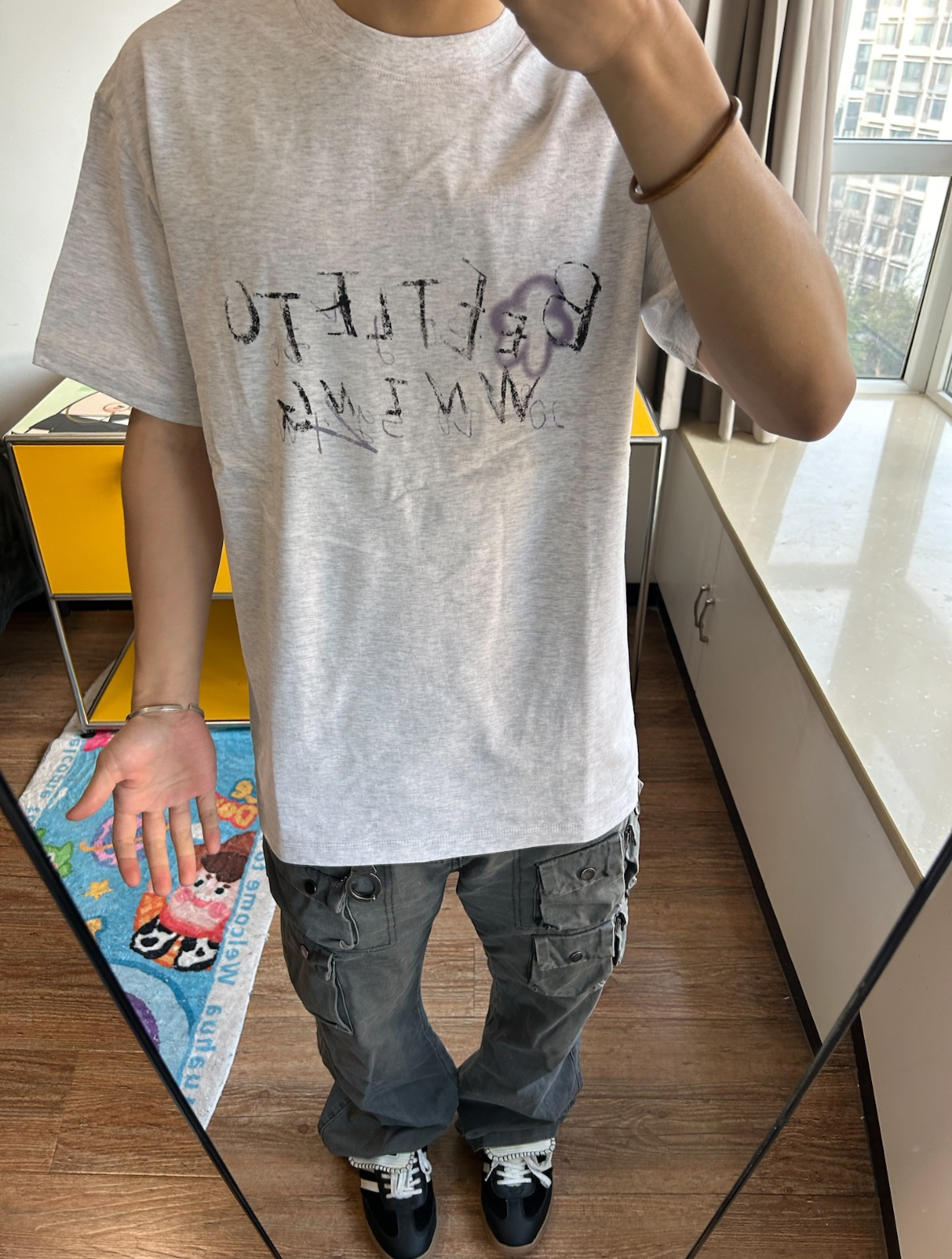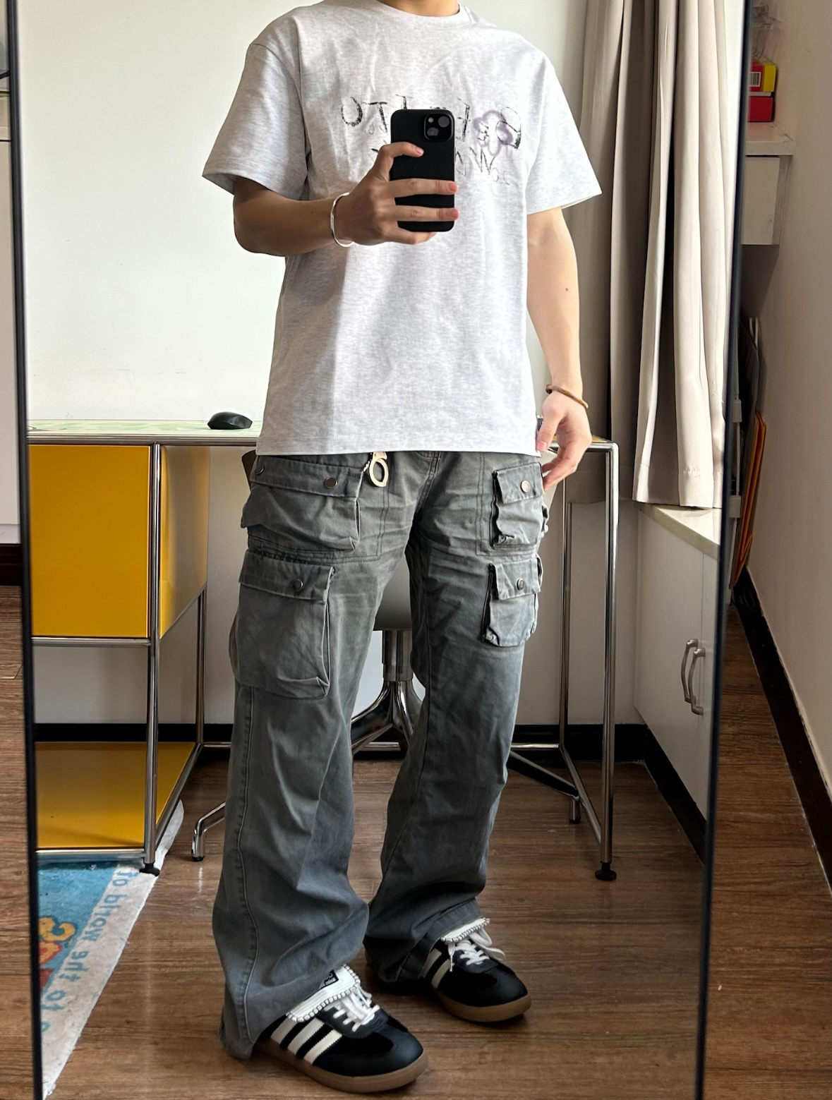 今日分享 👔选择BEETLE TOWN涂鸦手绘T恤版型微宽松,上身显瘦的 涂鸦印花挺有个性,是我的菜 175/65穿的M (合适) 👖选择多口袋 工装裤 水洗灰的做旧效果挺酷 男女皆可驾驭 👟选择adidas originals samba wb薄底德训鞋我的通勤好搭子时