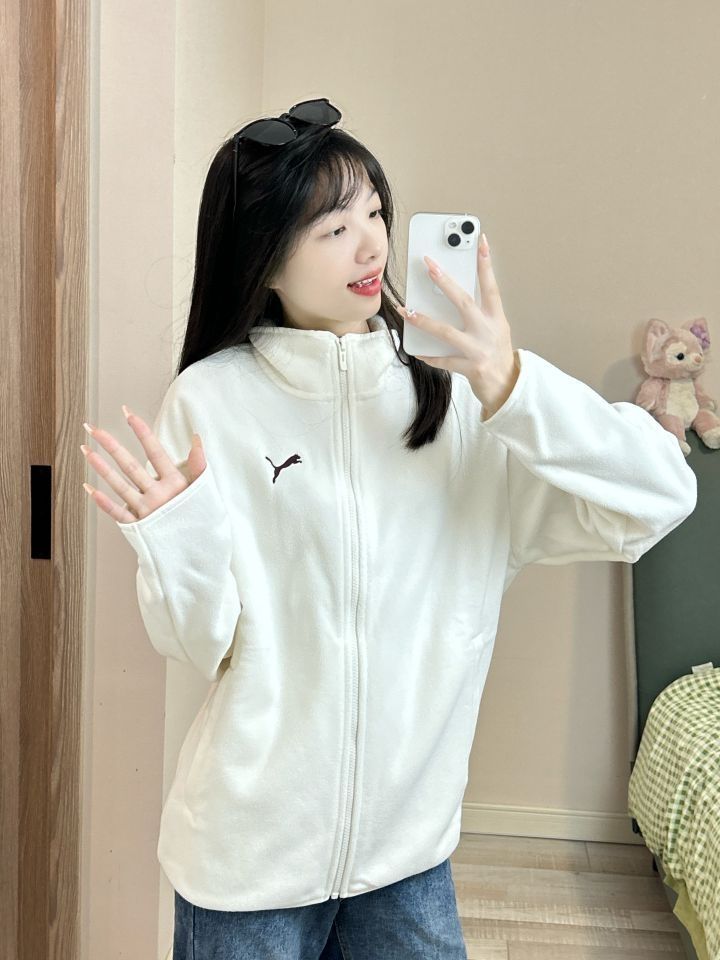 ✨puma 立领摇粒绒外套 ✨不然我就直接穿睡衣上班了啊啊 太冷了啊啊啊 ✨简单经典的款式 保暖耐看高颜值!真的很爱这种毛绒绒 软乎乎的质感 穿起来不会显得臃肿 降温直接就焊在身上 毛衣羽绒服通通靠边站吧!内搭居家穿也很靠谱! (图源网络侵删)