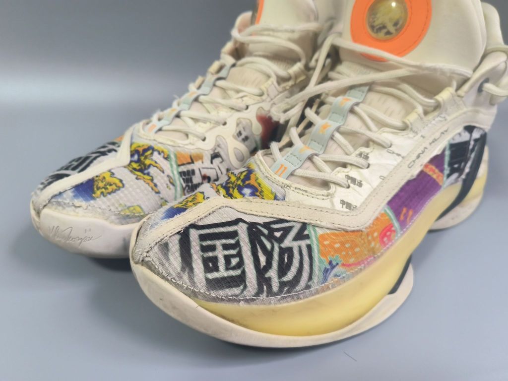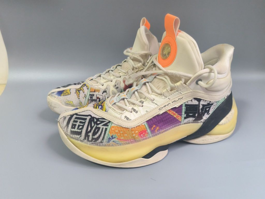 以下是安踏KT7中国汤配色的介绍: 外观设计 - 基础配色:表层鞋面以米白色为基础,鞋舌部位点缀橘色,增添视觉层次感。 - 特色元素:鞋面有大量“中国汤”汉字设计,点明主题。采用独特的撕撕乐设计,表层杜邦纸上有“中国汤”汉字及剪刀图案,撕开后可见色彩丰富的图案,如“中国汤”“水花”等汉字图案。 科技配置 - 鞋面材质:采用TPU纱飞织鞋面,保证透气性能的同时,带来优秀的包裹体验...