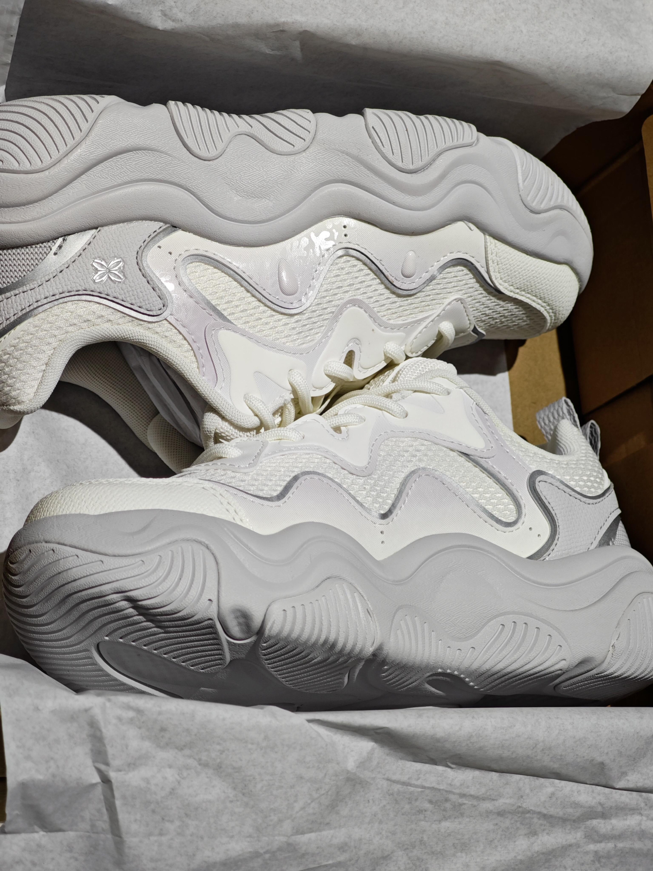 挖到宝啦家人们,安踏这双运动鞋真的太香了! 奶白色鞋面超百搭,不管是运动装还是休闲服,都能轻松hold住。鞋型很显脚小,波浪形鞋底不仅颜值高,还超软弹,走路舒适感拉满。 细节也很到位,网面材质透气不闷脚,后跟处的设计能很好地包裹脚跟。