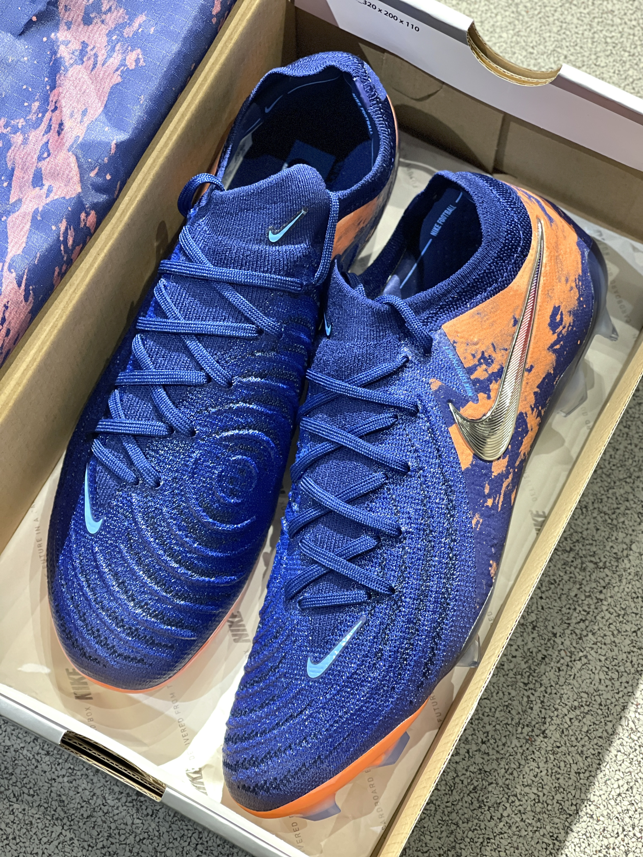 哈兰德专属球鞋就位啦!😍 Nike|Phantom GX 2 Elite FG足球鞋“蓝橙色”🟠,嘎嘎能打的GX2鞋型,整体鞋型流畅,上脚轻便,包裹性十足!透气舒适鞋面➕FG专业大底,新年第一双战靴安排起来~😍Force9-哈兰德🔥