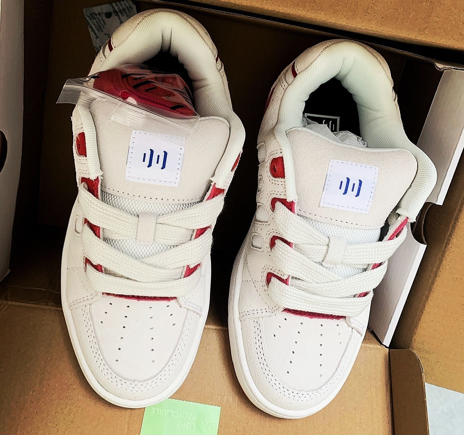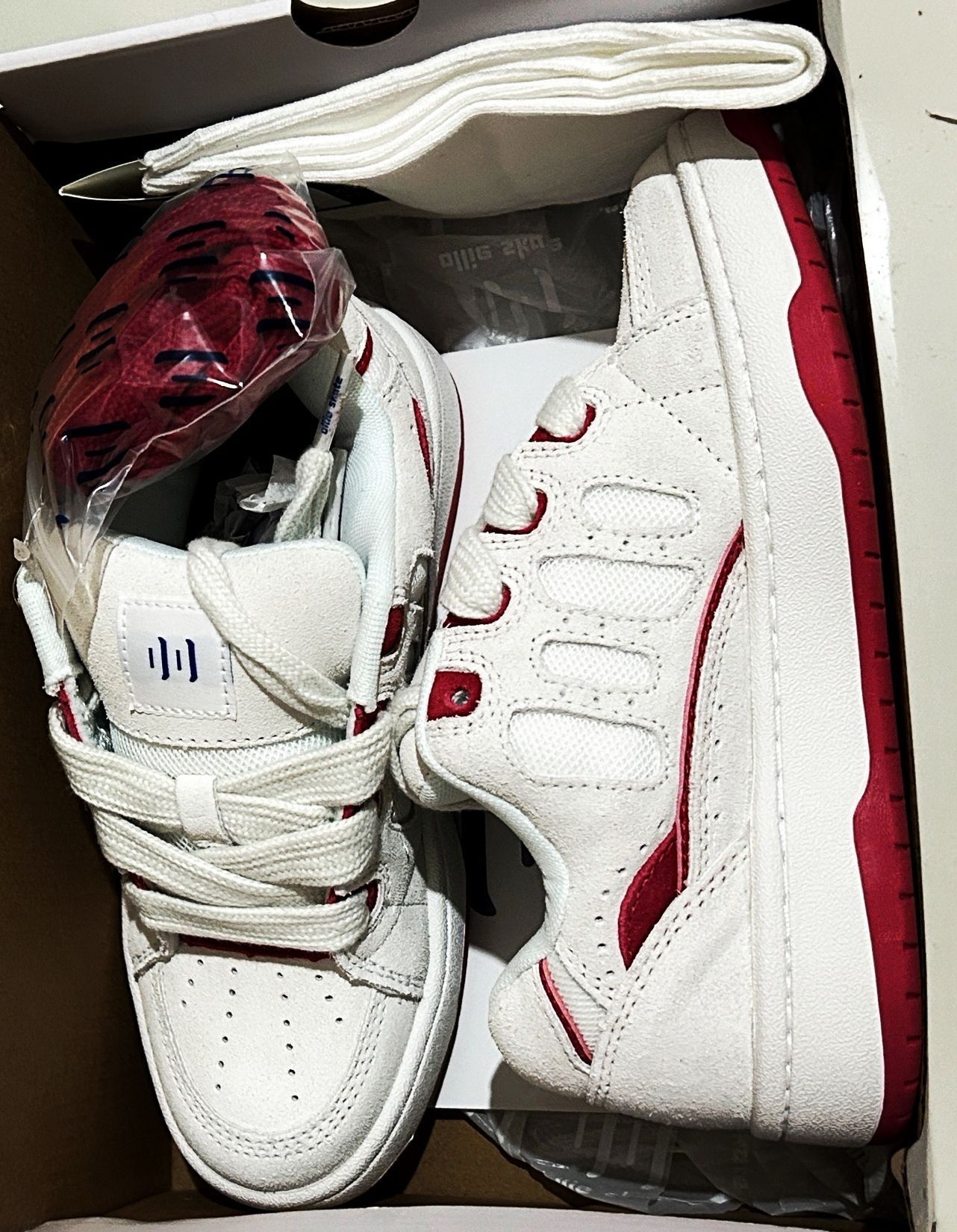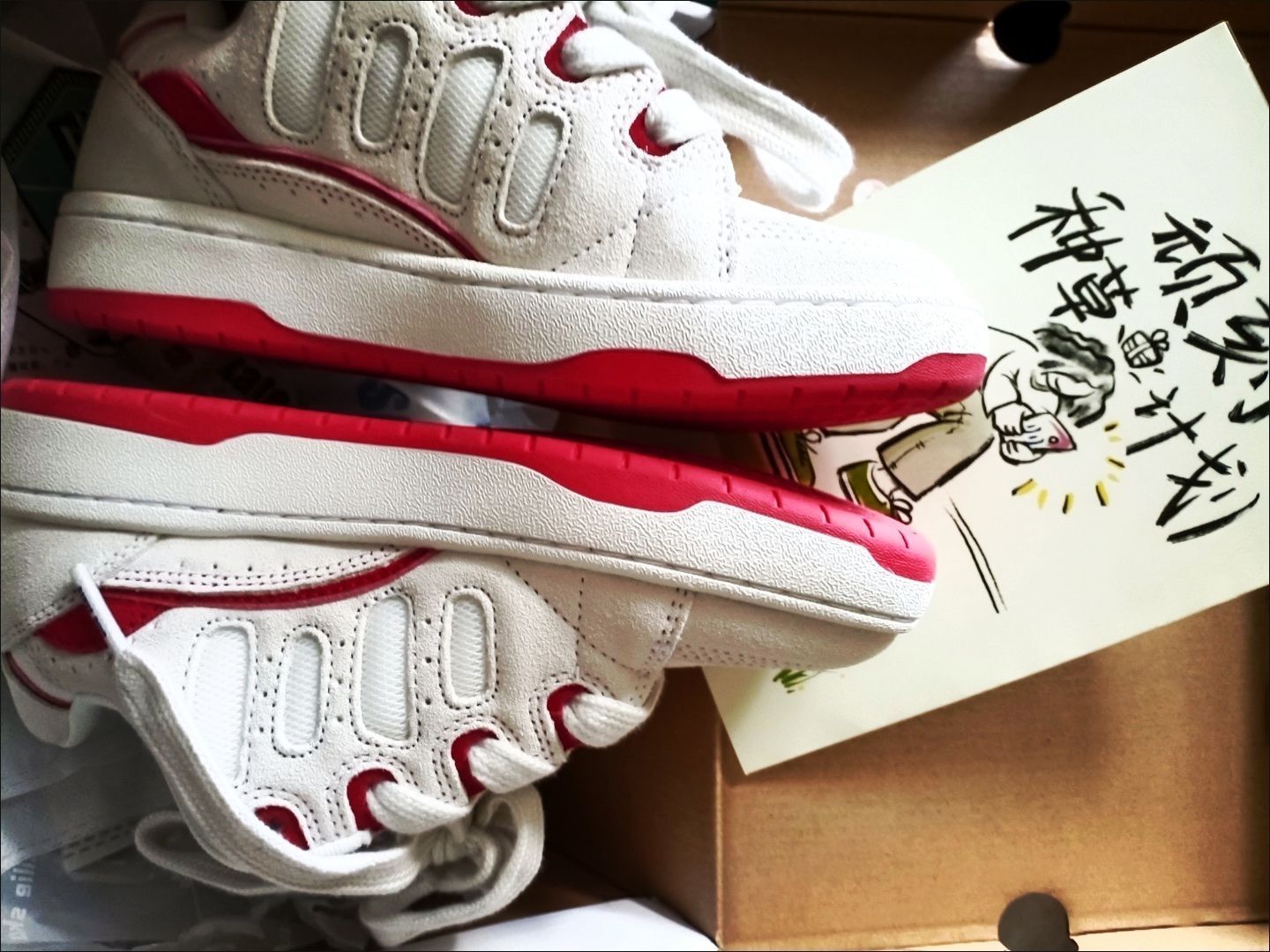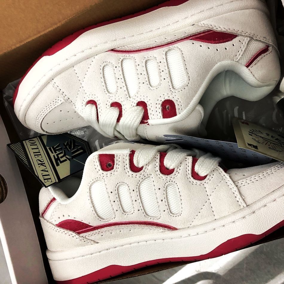 本篇笔记关联了Ollieskate/顽刻 BAKE 防滑耐磨 轻松舒适 复古百搭 时尚拼接 翻毛皮 运动休闲鞋 白色/红色等商品,为用户提供真实的使用体验和购买参考。