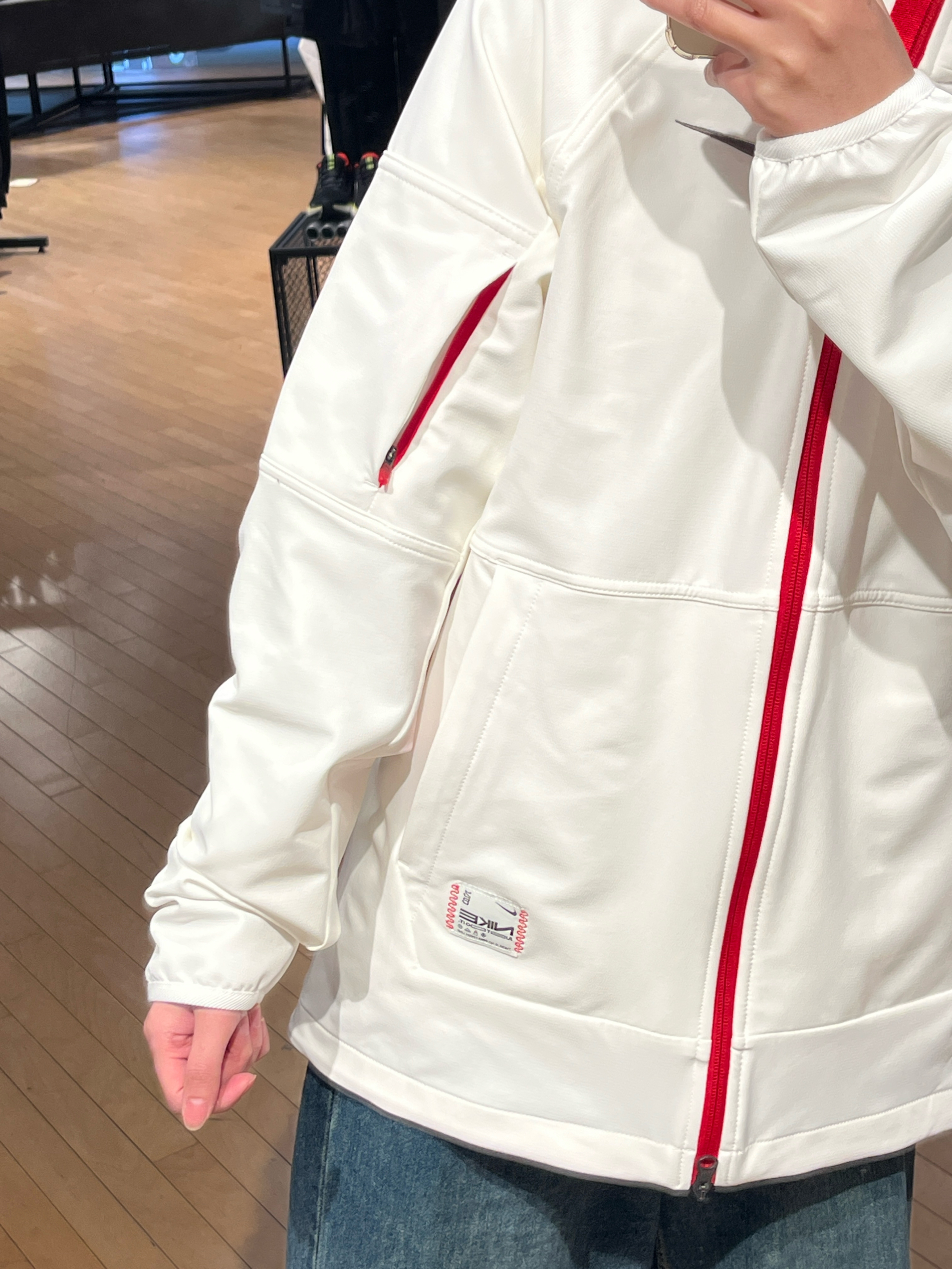 nike新春款 〈软壳夹克也来啦!! 又将是是新的一年 又是一件软壳夹克!内里有一层薄绒,其他细节设计如图所示~好喜欢这个精致的刺绣勾子红白搭配很有节日氛围感(