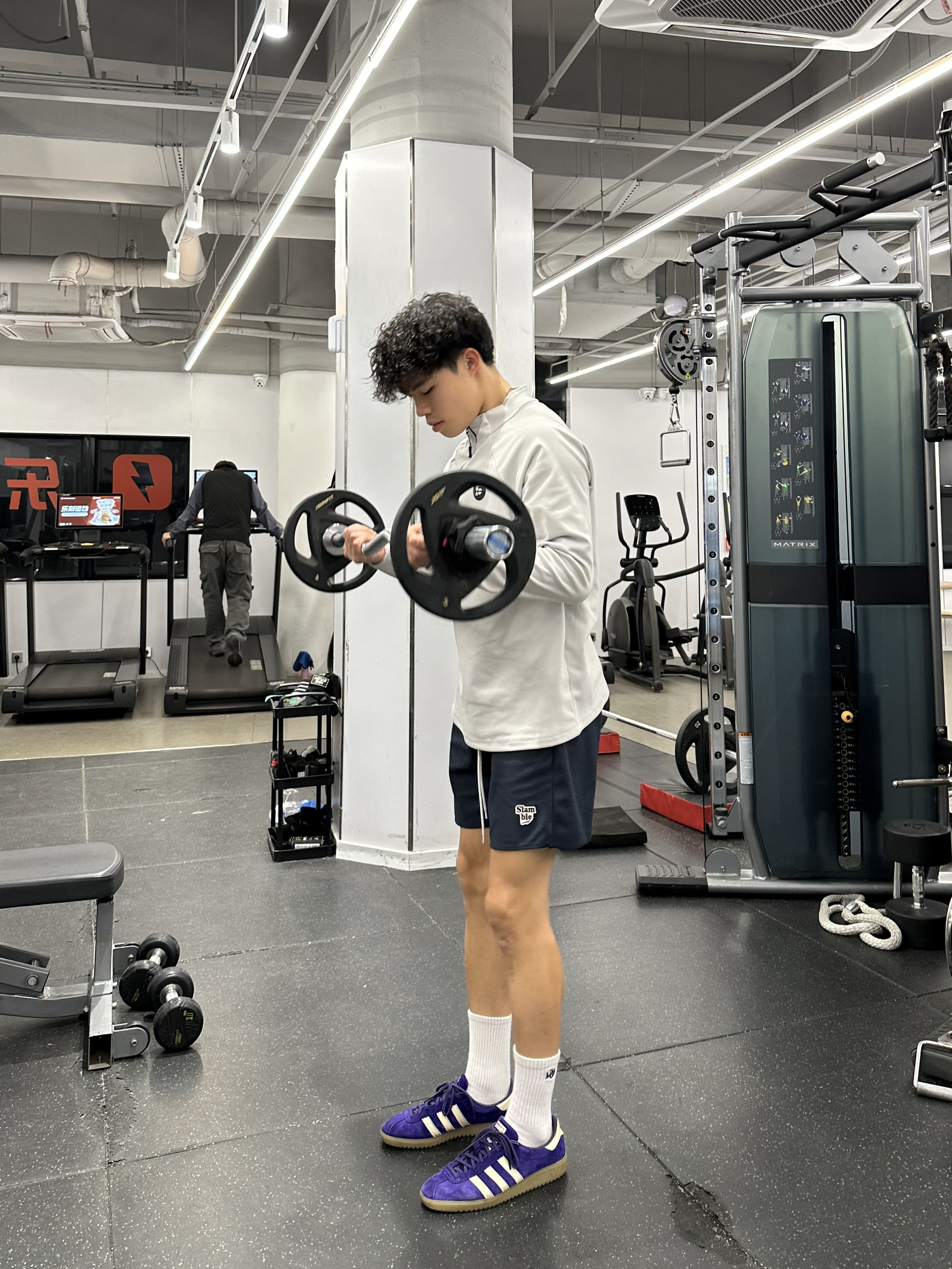 身高|体重:180 70kg 🧍♂️ 穿搭风格:美式运动 👔 上衣:Slamble 👖 下装:slamble 👟 鞋子:adidas