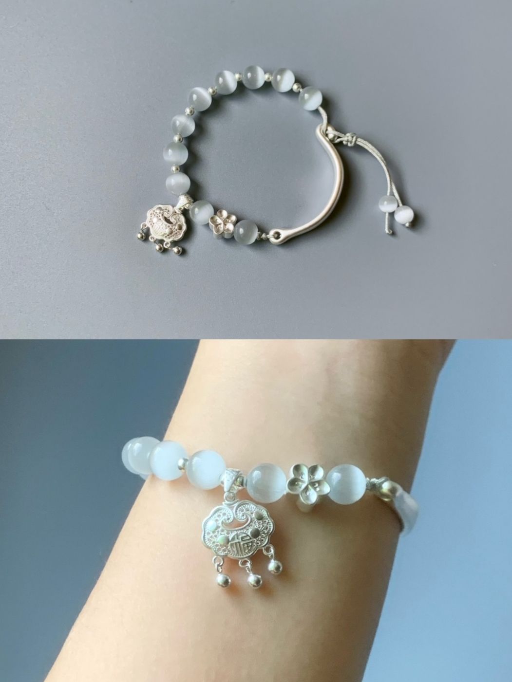 本篇笔记关联了老凤祥 桃之夭夭S925银手串 LMA0932230718 银色、老凤祥 清雅莲韵铃铛半镯半链足银手链 LMA1842240620-R 银色等商品,为用户提供真实的使用体验和购买参考。