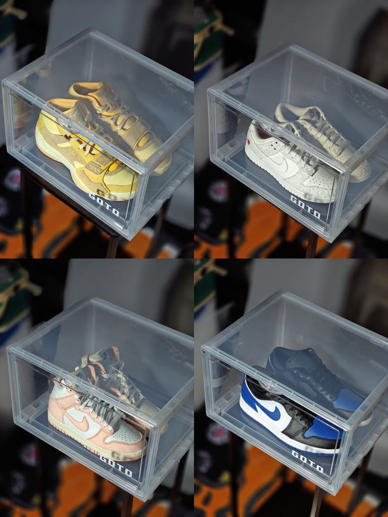 我想没有哪个男孩子能拒绝拥有一堵自己的鞋墙吧 我选的是半透明款,看起来更加透亮,也更方便展示球鞋,goto的质量还是不错的,用料很扎实,堆的高了也不会有变形的情况,亚克力板也不容易氧化泛黄,磁吸的设计还是非常方便的,并且上下都预留了卡扣,叠高了也很稳固 每天早上醒来看到这个鞋墙,心情都变愉悦了😁不知道兄弟们是不是也有这种想法