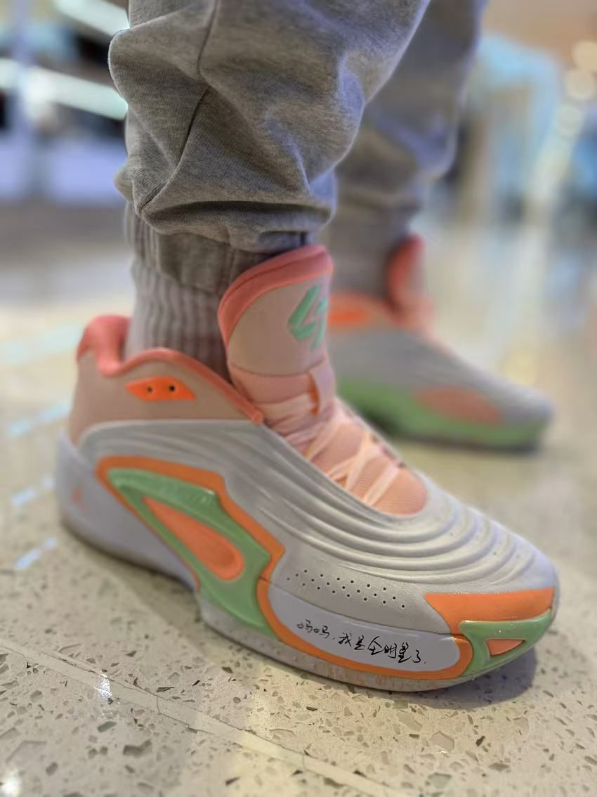 整体采用荧光橙、荧光绿与白色搭配,是亮眼的糖果色装扮,呼应经典EYBL系列,契合全明星缤纷主题。鞋面织物带有流畅波浪条纹,层次感十足。鞋后跟有专属Logo,彰显独特身份。最大亮点是中底前侧手写体中文 “妈妈,我是全明星了” ,饱含亲情,鼓励年轻球员为自己骄傲。左脚鞋舌印有CHBL全明星赛专属Logo。Luka 3延续前代设计风格。此款为中国区限定。